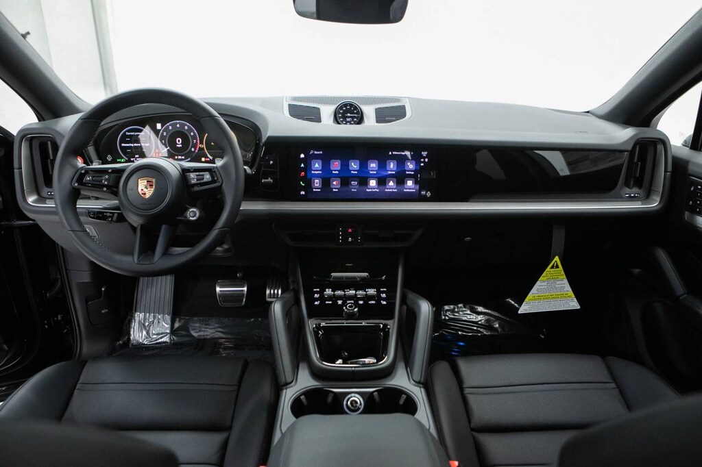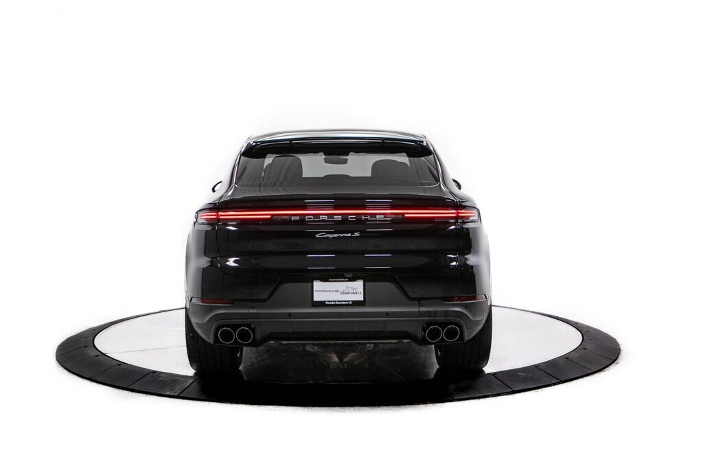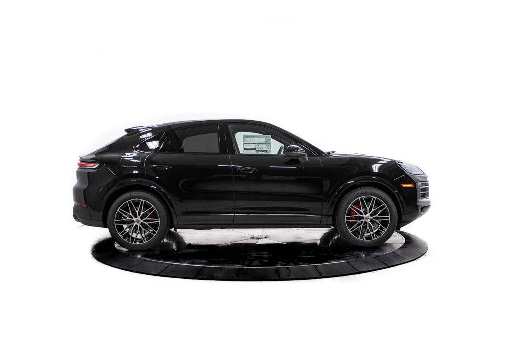 Black 2026 Porsche Cayenne Coupe S AWD 8-Speed Automatic with Tiptronic V8 10 Speakers, 14-Way Power Seats with Comfort Memory, 4-Wheel Disc Brakes, 4-Zone Climate Control, 8-Way Sport Seats, ABS brakes, Adaptive Cruise Control with Lane Keep Assist (LKA), Adaptive suspension, Air Conditioning, Air Quality System, Alloy wheels, AM/FM radio: SiriusXM w/360L, Apple CarPlay & Android Auto, Audio memory, Auto-dimming door mirrors, Auto-dimming Rear-View mirror, Automatic temperature control, BOSE Surround Sound System, Brake assist, Bumpers: body-color, Compass, Delay-off headlights, Driver door bin, Driver vanity mirror, Dual front impact airbags, Dual front side impact airbags, Electronic Stability Control, Exterior Parking Camera Rear, Four wheel independent suspension, Front anti-roll bar, Front Bucket Seats, Front Center Armrest, Front dual zone A/C, Front reading lights, Front Ventilated Seats, Fully automatic headlights, Garage door transmitter: HomeLink, HD-Matrix Design LED Headlights, Heated door mirrors, Heated front seats, Heated GT Sport Steering Wheel in Leather, Heated steering wheel, HVAC memory, Illuminated entry, Knee airbag, Leather Seat Trim, Leather steering wheel, Low tire pressure warning, Memory seat, Navigation System, Occupant sensing airbag, Outside temperature display, Overhead airbag, Overhead console, Panic alarm, Passenger door bin, Passenger vanity mirror, Porsche Communication Management, Porsche Crest on Front Headrests, Power door mirrors, Power driver seat, Power Liftgate, Power passenger seat, Power steering, Power windows, Premium Package Plus, Preparation For Porsche Front and Rear Dashcam, Radio data system, Rain sensing wipers, Rear anti-roll bar, Rear Comfort Seats (2+1), Rear fog lights, Rear Heated Seats, Rear reading lights, Rear seat center armrest, Rear side impact airbag, Rear window defroster, Remote keyless entry, Security system, Speed control, Speed-sensing steering, Split folding rear seat, Spoiler, Sport Tailpipes in Dark Bronze, Steering wheel mounted audio controls, Tachometer, Telescoping steering wheel, Tilt steering wheel, Traction control, Trip computer, Turn signal indicator mirrors, Under Door Puddle Light Projectors, Variably intermittent wipers, Voltmeter, Wheels: 20 Cayenne S in Vesuvius Grey, Wheels: 21 RS Spyder Design.