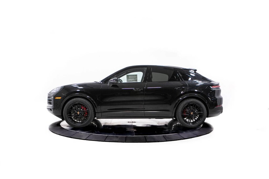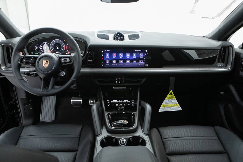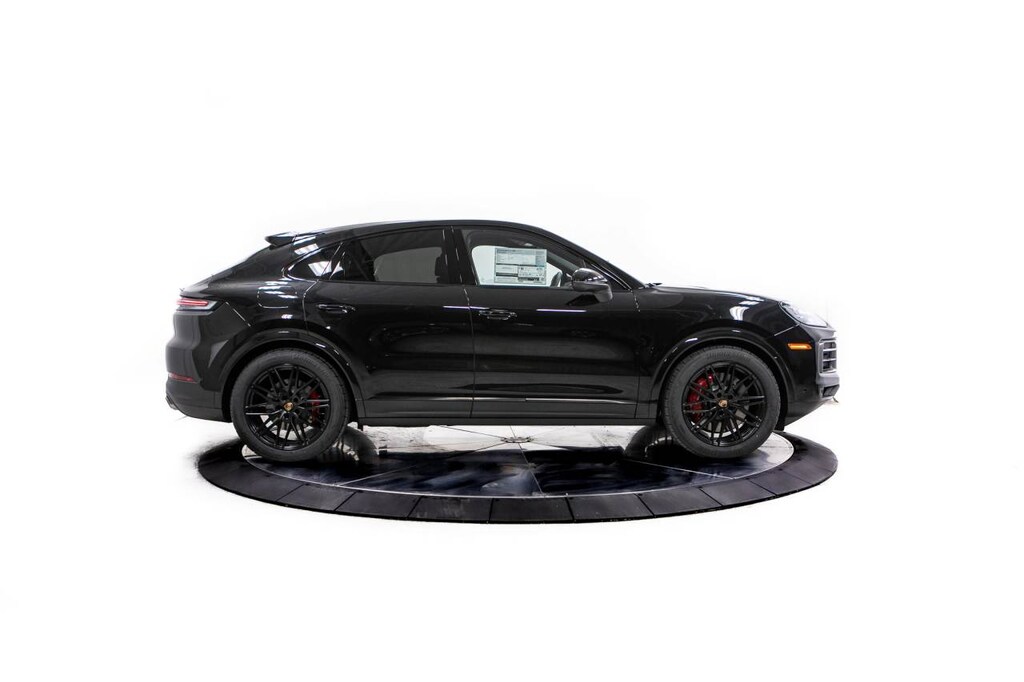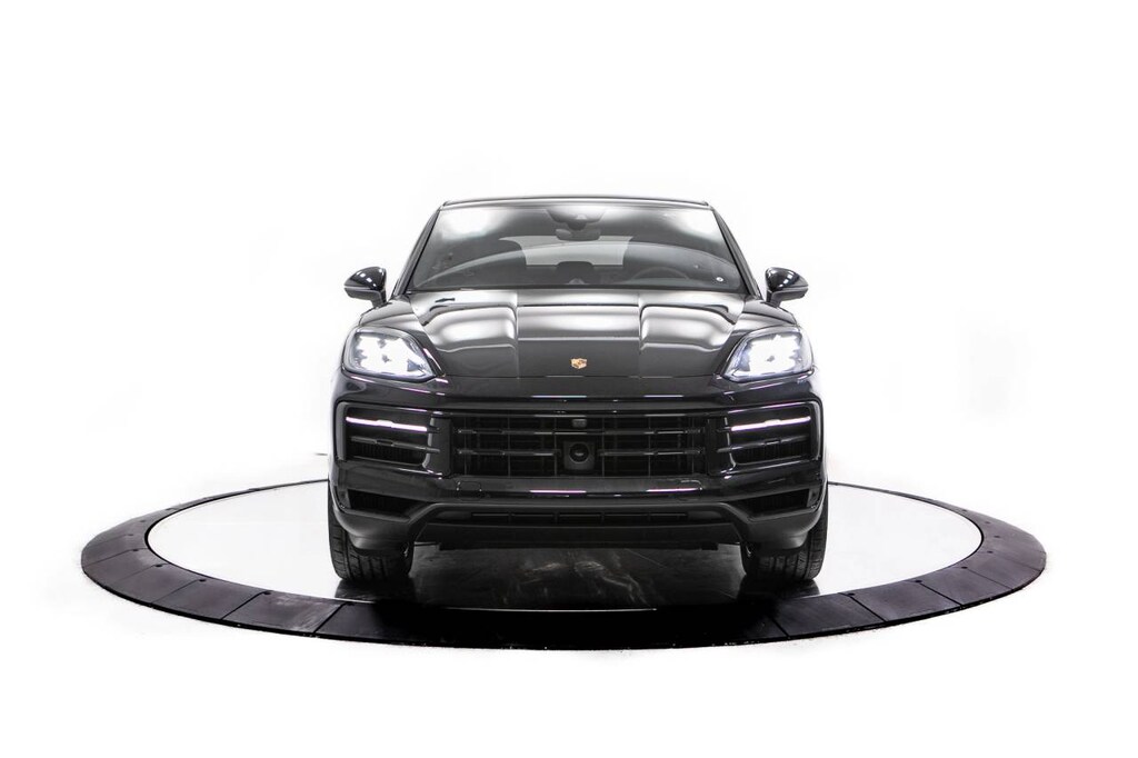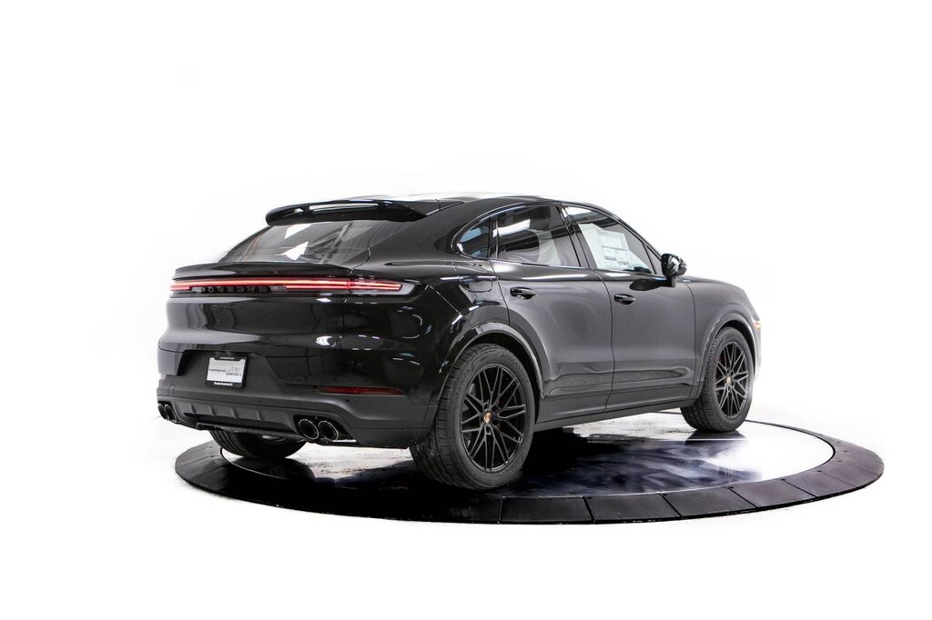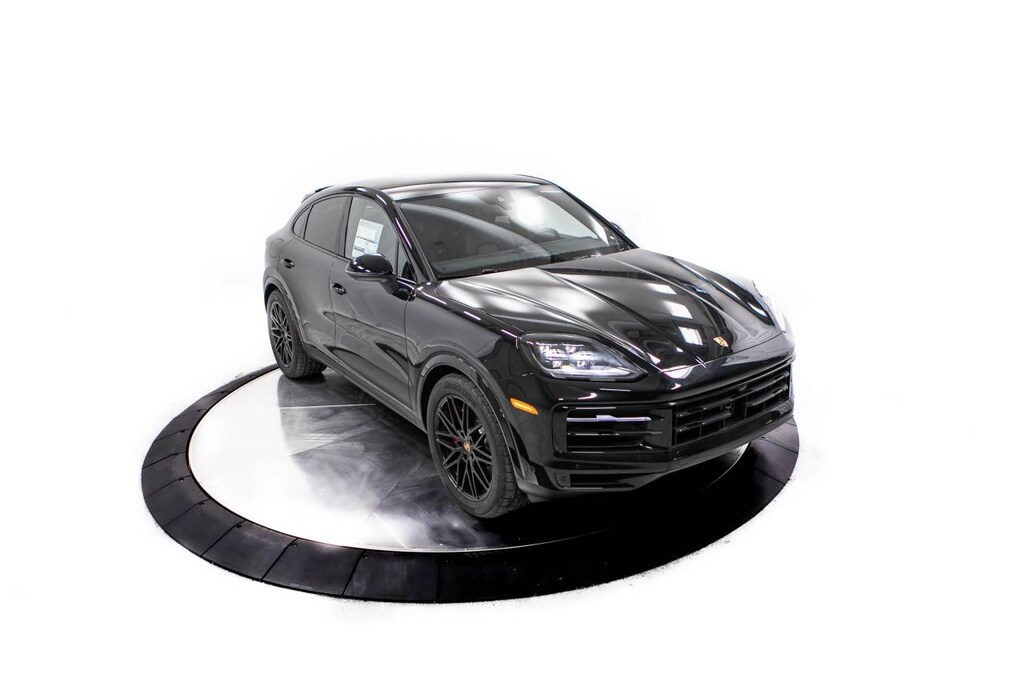 Black 2026 Porsche Cayenne Coupe S AWD 8-Speed Automatic with Tiptronic V8 10 Speakers, 14-Way Power Seats with Comfort Memory, 4-Wheel Disc Brakes, 4-Zone Climate Control, 8-Way Sport Seats, ABS brakes, Adaptive Air Suspension with Porsche Active Suspension Management (PASM), Adaptive Cruise Control with Lane Keep Assist (LKA), Adaptive suspension, Air Conditioning, Air Quality System, Alloy wheels, AM/FM radio: SiriusXM w/360L, Apple CarPlay & Android Auto, Audio memory, Auto-dimming door mirrors, Auto-dimming Rear-View mirror, Automatic temperature control, BOSE Surround Sound System, Brake assist, Bumpers: body-color, Compass, Delay-off headlights, Driver door bin, Driver vanity mirror, Dual front impact airbags, Dual front side impact airbags, Electronic Stability Control, Exclusive Design Taillights, Exterior Parking Camera Rear, Four wheel independent suspension, Front anti-roll bar, Front Bucket Seats, Front Center Armrest, Front dual zone A/C, Front reading lights, Front Ventilated Seats, Fully automatic headlights, Garage door transmitter: HomeLink, HD-Matrix Design LED Headlights, Heated door mirrors, Heated front seats, Heated GT Sport Steering Wheel in Leather, Heated steering wheel, HVAC memory, Illuminated entry, Knee airbag, Leather Seat Trim, Leather steering wheel, Low tire pressure warning, Memory seat, Navigation System, Occupant sensing airbag, Outside temperature display, Overhead airbag, Overhead console, Panic alarm, Passenger door bin, Passenger vanity mirror, Porsche Communication Management, Porsche Crest on Front and Rear Headrests, Porsche Logo and Model Designation on Rear in Black, Power door mirrors, Power driver seat, Power Liftgate, Power passenger seat, Power steering, Power windows, Premium Package Plus, Radio data system, Rain sensing wipers, Rear anti-roll bar, Rear Comfort Seats (2+1), Rear fog lights, Rear Heated Seats, Rear reading lights, Rear seat center armrest, Rear side impact airbag, Rear window defroster, Remote keyless entry, Security system, Speed control, Speed-sensing steering, Split folding rear seat, Spoiler, Sport Tailpipes in Dark Bronze, Steering wheel mounted audio controls, Tachometer, Telescoping steering wheel, Tilt steering wheel, Traction control, Trip computer, Turn signal indicator mirrors, Under Door Puddle Light Projectors, Variably intermittent wipers, Voltmeter, Wheels: 20 Cayenne S in Vesuvius Grey, Wheels: 21 RS Spyder Design in Satin Black.