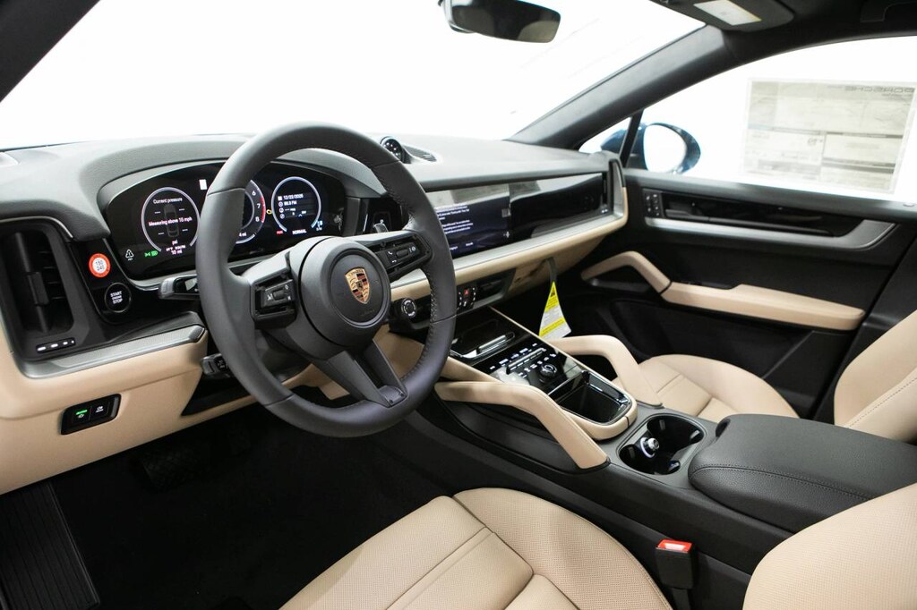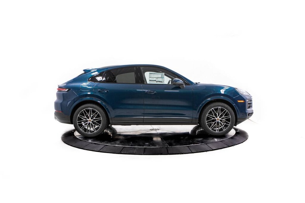 Montego B Met 2026 Porsche Cayenne Coupe AWD 8-Speed Automatic with Tiptronic 3.0L V6 10 Speakers, 14-Way Power Seats with Comfort Memory, 4-Wheel Disc Brakes, 4-Zone Climate Control, 8-Way Sport Seats, ABS brakes, Adaptive Cruise Control with Lane Keep Assist (LKA), Adaptive suspension, Air Conditioning, Alloy wheels, AM/FM radio: SiriusXM w/360L, Apple CarPlay & Android Auto, Audio memory, Auto-dimming door mirrors, Auto-dimming Rear-View mirror, Automatic temperature control, BOSE Surround Sound System, Brake assist, Bumpers: body-color, Compass, Delay-off headlights, Driver door bin, Driver vanity mirror, Dual front impact airbags, Dual front side impact airbags, Electronic Stability Control, Exterior Parking Camera Rear, Four wheel independent suspension, Front anti-roll bar, Front Bucket Seats, Front Center Armrest, Front dual zone A/C, Front reading lights, Front Ventilated Seats, Fully automatic headlights, Garage door transmitter: HomeLink, HD-Matrix Design LED Headlights, Heated door mirrors, Heated front seats, Heated GT Sport Steering Wheel in Leather, Heated steering wheel, HVAC memory, Illuminated entry, Knee airbag, Leather Seat Trim, Leather steering wheel, Low tire pressure warning, Memory seat, Navigation System, Occupant sensing airbag, Outside temperature display, Overhead airbag, Overhead console, Panic alarm, Passenger door bin, Passenger vanity mirror, Porsche Communication Management, Porsche Logo on Rear in High Gloss Black, Power door mirrors, Power driver seat, Power Liftgate, Power passenger seat, Power steering, Power windows, Premium Package Plus, Preparation For Porsche Front and Rear Dashcam, Radio data system, Rain sensing wipers, Rear anti-roll bar, Rear Comfort Seats (2+1), Rear fog lights, Rear Heated Seats, Rear reading lights, Rear seat center armrest, Rear side impact airbag, Rear window defroster, Remote keyless entry, Security system, Speed control, Speed-sensing steering, Split folding rear seat, Spoiler, Sport Tailpipes in Dark Bronze, Steering wheel mounted audio controls, Tachometer, Telescoping steering wheel, Tilt steering wheel, Traction control, Trip computer, Turn signal indicator mirrors, Under Door Puddle Light Projectors, Variably intermittent wipers, Voltmeter, Wheels: 20 Cayenne Design, Wheels: 21 RS Spyder Design.