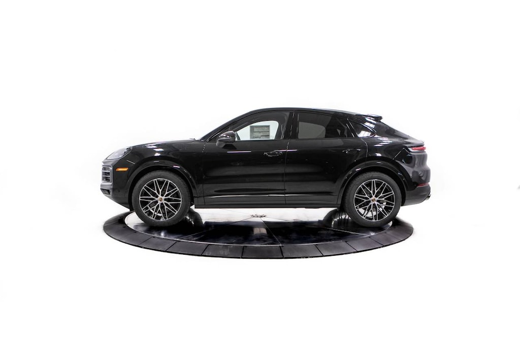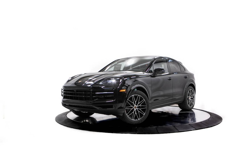 Black 2026 Porsche Cayenne Coupe AWD 8-Speed Automatic with Tiptronic 3.0L V6 10 Speakers, 14-Way Power Seats with Comfort Memory, 4-Wheel Disc Brakes, 8-Way Sport Seats, ABS brakes, Adaptive suspension, Air Conditioning, Alloy wheels, AM/FM radio: SiriusXM w/360L, Apple CarPlay & Android Auto, Audio memory, Auto-dimming door mirrors, Auto-dimming Rear-View mirror, Automatic temperature control, BOSE Surround Sound System, Brake assist, Bumpers: body-color, Compass, Delay-off headlights, Driver door bin, Driver vanity mirror, Dual front impact airbags, Dual front side impact airbags, Electronic Stability Control, Exterior Parking Camera Rear, Four wheel independent suspension, Front anti-roll bar, Front Bucket Seats, Front Center Armrest, Front dual zone A/C, Front reading lights, Front Ventilated Seats, Fully automatic headlights, Garage door transmitter: HomeLink, Heated door mirrors, Heated front seats, Heated steering wheel, HVAC memory, Illuminated entry, Knee airbag, Leather Seat Trim, Leather steering wheel, Low tire pressure warning, Memory seat, Navigation System, Occupant sensing airbag, Outside temperature display, Overhead airbag, Overhead console, Panic alarm, Passenger door bin, Passenger vanity mirror, Porsche Communication Management, Power door mirrors, Power driver seat, Power Liftgate, Power passenger seat, Power steering, Power windows, Radio data system, Rain sensing wipers, Rear anti-roll bar, Rear Comfort Seats (2+1), Rear fog lights, Rear reading lights, Rear seat center armrest, Rear side impact airbag, Rear window defroster, Remote keyless entry, Security system, Speed control, Speed-sensing steering, Split folding rear seat, Spoiler, Sport Tailpipes in Dark Bronze, Steering wheel mounted audio controls, Tachometer, Telescoping steering wheel, Tilt steering wheel, Traction control, Trip computer, Turn signal indicator mirrors, Variably intermittent wipers, Voltmeter, Wheels: 20 Cayenne Design, Wheels: 21 RS Spyder Design.