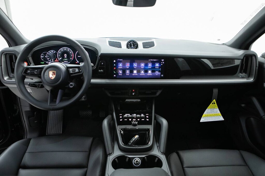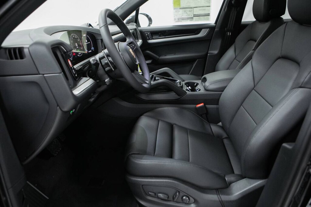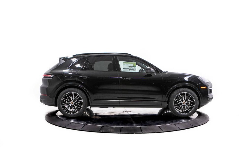 Black 2026 Porsche Cayenne E-Hybrid AWD 8-Speed Automatic with Tiptronic 3.0L V6 Plug-In Hybrid Turbocharged 3.0L V6 Plug-In Hybrid Turbocharged, 10 Speakers, 14-Way Power Seats with Comfort Memory, 4-Wheel Disc Brakes, 8-Way Power Seats, ABS brakes, Adaptive Cruise Control with Lane Keep Assist (LKA), Adaptive suspension, Air Conditioning, Alloy wheels, AM/FM radio: SiriusXM w/360L, Apple CarPlay & Android Auto, Audio memory, Auto-dimming door mirrors, Auto-dimming Rear-View mirror, Automatic temperature control, BOSE Surround Sound System, Brake assist, Bumpers: body-color, Compass, Delay-off headlights, Driver door bin, Driver vanity mirror, Dual front impact airbags, Dual front side impact airbags, Electronic Stability Control, Embossed Leather Seat Trim, Exterior Parking Camera Rear, Four wheel independent suspension, Front anti-roll bar, Front Bucket Seats, Front Center Armrest, Front dual zone A/C, Front reading lights, Front Ventilated Seats, Fully automatic headlights, Garage door transmitter: HomeLink, Heated door mirrors, Heated front seats, Heated steering wheel, HVAC memory, Illuminated entry, Knee airbag, Leather steering wheel, Low tire pressure warning, Memory seat, Navigation System, Occupant sensing airbag, Outside temperature display, Overhead airbag, Overhead console, Panic alarm, Panoramic Roof System, Passenger door bin, Passenger vanity mirror, Porsche Communication Management, Porsche Logo and Model Designation on Rear in Black, Power door mirrors, Power driver seat, Power Liftgate, Power passenger seat, Power steering, Power windows, Premium Package, Radio data system, Rain sensing wipers, Rear anti-roll bar, Rear fog lights, Rear Heated Seats, Rear reading lights, Rear seat center armrest, Rear side impact airbag, Rear window defroster, Rear window wiper, Remote keyless entry, Roof Rails in Black Aluminum Finish, Security system, Speed control, Speed-sensing steering, Split folding rear seat, Spoiler, Sport Tailpipes in Dark Bronze, Steering wheel mounted audio controls, Tachometer, Telescoping steering wheel, Tilt steering wheel, Traction control, Trip computer, Turn signal indicator mirrors, Variably intermittent wipers, Voltmeter, Wheels: 20 Aerodesign, Wheels: 21 RS Spyder Design, Window Trim in High Gloss Black, 3.0L V6 Plug-In Hybrid Turbocharged.
