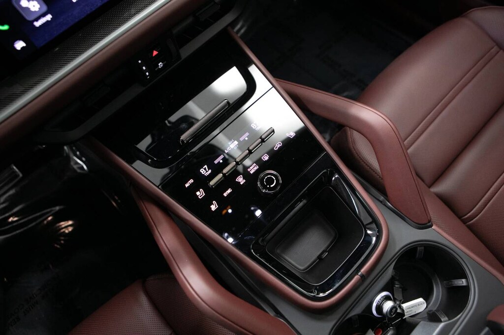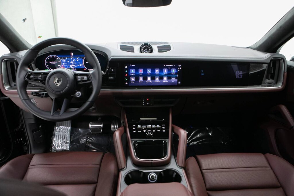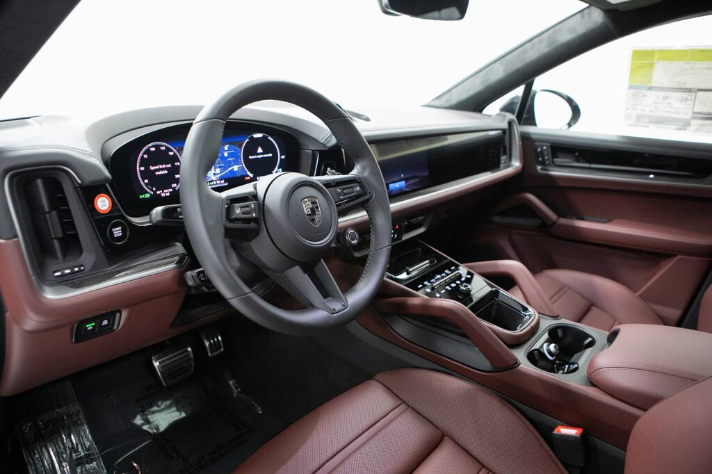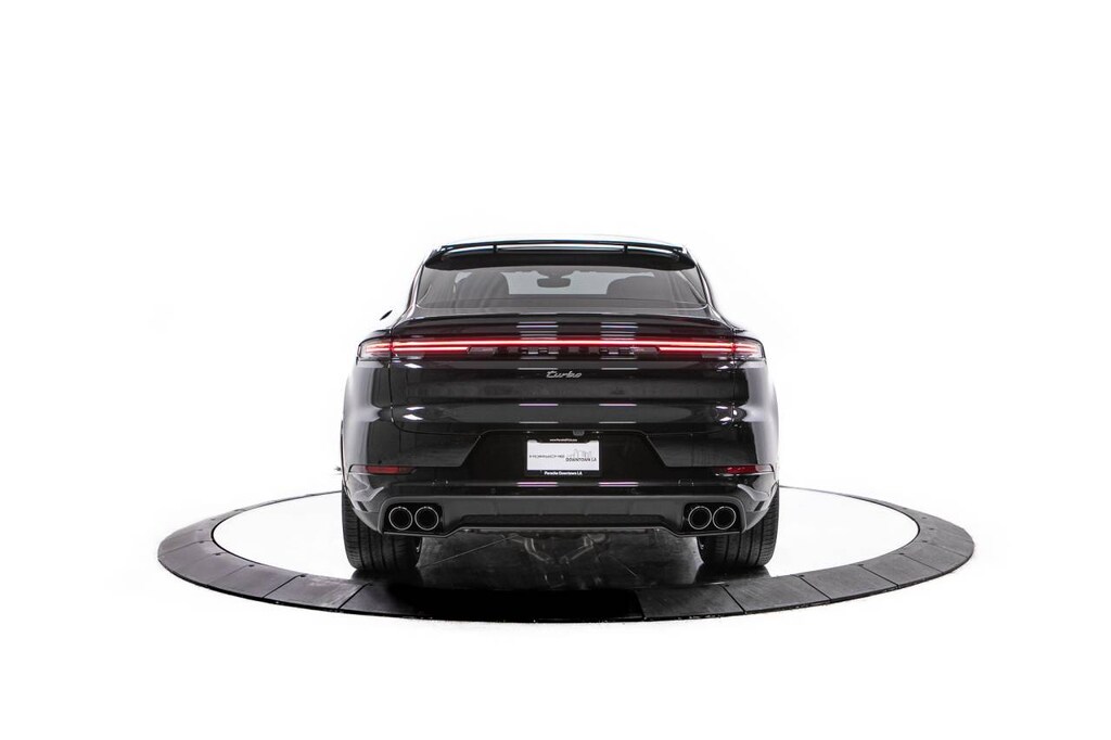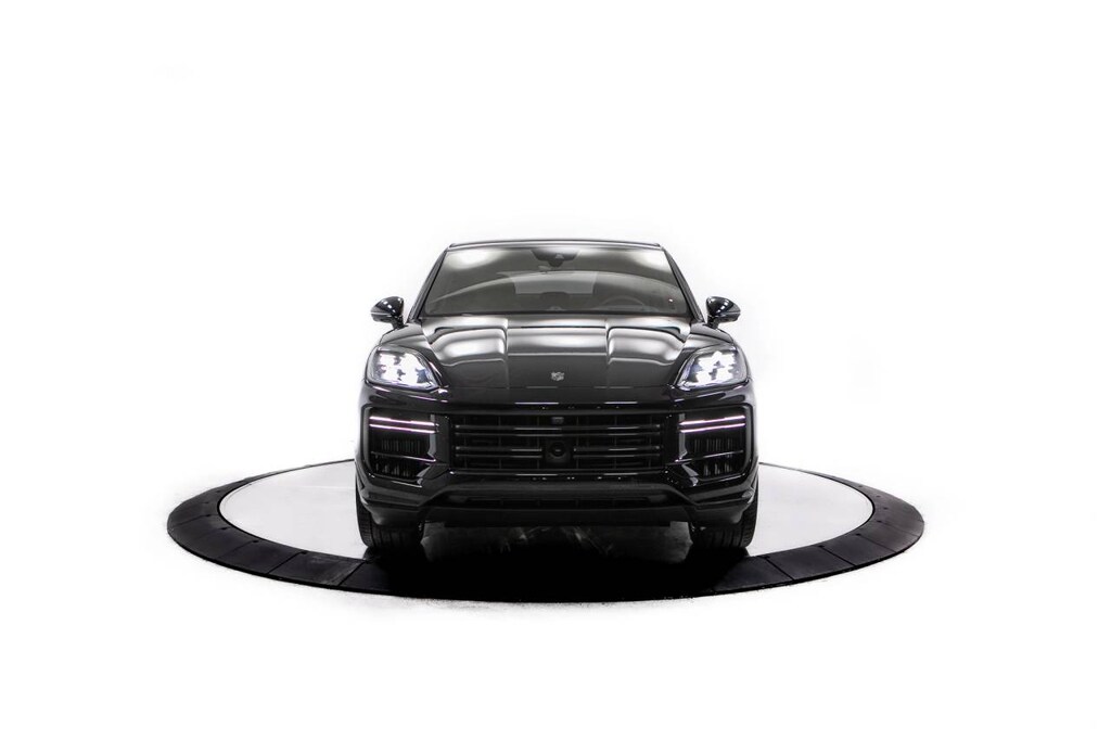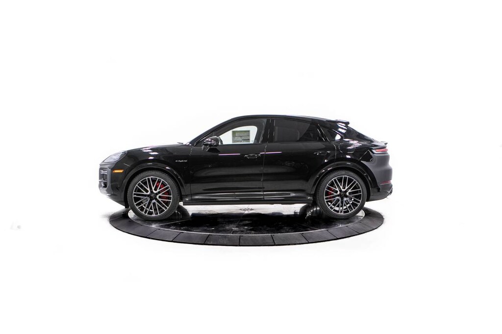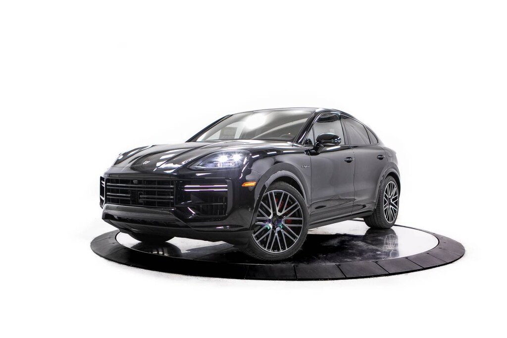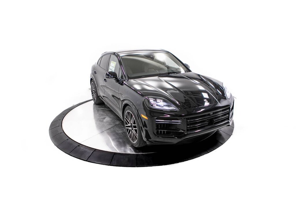 Black 2026 Porsche Cayenne E-Hybrid Coupe Turbo AWD 8-Speed Automatic with Tiptronic 4.0L V8 Plug-In Hybrid Turbocharged 4.0L V8 Plug-In Hybrid Turbocharged, 14 Speakers, 14-Way Power Seats with Comfort Memory, 18-Way Adaptive Sport Seats Plus with Comfort Memory, 4-Wheel Disc Brakes, 4-Zone Climate Control, ABS brakes, Adaptive Cruise Control with Lane Keep Assist (LKA), Adaptive suspension, Air Conditioning, Air Quality System, Alloy wheels, AM/FM radio: SiriusXM w/360L, Apple CarPlay & Android Auto, Audio memory, Auto High-beam Headlights, Auto tilt-away steering wheel, Auto-dimming door mirrors, Auto-dimming Rear-View mirror, Auto-leveling suspension, Automatic temperature control, Brake assist, Bumpers: body-color, Compass, Delay-off headlights, Driver door bin, Driver vanity mirror, Dual front impact airbags, Dual front side impact airbags, Electronic Stability Control, Exclusive Design Fuel Cap, Exclusive Design Taillights, Exterior Parking Camera Rear, Four wheel independent suspension, Front and Rear Thermally and Noise Insulated Glass, Front anti-roll bar, Front Bucket Seats, Front Center Armrest, Front dual zone A/C, Front Massage Seat Function with Front Ventilated Seats, Front reading lights, Front Ventilated Seats, Fully automatic headlights, Garage door transmitter: HomeLink, HD-Matrix Design LED Headlights in Black, Head-Up Display, Heated door mirrors, Heated front seats, Heated rear seats, Heated steering wheel, HVAC memory, Illuminated entry, Interior Accents in Black, Knee airbag, Leather Seat Trim with Turbonite Interior, Leather steering wheel, Low tire pressure warning, Memory seat, Navigation System, Occupant sensing airbag, Outside temperature display, Overhead airbag, Overhead console, Panic alarm, Passenger Display, Passenger door bin, Passenger vanity mirror, Porsche Communication Management, Porsche Crest on Front and Rear Headrests, Porsche Dynamic Chassis Control, Porsche InnoDrive with Adaptive Cruise Control (ACC) and Active Lane Keep (ALK), Power door mirrors, Power driver seat, Power Liftgate, Power passenger seat, Power steering, Power Sunblind For Rear Side Windows, Power windows, Premium Package Plus, Preparation For Porsche Front and Rear Dashcam, Radio data system, Rain sensing wipers, Rear anti-roll bar, Rear Axle Steering, Rear Comfort Seats (2+1), Rear fog lights, Rear reading lights, Rear seat center armrest, Rear side impact airbag, Rear window defroster, Remote keyless entry, Security system, Speed control, Speed-sensing steering, Split folding rear seat, Spoiler, Sport Exhaust System with Tailpipes in Dark Bronze, Sport steering wheel, Steering wheel memory, Steering wheel mounted audio controls, Tachometer, Telescoping steering wheel, Tilt steering wheel, Traction control, Trip computer, Turn signal indicator mirrors, Under Door Puddle Light Projectors, Variably intermittent wipers, Voltmeter, Wheels: 21 Cayenne Turbo in Turbonite, Wheels: 22 911 Turbo Design, Window Trim in High Gloss Black, 4.0L V8 Plug-In Hybrid Turbocharged.