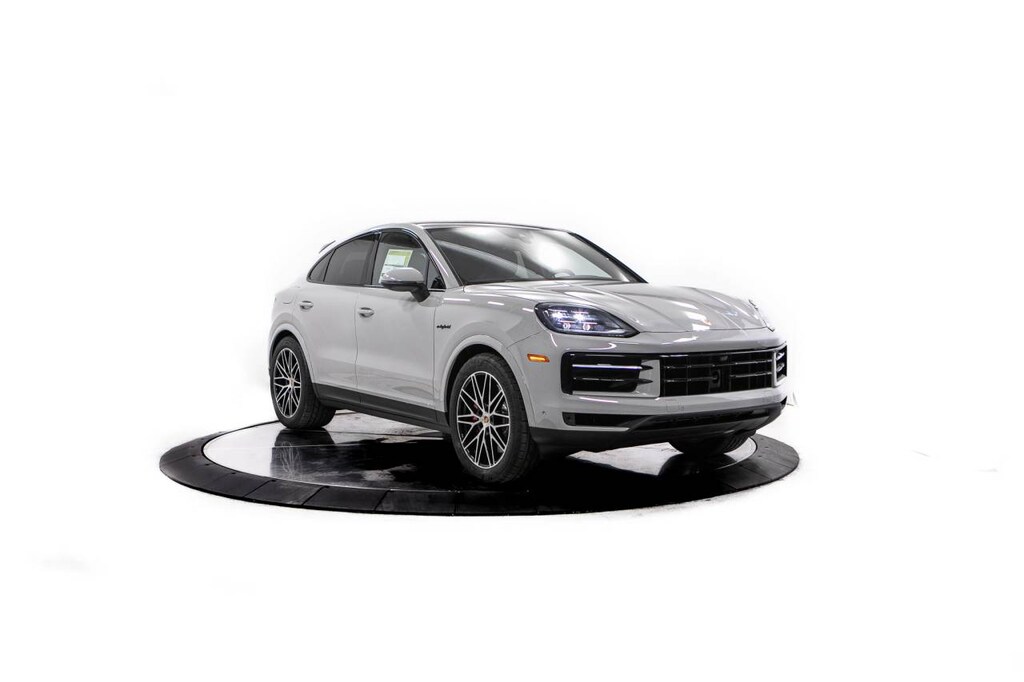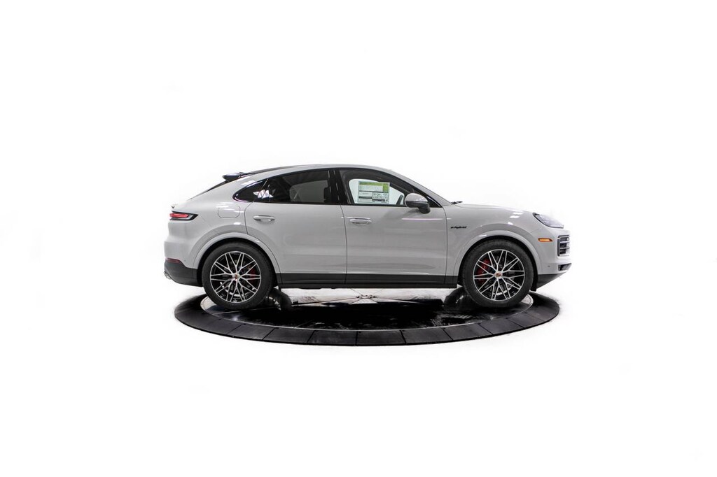Chalk 2026 Porsche Cayenne E-Hybrid Coupe S AWD 8-Speed Automatic with Tiptronic 3.0L V6 Plug-In Hybrid Turbocharged 3.0L V6 Plug-In Hybrid Turbocharged, 10 Speakers, 14-Way Power Seats with Comfort Memory, 4-Wheel Disc Brakes, 4-Zone Climate Control, 8-Way Sport Seats, ABS brakes, Adaptive Cruise Control with Lane Keep Assist (LKA), Adaptive suspension, Air Conditioning, Air Quality System, Alloy wheels, AM/FM radio: SiriusXM w/360L, Apple CarPlay & Android Auto, Audio memory, Auto-dimming door mirrors, Auto-dimming Rear-View mirror, Auto-leveling suspension, Automatic temperature control, BOSE Surround Sound System, Brake assist, Bumpers: body-color, Compass, Delay-off headlights, Driver door bin, Driver vanity mirror, Dual front impact airbags, Dual front side impact airbags, Electronic Stability Control, Exclusive Design Fuel Cap, Exterior Parking Camera Rear, Four wheel independent suspension, Front anti-roll bar, Front Bucket Seats, Front Center Armrest, Front dual zone A/C, Front reading lights, Front Ventilated Seats, Fully automatic headlights, Garage door transmitter: HomeLink, HD-Matrix Design LED Headlights, Heated door mirrors, Heated front seats, Heated GT Sport Steering Wheel in Leather, Heated steering wheel, HVAC memory, Illuminated entry, Knee airbag, Leather Seat Trim, Leather steering wheel, Low tire pressure warning, Memory seat, Navigation System, Occupant sensing airbag, Outside temperature display, Overhead airbag, Overhead console, Panic alarm, Passenger door bin, Passenger vanity mirror, Porsche Communication Management, Porsche Crest on Front Headrests, Porsche Logo and Model Designation on Rear in Black, Power door mirrors, Power driver seat, Power Liftgate, Power passenger seat, Power steering, Power windows, Premium Package Plus, Radio data system, Rain sensing wipers, Rear anti-roll bar, Rear Comfort Seats (2+1), Rear fog lights, Rear Heated Seats, Rear reading lights, Rear seat center armrest, Rear side impact airbag, Rear window defroster, Remote keyless entry, Roof Spoiler in High Gloss Black, Security system, Speed control, Speed-sensing steering, Split folding rear seat, Spoiler, Sport Tailpipes in Dark Bronze, Steering wheel mounted audio controls, Tachometer, Telescoping steering wheel, Tilt steering wheel, Traction control, Trip computer, Turn signal indicator mirrors, Under Door Puddle Light Projectors, Variably intermittent wipers, Voltmeter, Wheels: 20 Cayenne S in Vesuvius Grey, Wheels: 21 RS Spyder Design, 3.0L V6 Plug-In Hybrid Turbocharged.