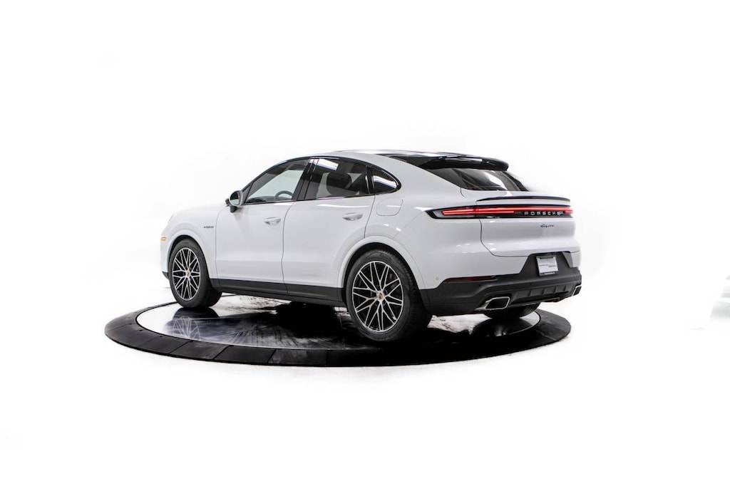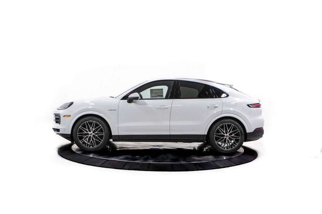 White 2026 Porsche Cayenne E-Hybrid Coupe AWD 8-Speed Automatic with Tiptronic 3.0L V6 Plug-In Hybrid Turbocharged 3.0L V6 Plug-In Hybrid Turbocharged, 10 Speakers, 14-Way Power Seats with Comfort Memory, 4-Wheel Disc Brakes, 4-Zone Climate Control, 8-Way Sport Seats, ABS brakes, Adaptive Air Suspension with Porsche Active Suspension Management (PASM), Adaptive Cruise Control with Lane Keep Assist (LKA), Adaptive suspension, Air Conditioning, Air Quality System, Alloy wheels, AM/FM radio: SiriusXM w/360L, Apple CarPlay & Android Auto, Audio memory, Auto-dimming door mirrors, Auto-dimming Rear-View mirror, Automatic temperature control, BOSE Surround Sound System, Brake assist, Bumpers: body-color, Compass, Delay-off headlights, Driver door bin, Driver vanity mirror, Dual front impact airbags, Dual front side impact airbags, Electronic Stability Control, Exclusive Design Fuel Cap, Exterior Parking Camera Rear, Four wheel independent suspension, Front anti-roll bar, Front Bucket Seats, Front Center Armrest, Front dual zone A/C, Front reading lights, Front Ventilated Seats, Fully automatic headlights, Garage door transmitter: HomeLink, HD-Matrix Design LED Headlights, Heated door mirrors, Heated front seats, Heated steering wheel, HVAC memory, Illuminated entry, Knee airbag, Leather Seat Trim, Leather steering wheel, Low tire pressure warning, Memory seat, Navigation System, Occupant sensing airbag, Outside temperature display, Overhead airbag, Overhead console, Panic alarm, Passenger door bin, Passenger vanity mirror, Porsche Communication Management, Power door mirrors, Power driver seat, Power Liftgate, Power passenger seat, Power steering, Power windows, Premium Package Plus, Radio data system, Rain sensing wipers, Rear anti-roll bar, Rear Comfort Seats (2+1), Rear fog lights, Rear Heated Seats, Rear reading lights, Rear seat center armrest, Rear side impact airbag, Rear window defroster, Remote keyless entry, Roof Spoiler in High Gloss Black, Security system, Speed control, Speed-sensing steering, Split folding rear seat, Spoiler, Steering wheel mounted audio controls, Tachometer, Telescoping steering wheel, Tilt steering wheel, Traction control, Trip computer, Turn signal indicator mirrors, Variably intermittent wipers, Voltmeter, Wheels: 20 Aerodesign, Wheels: 21 RS Spyder Design, 3.0L V6 Plug-In Hybrid Turbocharged.