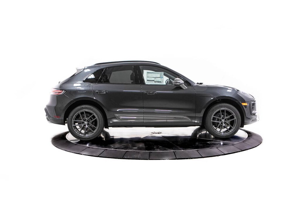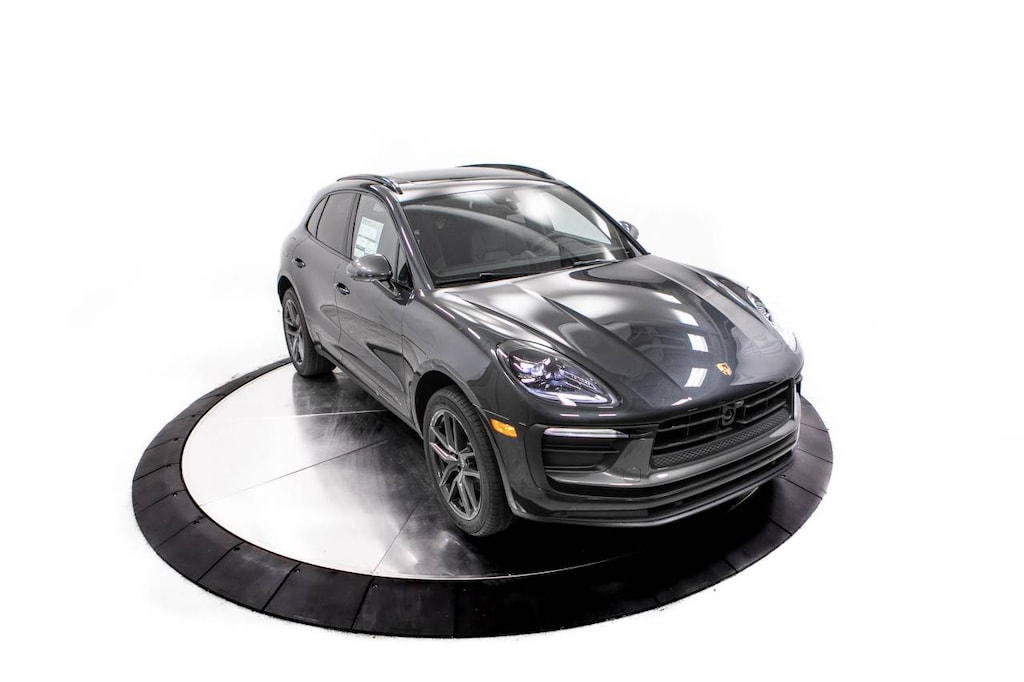 Gray Metallic 2026 Porsche Macan T AWD 7-Speed Porsche Doppelkupplung (PDK) 2.0L Turbocharged 14-Way Power Seats with Memory Package, 4-Wheel Disc Brakes, 8 Speakers, 8-Way Sport Seats, ABS brakes, Air Conditioning, Alloy wheels, AM/FM radio: SiriusXM, Apple CarPlay, Auto-dimming door mirrors, Auto-dimming Rear-View mirror, Automatic temperature control, BOSE Surround Sound System, Brake assist, Bumpers: body-color, Delay-off headlights, Driver door bin, Driver vanity mirror, Dual front impact airbags, Dual front side impact airbags, Electric Steering Column, Electronic Stability Control, Emergency communication system, Exclusive Design Fuel Cap, Exterior Parking Camera Rear, Four wheel independent suspension, Front anti-roll bar, Front Bucket Seats, Front Center Armrest, Front dual zone A/C, Front reading lights, Front Ventilated Seats, Fully automatic headlights, Garage door transmitter: HomeLink, Heated door mirrors, Heated front seats, Heated steering wheel, Illuminated entry, Lane Change Assist (LCA), Leather Shift Knob, Leather steering wheel, LED Headlights with Porsche Dynamic Light System Plus, Low tire pressure warning, Macan T Interior Package Seat Trim, Memory seat, Navigation System, Occupant sensing airbag, Outside temperature display, Overhead airbag, Overhead console, Panic alarm, Panoramic Roof System, Passenger door bin, Passenger vanity mirror, Porsche Communication Management, Power door mirrors, Power driver seat, Power Liftgate, Power passenger seat, Power steering, Power windows, Premium Package Plus, Radio data system, Rain sensing wipers, Rear air conditioning, Rear anti-roll bar, Rear Heated Seats, Rear reading lights, Rear seat center armrest, Rear side impact airbag, Rear window defroster, Rear window wiper, Remote keyless entry, Roof Rails in High Gloss Black, Security system, Sound Package Plus, Speed control, Speed-sensing steering, Split folding rear seat, Spoiler, Sport steering wheel, Steering wheel mounted audio controls, Surround View, Tachometer, Telescoping steering wheel, Tilt steering wheel, Traction control, Trip computer, Turn signal indicator mirrors, Under Door Puddle Light Projectors, Variably intermittent wipers, Wheels: 20 Macan S in Dark Titanium.