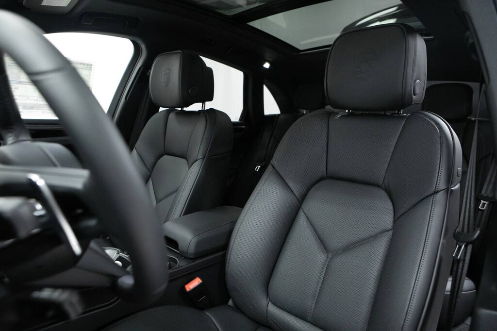 Black 2026 Porsche Macan T AWD 7-Speed Porsche Doppelkupplung (PDK) 2.0L Turbocharged 14-Way Power Seats with Memory Package, 4-Wheel Disc Brakes, 8 Speakers, 8-Way Sport Seats, ABS brakes, Air Conditioning, Alloy wheels, AM/FM radio: SiriusXM, Apple CarPlay, Auto-dimming door mirrors, Auto-dimming Rear-View mirror, Automatic temperature control, BOSE Surround Sound System, Brake assist, Bumpers: body-color, Delay-off headlights, Driver door bin, Driver vanity mirror, Dual front impact airbags, Dual front side impact airbags, Electric Steering Column, Electronic Stability Control, Emergency communication system, Exclusive Design Fuel Cap, Exterior Parking Camera Rear, Four wheel independent suspension, Front anti-roll bar, Front Bucket Seats, Front Center Armrest, Front dual zone A/C, Front reading lights, Front Ventilated Seats, Fully automatic headlights, Garage door transmitter: HomeLink, Heated door mirrors, Heated front seats, Heated steering wheel, Illuminated entry, Lane Change Assist (LCA), Leather Shift Knob, Leather steering wheel, LED Headlights with Porsche Dynamic Light System Plus, Low tire pressure warning, Macan T Interior Package Seat Trim, Memory seat, Navigation System, Occupant sensing airbag, Outside temperature display, Overhead airbag, Overhead console, Panic alarm, Panoramic Roof System, Passenger door bin, Passenger vanity mirror, Porsche Communication Management, Power door mirrors, Power driver seat, Power Liftgate, Power passenger seat, Power steering, Power windows, Premium Package Plus, Radio data system, Rain sensing wipers, Rear air conditioning, Rear anti-roll bar, Rear Heated Seats, Rear reading lights, Rear seat center armrest, Rear side impact airbag, Rear window defroster, Rear window wiper, Remote keyless entry, Roof Rails in High Gloss Black, Security system, Sound Package Plus, Speed control, Speed-sensing steering, Split folding rear seat, Spoiler, Sport steering wheel, Steering wheel mounted audio controls, Surround View, Tachometer, Telescoping steering wheel, Tilt steering wheel, Traction control, Trip computer, Turn signal indicator mirrors, Under Door Puddle Light Projectors, Variably intermittent wipers, Wheels: 20 Macan S in Dark Titanium.