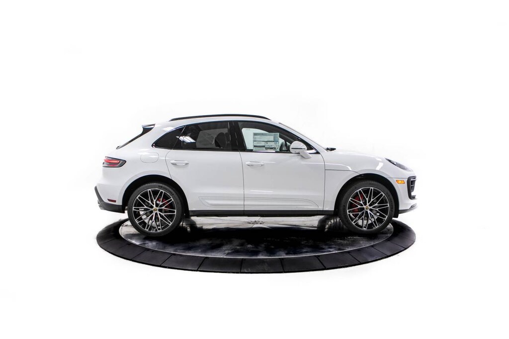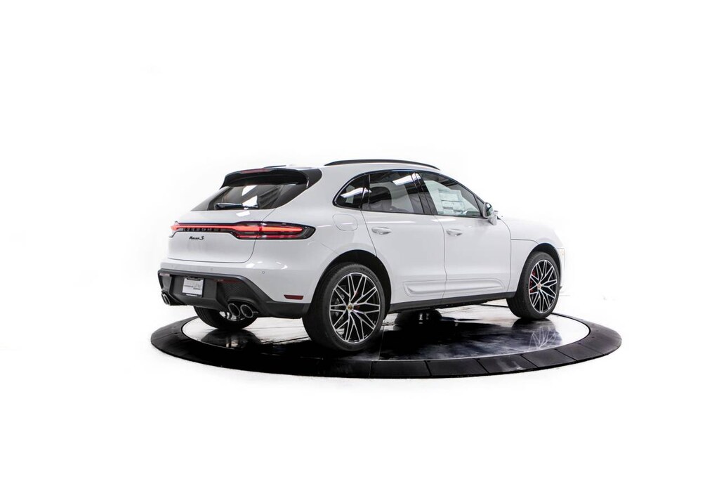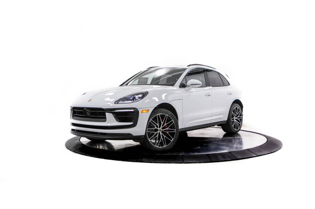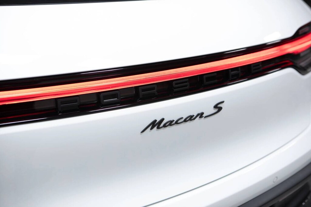 White 2026 Porsche Macan S AWD 7-Speed Porsche Doppelkupplung (PDK) V6 14-Way Power Seats with Memory Package, 4-Wheel Disc Brakes, 8 Speakers, 8-Way Front Comfort Seats, ABS brakes, Air Conditioning, Alloy wheels, AM/FM radio: SiriusXM, Apple CarPlay, Auto-dimming door mirrors, Auto-dimming Rear-View mirror, Automatic temperature control, BOSE Surround Sound System, Brake assist, Bumpers: body-color, Delay-off headlights, Driver door bin, Driver vanity mirror, Dual front impact airbags, Dual front side impact airbags, Electric Steering Column, Electronic Stability Control, Emergency communication system, Exterior Parking Camera Rear, Four wheel independent suspension, Front anti-roll bar, Front Bucket Seats, Front Center Armrest, Front dual zone A/C, Front reading lights, Front Ventilated Seats, Fully automatic headlights, Garage door transmitter: HomeLink, Heated door mirrors, Heated front seats, Illuminated entry, Lane Change Assist (LCA), Leather Shift Knob, Leather steering wheel, LED Headlights with Porsche Dynamic Light System Plus, Low tire pressure warning, Memory seat, Navigation System, Occupant sensing airbag, Outside temperature display, Overhead airbag, Overhead console, Panic alarm, Panoramic Roof System, Passenger door bin, Passenger vanity mirror, Porsche Communication Management, Porsche Crest on Front Headrests, Porsche Logo and Model Designation in Satin Black, Power door mirrors, Power driver seat, Power Liftgate, Power passenger seat, Power steering, Power windows, Premium Package Plus, Radio data system, Rain sensing wipers, Rear air conditioning, Rear anti-roll bar, Rear Heated Seats, Rear reading lights, Rear seat center armrest, Rear side impact airbag, Rear window defroster, Rear window wiper, Remote keyless entry, Roof Rails in High Gloss Black, Security system, Side Blades in Exterior Color, Sound Package Plus, Speed control, Speed-sensing steering, Split folding rear seat, Spoiler, Sport steering wheel, Sport Tailpipes in Black, Standard Seat Trim, Steering wheel mounted audio controls, Surround View, Tachometer, Telescoping steering wheel, Tilt steering wheel, Traction control, Trip computer, Turn signal indicator mirrors, Under Door Puddle Light Projectors, Variably intermittent wipers, Wheel Center Caps with Colored Porsche Crest, Wheels: 20 Macan S in Highly Polished Dark Titanium, Wheels: 21 RS Spyder Design, Window Trim in High Gloss Black.