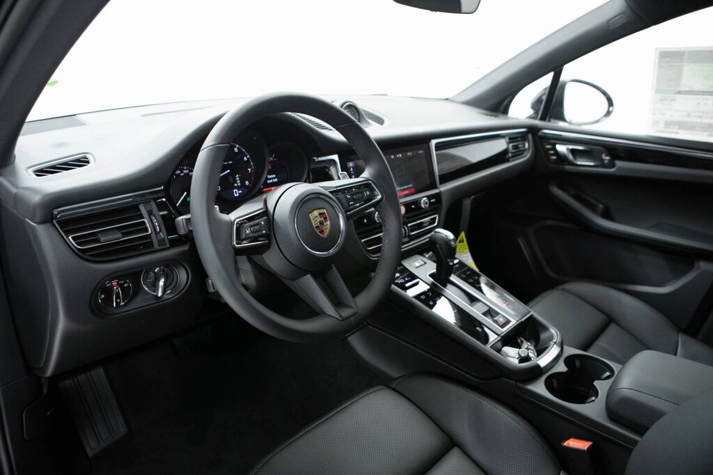 Black 2026 Porsche Macan AWD 7-Speed Porsche Doppelkupplung (PDK) 2.0L Turbocharged 14-Way Power Seats with Memory Package, 4-Wheel Disc Brakes, 8 Speakers, 8-Way Front Comfort Seats, ABS brakes, Air Conditioning, Alloy wheels, AM/FM radio: SiriusXM, Apple CarPlay, Auto-dimming door mirrors, Auto-dimming Rear-View mirror, Automatic temperature control, BOSE Surround Sound System, Brake assist, Bumpers: body-color, Delay-off headlights, Driver door bin, Driver vanity mirror, Dual front impact airbags, Dual front side impact airbags, Electronic Stability Control, Emergency communication system, Exterior Parking Camera Rear, Four wheel independent suspension, Front anti-roll bar, Front Bucket Seats, Front Center Armrest, Front dual zone A/C, Front reading lights, Front Ventilated Seats, Fully automatic headlights, Garage door transmitter: HomeLink, Heated door mirrors, Heated front seats, Heated Steering Wheel, Illuminated entry, Lane Change Assist (LCA), Leather Shift Knob, Leather steering wheel, LED Headlights with Porsche Dynamic Light System Plus, Low tire pressure warning, Memory seat, Navigation System, Occupant sensing airbag, Outside temperature display, Overhead airbag, Overhead console, Panic alarm, Panoramic Roof System, Passenger door bin, Passenger vanity mirror, Porsche Communication Management, Power door mirrors, Power driver seat, Power Liftgate, Power passenger seat, Power steering, Power windows, Premium Package Plus, Radio data system, Rain sensing wipers, Rear air conditioning, Rear anti-roll bar, Rear Heated Seats, Rear reading lights, Rear seat center armrest, Rear side impact airbag, Rear window defroster, Rear window wiper, Remote keyless entry, Roof Rails in High Gloss Black, Security system, Side Blades in Exterior Color, Sound Package Plus, Speed control, Speed-sensing steering, Split folding rear seat, Spoiler, Sport steering wheel, Standard Seat Trim, Steering wheel mounted audio controls, Surround View, Tachometer, Telescoping steering wheel, Tilt steering wheel, Traction control, Trip computer, Turn signal indicator mirrors, Under Door Puddle Light Projectors, Variably intermittent wipers, Wheel Center Caps with Colored Porsche Crest, Wheels: 19 Macan, Wheels: 21 911 Turbo.