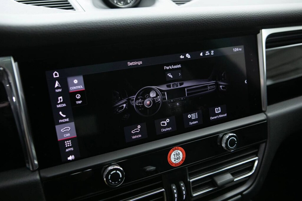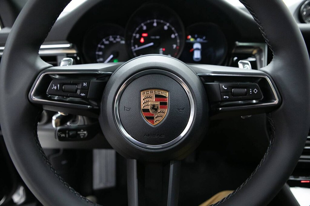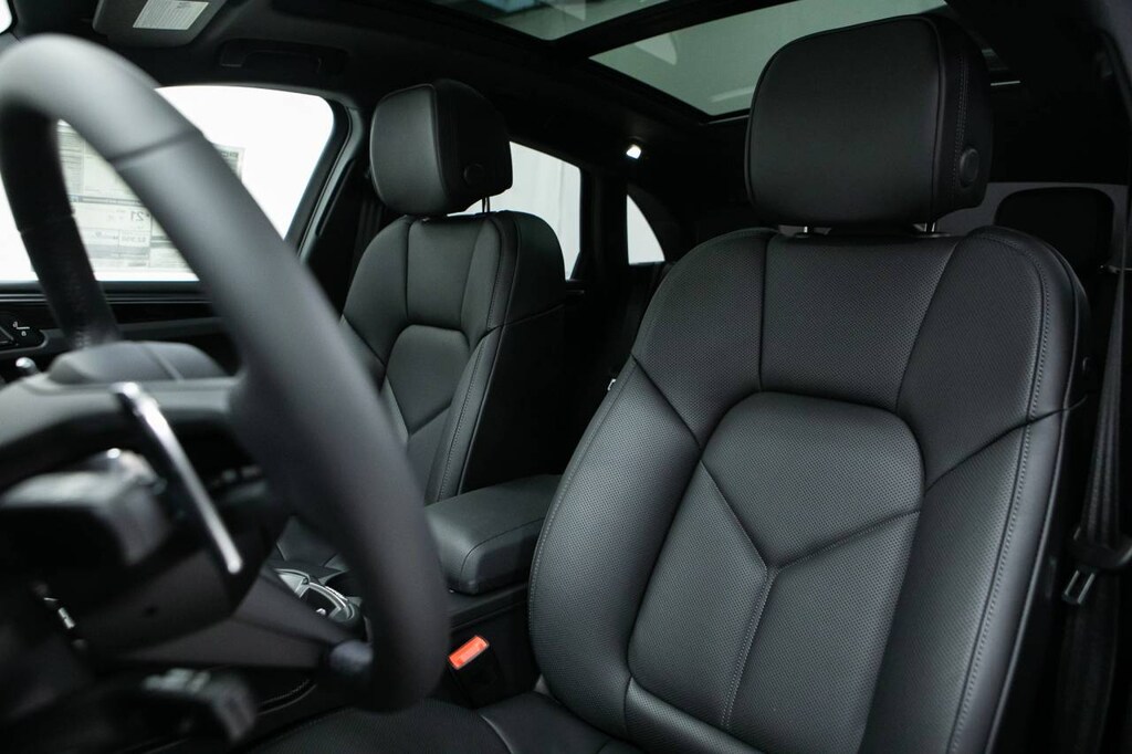 Black 2026 Porsche Macan AWD 7-Speed Porsche Doppelkupplung (PDK) 2.0L Turbocharged 14-Way Power Seats with Memory Package, 4-Wheel Disc Brakes, 8 Speakers, 8-Way Front Comfort Seats, ABS brakes, Air Conditioning, Alloy wheels, AM/FM radio: SiriusXM, Apple CarPlay, Auto-dimming door mirrors, Auto-dimming Rear-View mirror, Automatic temperature control, Brake assist, Bumpers: body-color, Delay-off headlights, Driver door bin, Driver vanity mirror, Dual front impact airbags, Dual front side impact airbags, Electric Steering Column, Electronic Stability Control, Emergency communication system, Exterior Parking Camera Rear, Four wheel independent suspension, Front anti-roll bar, Front Bucket Seats, Front Center Armrest, Front dual zone A/C, Front reading lights, Front Ventilated Seats, Fully automatic headlights, Garage door transmitter: HomeLink, Heated door mirrors, Heated front seats, Illuminated entry, Lane Change Assist (LCA), Leather Shift Knob, Leather steering wheel, LED Headlights with Porsche Dynamic Light System Plus, Low tire pressure warning, Memory seat, Navigation System, Occupant sensing airbag, Outside temperature display, Overhead airbag, Overhead console, Panic alarm, Panoramic Roof System, Passenger door bin, Passenger vanity mirror, Porsche Communication Management, Power door mirrors, Power driver seat, Power Liftgate, Power passenger seat, Power steering, Power windows, Premium Package Plus, Radio data system, Rain sensing wipers, Rear air conditioning, Rear anti-roll bar, Rear Heated Seats, Rear reading lights, Rear seat center armrest, Rear side impact airbag, Rear window defroster, Rear window wiper, Remote keyless entry, Security system, Sound Package Plus, Speed control, Speed-sensing steering, Split folding rear seat, Spoiler, Sport steering wheel, Standard Seat Trim, Steering wheel mounted audio controls, Surround View, Tachometer, Telescoping steering wheel, Tilt steering wheel, Traction control, Trip computer, Turn signal indicator mirrors, Variably intermittent wipers, Wheels: 19 Macan, Wheels: 21 RS Spyder Design.