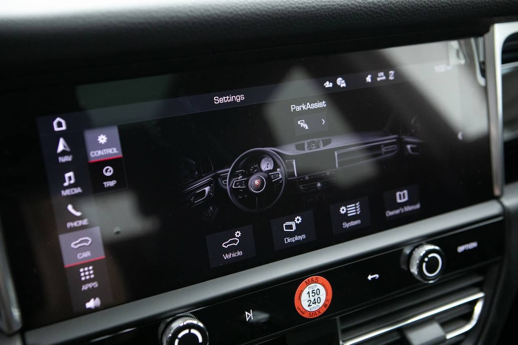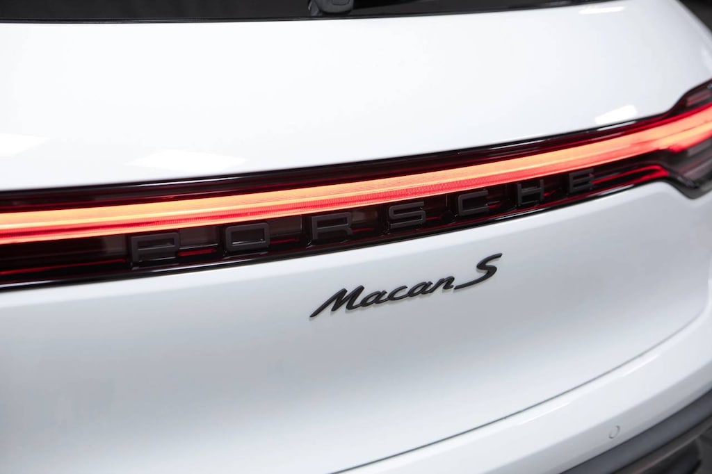 White 2026 Porsche Macan S AWD 7-Speed Porsche Doppelkupplung (PDK) V6 14-Way Power Seats with Memory Package, 4-Wheel Disc Brakes, 8 Speakers, 8-Way Front Comfort Seats, ABS brakes, Air Conditioning, Alloy wheels, AM/FM radio: SiriusXM, Apple CarPlay, Auto-dimming door mirrors, Auto-dimming Rear-View mirror, Automatic temperature control, BOSE Surround Sound System, Brake assist, Bumpers: body-color, Delay-off headlights, Driver door bin, Driver vanity mirror, Dual front impact airbags, Dual front side impact airbags, Electric Steering Column, Electronic Stability Control, Emergency communication system, Exterior Parking Camera Rear, Four wheel independent suspension, Front anti-roll bar, Front Bucket Seats, Front Center Armrest, Front dual zone A/C, Front reading lights, Front Ventilated Seats, Fully automatic headlights, Garage door transmitter: HomeLink, Heated door mirrors, Heated front seats, Illuminated entry, Lane Change Assist (LCA), Leather Shift Knob, Leather steering wheel, LED Headlights with Porsche Dynamic Light System Plus, Low tire pressure warning, Memory seat, Navigation System, Occupant sensing airbag, Outside temperature display, Overhead airbag, Overhead console, Panic alarm, Panoramic Roof System, Passenger door bin, Passenger vanity mirror, Porsche Communication Management, Porsche Crest on Front Headrests, Porsche Logo and Model Designation in Satin Black, Power door mirrors, Power driver seat, Power Liftgate, Power passenger seat, Power steering, Power windows, Premium Package Plus, Radio data system, Rain sensing wipers, Rear air conditioning, Rear anti-roll bar, Rear Heated Seats, Rear reading lights, Rear seat center armrest, Rear side impact airbag, Rear window defroster, Rear window wiper, Remote keyless entry, Roof Rails in High Gloss Black, Security system, Side Blades in Exterior Color, Sound Package Plus, Speed control, Speed-sensing steering, Split folding rear seat, Spoiler, Sport steering wheel, Sport Tailpipes in Black, Standard Seat Trim, Steering wheel mounted audio controls, Surround View, Tachometer, Telescoping steering wheel, Tilt steering wheel, Traction control, Trip computer, Turn signal indicator mirrors, Under Door Puddle Light Projectors, Variably intermittent wipers, Wheel Center Caps with Colored Porsche Crest, Wheels: 20 Macan S in Highly Polished Dark Titanium, Wheels: 21 RS Spyder Design, Window Trim in High Gloss Black.