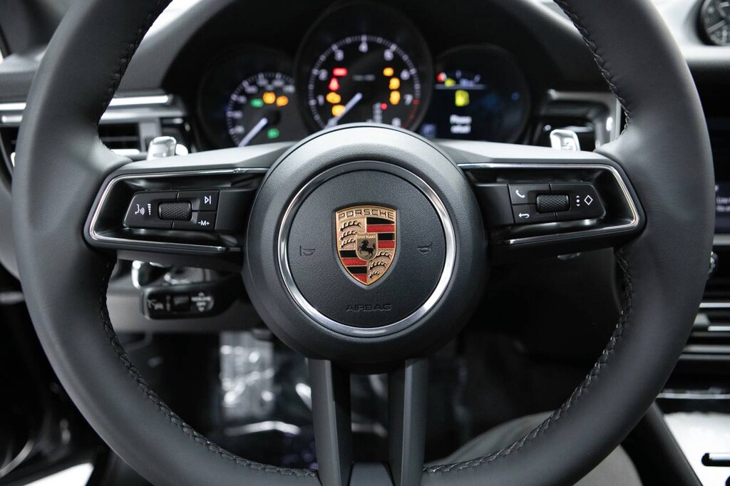 Black 2026 Porsche Macan AWD 7-Speed Porsche Doppelkupplung (PDK) 2.0L Turbocharged 14-Way Power Seats with Memory Package, 4-Wheel Disc Brakes, 8 Speakers, 8-Way Front Comfort Seats, ABS brakes, Air Conditioning, Alloy wheels, AM/FM radio: SiriusXM, Apple CarPlay, Auto-dimming door mirrors, Auto-dimming Rear-View mirror, Automatic temperature control, Brake assist, Bumpers: body-color, Delay-off headlights, Driver door bin, Driver vanity mirror, Dual front impact airbags, Dual front side impact airbags, Electronic Stability Control, Emergency communication system, Exterior Parking Camera Rear, Four wheel independent suspension, Front anti-roll bar, Front Bucket Seats, Front Center Armrest, Front dual zone A/C, Front reading lights, Front Ventilated Seats, Fully automatic headlights, Garage door transmitter: HomeLink, Heated door mirrors, Heated front seats, Heated Steering Wheel, Illuminated entry, Lane Change Assist (LCA), Leather Shift Knob, Leather steering wheel, LED Headlights with Porsche Dynamic Light System Plus, Low tire pressure warning, Memory seat, Navigation System, Occupant sensing airbag, Outside temperature display, Overhead airbag, Overhead console, Panic alarm, Panoramic Roof System, Passenger door bin, Passenger vanity mirror, Porsche Communication Management, Power door mirrors, Power driver seat, Power Liftgate, Power passenger seat, Power steering, Power windows, Premium Package Plus, Radio data system, Rain sensing wipers, Rear air conditioning, Rear anti-roll bar, Rear Heated Seats, Rear reading lights, Rear seat center armrest, Rear side impact airbag, Rear window defroster, Rear window wiper, Remote keyless entry, Roof Rails in High Gloss Black, Security system, Side Blades in Exterior Color, Sound Package Plus, Speed control, Speed-sensing steering, Split folding rear seat, Spoiler, Sport steering wheel, Standard Seat Trim, Steering wheel mounted audio controls, Surround View, Tachometer, Telescoping steering wheel, Tilt steering wheel, Traction control, Trip computer, Turn signal indicator mirrors, Under Door Puddle Light Projectors, Variably intermittent wipers, Wheel Center Caps with Colored Porsche Crest, Wheels: 19 Macan, Wheels: 20 Macan S in Highly Polished Dark Titanium.