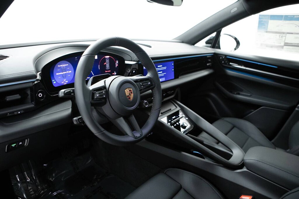 Black 2026 Porsche Macan Electric RWD Single-Speed Automatic Electric ZEV 335hp 10 Speakers, 14-Way Comfort Seats with Comfort Memory, 3D Surround View and Porsche Digital Key, 4-Wheel Disc Brakes, 4-Zone Advanced Climate Control, 8-Way Comfort Seats, ABS brakes, Adaptive suspension, Air Conditioning, Air Quality System, Alloy wheels, Apple CarPlay & Android Auto, Auto High-beam Headlights, Auto-dimming door mirrors, Auto-dimming Rear-View mirror, Auto-leveling suspension, Automatic temperature control, Bodyside moldings, BOSE Surround Sound System, Brake assist, Bumpers: body-color, Compass, Delay-off headlights, Driver door bin, Driver vanity mirror, Dual front impact airbags, Dual front side impact airbags, Electronic Stability Control, Emergency communication system: Emergency Call Systems - eCall and bCall, Exterior Parking Camera Rear, Four wheel independent suspension, Front anti-roll bar, Front Bucket Seats, Front Center Armrest, Front dual zone A/C, Front reading lights, Front Ventilated Seats, Fully automatic headlights, Garage door transmitter: HomeLink, Heated door mirrors, Heated front seats, Heated GT Sport Steering Wheel in Leather, Heated steering wheel, Illuminated entry, Leather steering wheel, LED-Matrix Design Headlights, Low tire pressure warning, Navigation system: Porsche Communication Management (PCM), Occupant sensing airbag, Outside temperature display, Overhead airbag, Overhead console, Panic alarm, Passenger door bin, Passenger vanity mirror, Porsche Communication Management, Power door mirrors, Power driver seat, Power Liftgate, Power moonroof: Panoramic, Power passenger seat, Power steering, Power windows, Premium Package, Radio data system, Rain sensing wipers, Rear anti-roll bar, Rear fog lights, Rear Heated Seat, Rear reading lights, Rear seat center armrest, Rear side impact airbag, Rear window defroster, Remote keyless entry, Security system, Side Blades in Exterior Color, SiriusXM Extended Subscription (3 Years), Sound Package Plus, Speed control, Speed-sensing steering, Split folding rear seat, Spoiler, Standard Interior Seat Trim, Steering wheel mounted audio controls, Telescoping steering wheel, Tilt steering wheel, Traction control, Trip computer, Variably intermittent wipers, Wheels: 20 Macan, Wheels: 21 Macan Design, Window Trim in High Gloss Black.