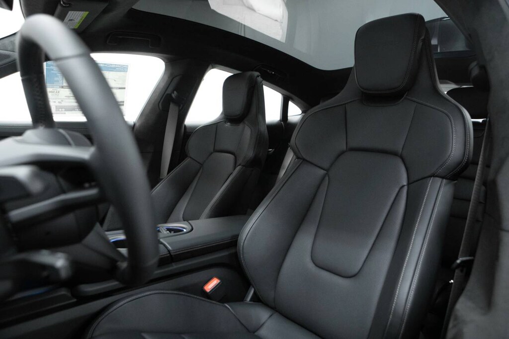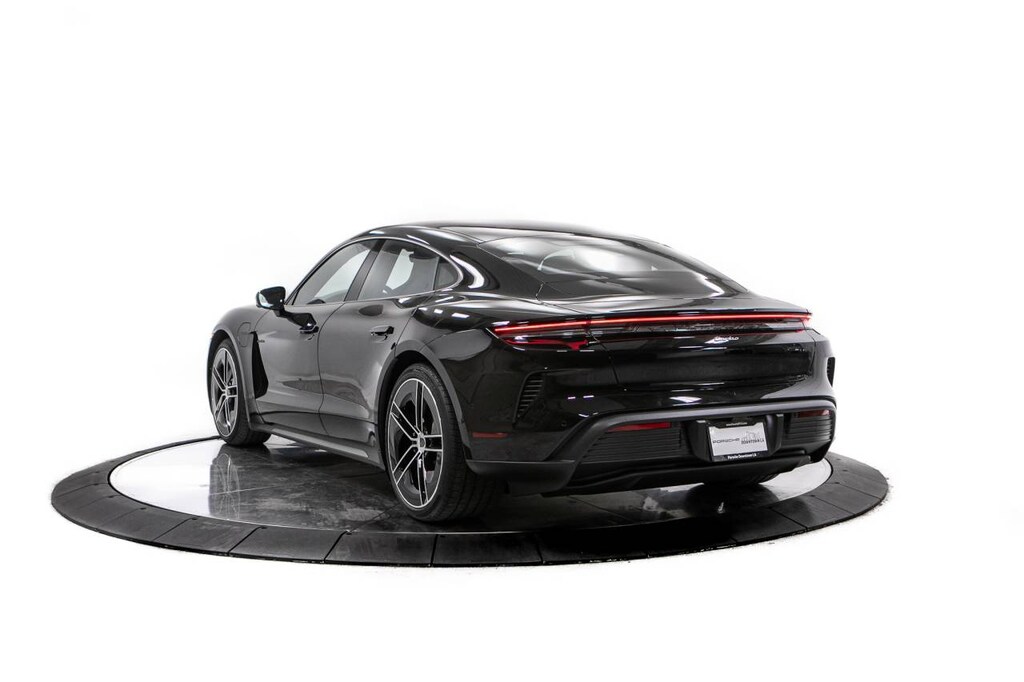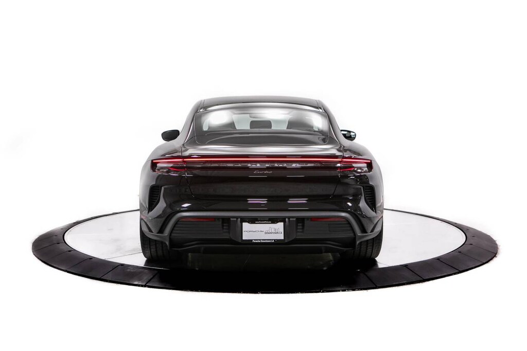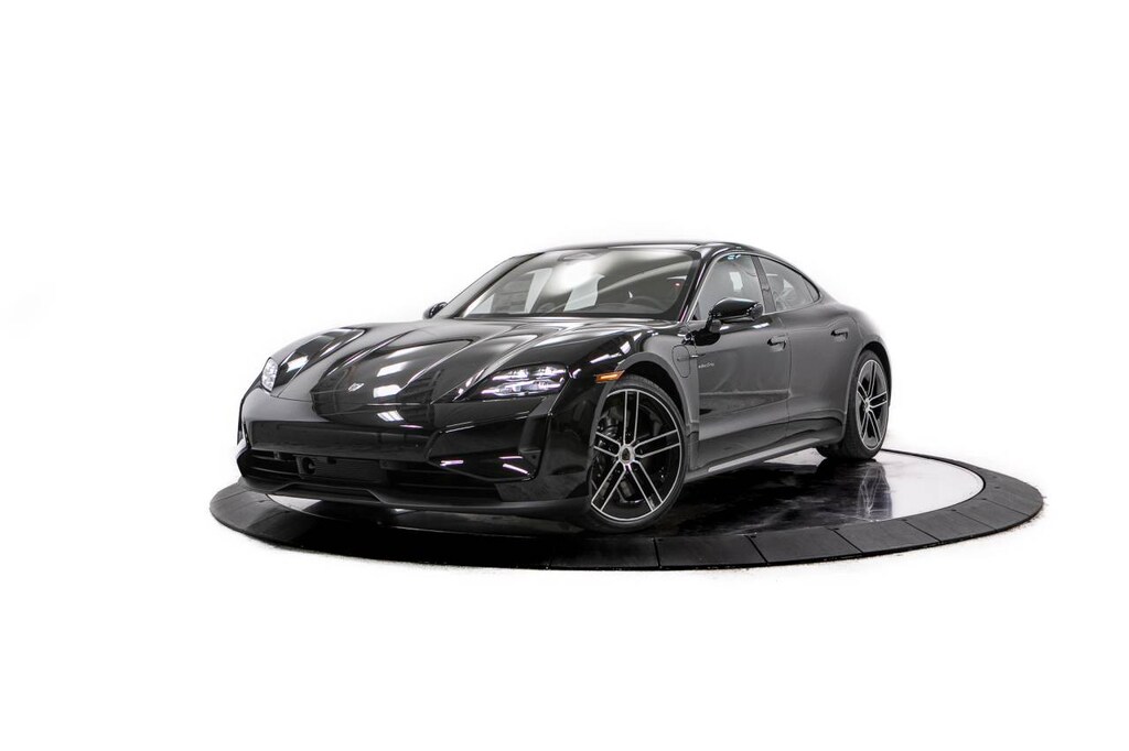 Black 2026 Porsche Taycan Turbo AWD 2-Speed Automatic Electric Motor 14 Speakers, 14-Way Comfort Seats with Comfort Memory, 18-Way Adaptive Sport Seats Plus with Comfort Memory, 4-Wheel Disc Brakes, ABS brakes, Adaptive Cruise Control, Adaptive suspension, Advanced 4-Zone Climate Control, Air Conditioning, Air Quality System, Alloy wheels, Apple CarPlay & Android Auto, Artificial Leather Seat Trim, Audio memory, Auto High-beam Headlights, Auto tilt-away steering wheel, Auto-dimming door mirrors, Auto-dimming Rear-View mirror, Auto-leveling suspension, Automatic temperature control, Brake assist, Bumpers: body-color, Burmester 3D High-End Surround Sound System, Compass, Delay-off headlights, Driver door bin, Driver vanity mirror, Dual front impact airbags, Dual front side impact airbags, Electronic Stability Control, Emergency communication system: Emergency Call Systems - eCall and bCall, Exterior Parking Camera Rear, Fixed Panoramic Roof in Glass, Four wheel independent suspension, Front anti-roll bar, Front Bucket Seats, Front Center Armrest, Front dual zone A/C, Front reading lights, Front Ventilated Seats, Fully automatic headlights, Garage door transmitter: HomeLink, Head-Up Display, Heated door mirrors, Heated front seats, Heated rear seats, Heated steering wheel, HVAC memory, Illuminated entry, Knee airbag, Leather steering wheel, Low tire pressure warning, Memory seat, Navigation system: Porsche Communication Management (PCM), Occupant sensing airbag, Outside temperature display, Overhead airbag, Overhead console, Panic alarm, Passenger Display, Passenger door bin, Passenger vanity mirror, Porsche Communication Management, Porsche InnoDrive with Adaptive Cruise Control (ACC) and Active Lane Keep (ALK), Porsche Surface Coated Brakes (PSCB), Power door mirrors, Power driver seat, Power passenger seat, Power steering, Power windows, Premium Package, Preparation For Front and Rear Porsche Dashcam, Radio data system, Rain sensing wipers, Rear 2+1 Seats, Rear anti-roll bar, Rear Axle Steering, Rear fog lights, Rear reading lights, Rear seat center armrest, Rear side impact airbag, Rear window defroster, Remote keyless entry, Security system, Soft Close Doors, Speed control, Speed-sensing steering, Split folding rear seat, Spoiler, Sport steering wheel, Steering wheel memory, Steering wheel mounted audio controls, Storage Package, Surround View with Active Parking Support, Telescoping steering wheel, Tilt steering wheel, Traction control, Trip computer, Variably intermittent wipers, Wheels: : 20 Sport Aero, Wheels: 21 Aero Design.