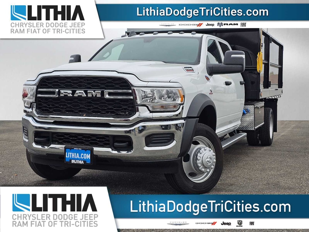 Lithia Chrysler Dodge Jeep Ram of Tri-Cities is pleased to offer this Bright White Clearcoat 2024 Ram 5500HD Tradesman for purchase, this vehicle is well equipped with many features including:Chrome Appearance Group (Bright Front Bumper and Center Hub), Max Tow Package (4.89 Axle Ratio), Quick Order Package 2YA Tradesman (Black Exterior Truck Badging, Black Wheel Flares, Door Sill Scuff Pads, and Halogen Quad Headlamps), 115V Auxiliary Power Outlet, 19.5 x 6.0 Steel Wheels, 4-Wheel Disc Brakes, 4.44 Axle Ratio, 40/20/40 Split Bench Seat, 6 Speakers, 87 mph Maximum Speed, ABS brakes, Air Conditioning, Black Exterior Mirrors, Chrome Tubular Side Steps, Compass, Delay-off headlights, Driver door bin, Dual front impact airbags, Dual rear wheels, Electric Shift-On-The-Fly Transfer Case, Electronic Stability Control, Electronically Controlled Throttle, Emergency communication system: SiriusXM Guardian, For Details, Visit DriveUconnect.com, For More Info, Call 800-643-2112, Front anti-roll bar, Front Bucket Seats, Front License Plate Bracket, Front reading lights, Fully automatic headlights, Global Telematics Box Module (TBM), GPS Antenna Input, HD Vinyl 40/20/40 Split Bench Seat, Integrated Voice Command w/Bluetooth, Manual Adjust 4-Way Driver Seat, Manual Adjust 4-Way Front Passenger Seat, Manual Folding Exterior Mirrors, Occupant sensing airbag, Outside temperature display, Passenger door bin, Passenger vanity mirror, Power steering, Power windows, Radio data system, Radio: Uconnect 3 w/5 Display, Rear anti-roll bar, Rear Folding Seat, Remote Keyless Entry, SiriusXM Radio Service, Speed control, Tachometer, Temperature & Compass Gauge, Tilt steering wheel, Traction control, Trailer Brake Control, Variably intermittent wipers, and VoltmeteR.