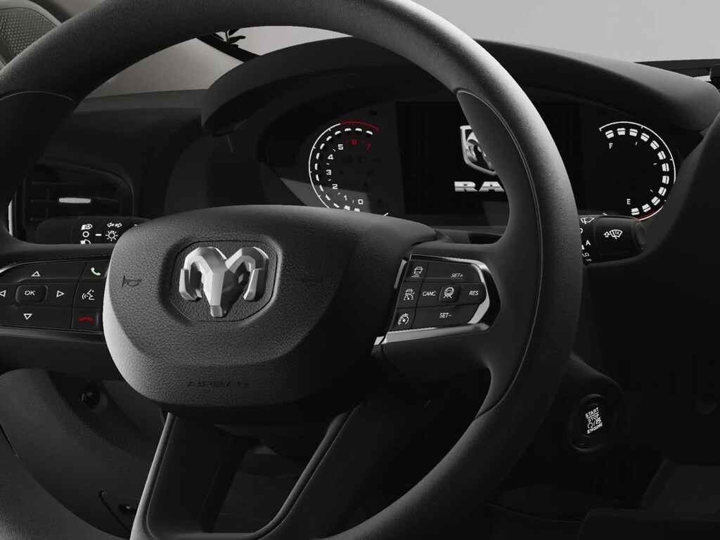 Our ProMaster cabin is engineered to have excellent comfort and convenience with supportive cloth seats, a multifunction steering wheel, air conditioning, power accessories, keyless access, pushbutton ignition, and a 3.5-inch driver display. The fantastically functional infotainment system bundles a 7-inch touchscreen, full-color navigation, WiFi compatibility, Apple CarPlay, Android Auto, Bluetooth, voice command, and four-speaker audio for easy connectivity. The roomy rear is easy to upfit, too!