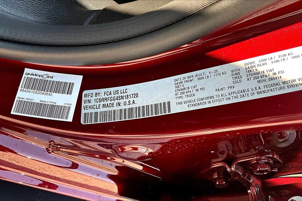 Delmonico Red Pearlcoat 2025 Ram 1500 Tradesman 4WD 8-Speed Automatic 3.6L V6 24V VVT FRESH OIL CHANGE, 2nd Row In Floor Storage Bins, 3 Rear Seat Head Restraints, 3.21 Rear Axle Ratio, 4 Way Front Headrests, 4-Wheel Disc Brakes, 40/20/40 Split Bench Seat, 6 Speakers, ABS brakes, Air Conditioning, AM/FM radio, Apple CarPlay/Android Auto, Auto High-beam Headlights, Black Exterior Mirrors, Brake assist, Cloth Bench Seat, Compass, Delay-off headlights, Driver door bin, Dual front impact airbags, Dual front side impact airbags, Electronic Stability Control, Exterior Mirrors w/Heating Element, Front & Rear Floor Mats, Front anti-roll bar, Front Center Armrest, Front Center Seat Cushion Storage, Front License Plate Bracket, Front reading lights, Front Seat Back Map Pockets, Front wheel independent suspension, Fully automatic headlights, Heated door mirrors, Heavy Duty Vinyl 40/20/40 Split Bench Seat, Illuminated entry, Low tire pressure warning, Manual Adjust 4-Way Driver Seat, Manual Adjust 4-Way Front Passenger Seat, Manual Folding Exterior Mirrors, Manufacturers Statement of Origin, Occupant sensing airbag, Outside temperature display, Overhead airbag, Overhead console, Panic alarm, ParkView Rear Back-Up Camera, Passenger door bin, Passenger vanity mirror, Power door mirrors, Power steering, Power windows, Quick Order Package 23A Tradesman, Radio data system, Radio: Uconnect 5 W w/8.4 Display, RAM Grille Badge - Black, Rear 60/40 Folding Seat, Rear anti-roll bar, Rear Power Sliding Window, Rear step bumper, Remote keyless entry, Seat Parts Module II, SiriusXM Satellite Radio, Speed control, Tachometer, Telescoping steering wheel, Tilt steering wheel, Traction control, Tradesman Level 1 Equipment Group, Variably intermittent wipers, Voltmeter, Wheels: 18 x 7.5 Steel Painted.