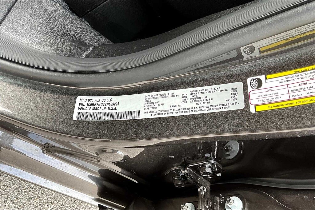 Granite Crystal Metallic Clearcoat 2025 Ram 1500 Tradesman 4WD 8-Speed Automatic 3.6L V6 24V VVT FRESH OIL CHANGE, 2nd Row In Floor Storage Bins, 3 Rear Seat Head Restraints, 3.21 Rear Axle Ratio, 4 Way Front Headrests, 4-Wheel Disc Brakes, 40/20/40 Split Bench Seat, 6 Speakers, ABS brakes, Air Conditioning, AM/FM radio, Apple CarPlay/Android Auto, Auto High-beam Headlights, Black Exterior Mirrors, Brake assist, Cloth Bench Seat, Compass, Delay-off headlights, Driver door bin, Dual front impact airbags, Dual front side impact airbags, Electronic Stability Control, Exterior Mirrors w/Heating Element, Front & Rear Floor Mats, Front anti-roll bar, Front Center Armrest, Front Center Seat Cushion Storage, Front License Plate Bracket, Front reading lights, Front Seat Back Map Pockets, Front wheel independent suspension, Fully automatic headlights, Heated door mirrors, Heavy Duty Vinyl 40/20/40 Split Bench Seat, Illuminated entry, Low tire pressure warning, Manual Adjust 4-Way Driver Seat, Manual Adjust 4-Way Front Passenger Seat, Manual Folding Exterior Mirrors, Manufacturers Statement of Origin, Occupant sensing airbag, Outside temperature display, Overhead airbag, Overhead console, Panic alarm, ParkView Rear Back-Up Camera, Passenger door bin, Passenger vanity mirror, Power door mirrors, Power steering, Power windows, Quick Order Package 23A Tradesman, Radio data system, Radio: Uconnect 5 W w/8.4 Display, RAM Grille Badge - Black, Rear 60/40 Folding Seat, Rear anti-roll bar, Rear Power Sliding Window, Rear step bumper, Remote keyless entry, Seat Parts Module II, SiriusXM Satellite Radio, Speed control, Tachometer, Telescoping steering wheel, Tilt steering wheel, Traction control, Tradesman Level 1 Equipment Group, Variably intermittent wipers, Voltmeter, Wheels: 18 x 7.5 Steel Painted.