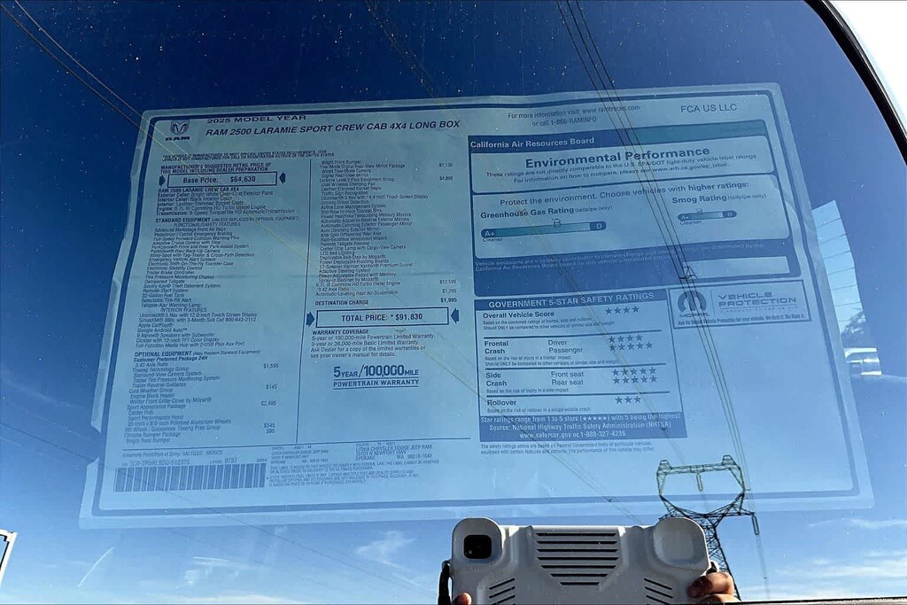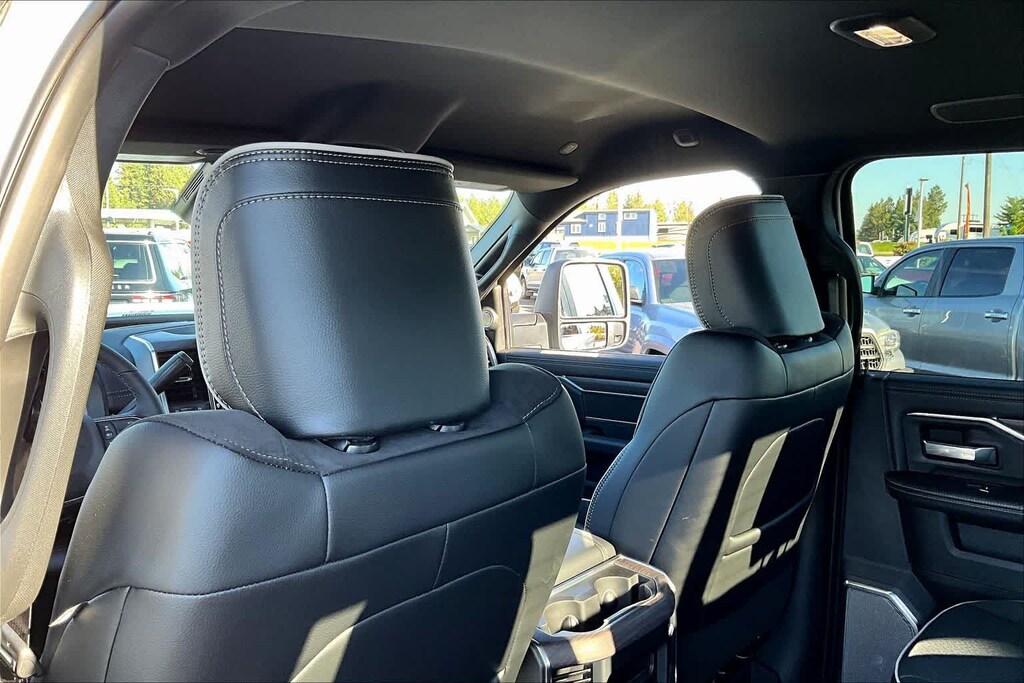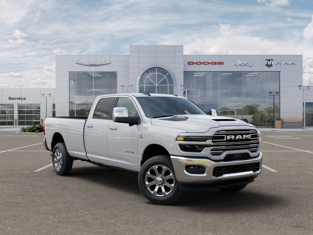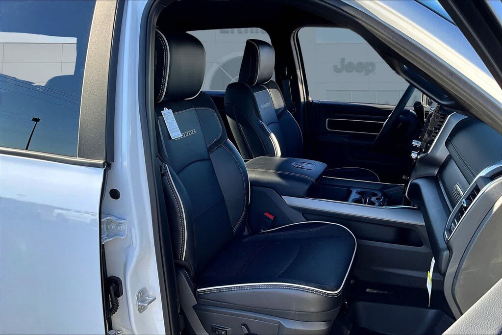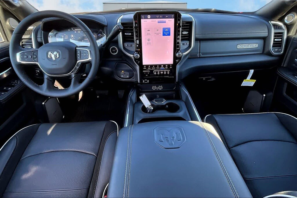 ENGINE: 6.7L I6 CUMMINS HO TURBO DIESEL Selective Catalytic Reduction (Urea), Dual 730 Amp Maintenance Free Batteries, Cummins Turbo Diesel Badge, Heavy Duty Engine Cooling, Diesel Exhaust Brake, Supplemental Heater, 3.42 Axle Ratio, Front Bumper Sight Shields, Capless Fuel Fill w/o Discriminator, GVWR: 11,040 lbs, LARAMIE LEVEL 2 PLUS EQUIPMENT GROUP Power Adjustable Pedals w/Memory, Power Deployable Running Boards, Auto Power-Folding Mirrors, Anti-Spin Differential Rear Axle, Drowsy Driver Detection, MOPAR Deployable Bed Step, Active Lane Management System, Remote Tailgate Release, 17 Speaker harman/kardon® Premium Sound, 2nd Row In Floor Storage Bins, CTR Stop Lamp w/Cargo View Camera, Rain Sensitive Windshield Wipers, LED Bed Lighting, Traffic Sign Recognition, GPS Navigation, Adaptive Steering System, Auto Dim Exterior Mirror, SiriusXM w/360L, Foam Bottle Insert (Door Trim Panel), Off-Road Info Pages, Trailer Tow Pages, 14.4 Touchscreen Display, Power Heated Fold Telescopic Mirrors w/Memory, Radio: Uconnect 5 Nav w/14.4 Display, MOPAR Spray In Bedliner, Auto High Beam Headlamp Control, Chrome, TOWING TECHNOLOGY GROUP CTR Stop Lamp w/Cargo View Camera, Surround View Camera System, Trailer Tire Pressure Monitoring System, Trailer Reverse Guidance, AUTO LEVEL REAR AIR SUSPENSION, TOW-MODE DIGITAL REARVIEW MIRROR PACKAGE Digital Rearview Mirror, Tow-Mode Camera (Wired), TRANSMISSION: 8-SPEED TORQUEFLITE HD AUTOMATIC, BLACK, LEATHER TRIMMED BUCKET SEATS Bucket Seats, Dual Wireless Charging Pad, #1 Seat Foam Cushion, Full Length Upgraded Floor Console. Ram Laramie with Bright White Clearcoat exterior and Black interior features a Straight 6 Cylinder Engine with 430 HP at 2800 RPM*.