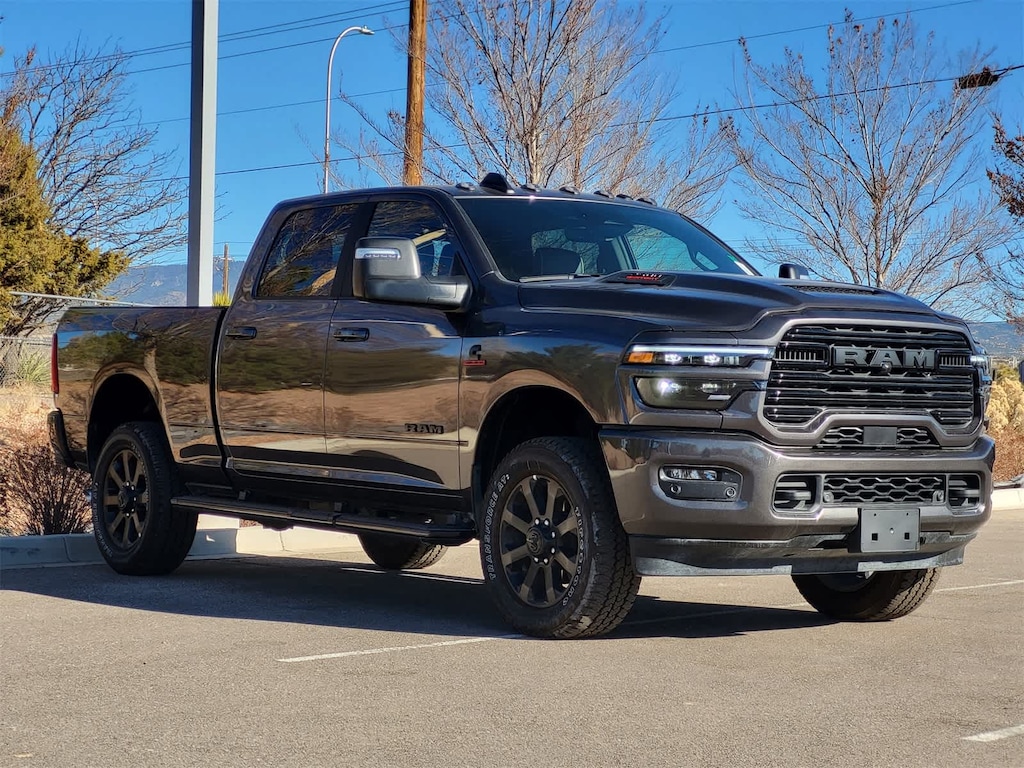 ENGINE: 6.7L I6 CUMMINS HO TURBO DIESEL Selective Catalytic Reduction (Urea), Dual 730 Amp Maintenance Free Batteries, Cummins Turbo Diesel Badge, Heavy Duty Engine Cooling, Diesel Exhaust Brake, Supplemental Heater, 3.42 Axle Ratio, Front Bumper Sight Shields, Capless Fuel Fill w/o Discriminator, GVWR: 11,040 lbs, NIGHT EDITION Tires: LT285/60R20E OWL On/Off Road, Black Exterior Truck Badging, Wheels: 20 x 8.0 Black Painted Aluminum, Gloss Black Grille Billets/Accents, Body Color Grille Surround, Sport Performance Hood, Black Exterior Mirrors, LARAMIE LEVEL 1 PLUS EQUIPMENT GROUP CTR Stop Lamp w/Cargo View Camera, Rain Sensitive Windshield Wipers, Power Adjustable Pedals w/Memory, LED Bed Lighting, Traffic Sign Recognition, Auto Power-Folding Mirrors, Adaptive Steering System, Auto Dim Exterior Mirror, Anti-Spin Differential Rear Axle, Drowsy Driver Detection, MOPAR Deployable Bed Step, Foam Bottle Insert (Door Trim Panel), Active Lane Management System, Power Heated Fold Telescopic Mirrors w/Memory, Remote Tailgate Release, MOPAR Spray In Bedliner, Auto High Beam Headlamp Control, Chrome Exterior Mirrors, Exterior Mirrors w/Memory, 2nd Row In Floor Storage Bins, Auto Dim Exterior Passenger Mirror, Auto Adjust In Reverse Exterior Mirrors, POWER SUNROOF, PAINTED FLAT WHEEL-TO-WHEEL SIDE STEPS, TRANSMISSION: 8-SPEED TORQUEFLITE HD AUTOMATIC, BLACK, LEATHER TRIMMED BUCKET SEATS Bucket Seats, Dual Wireless Charging Pad, #1 Seat Foam Cushion, Full Length Upgraded Floor Console. Ram Laramie with Granite Crystal Metallic Clearcoat exterior and Black interior features a Straight 6 Cylinder Engine with 430 HP at 2800 RPM*.