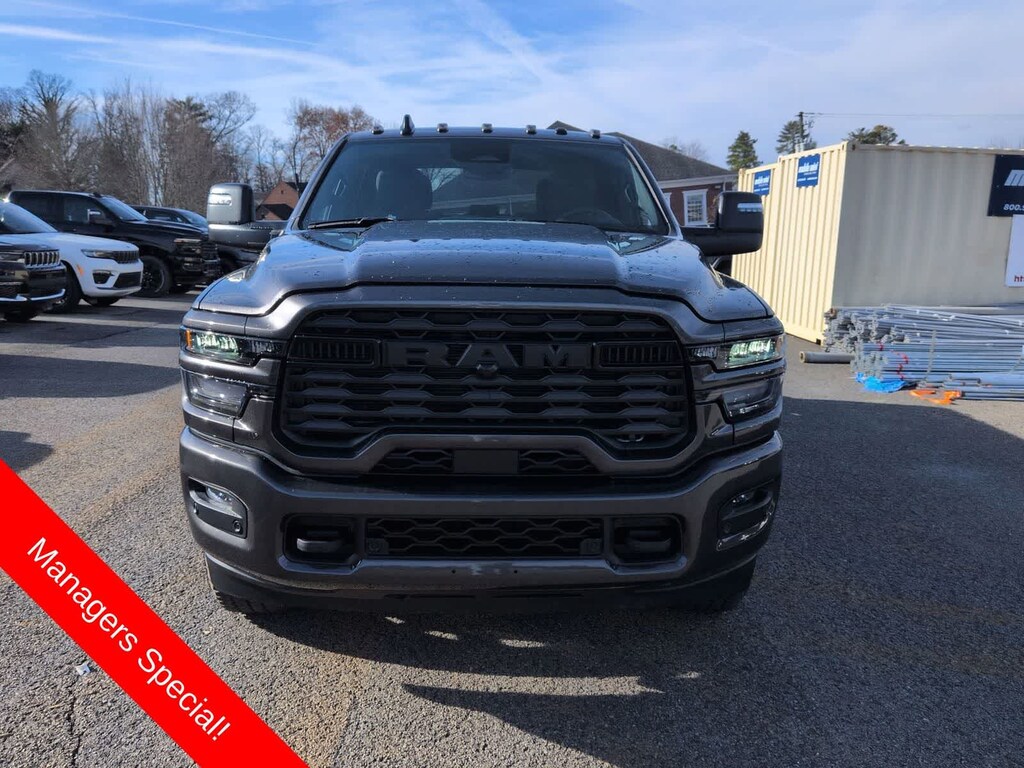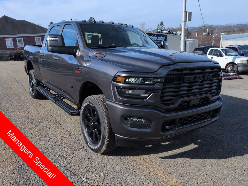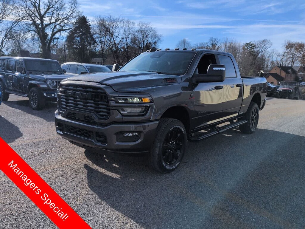 2500 Big Horn is nicely equipped with Big Horn Level 1 Plus Equipment Group (12 Touchscreen Display, 2 Way Rear Headrest Seat, 2nd Row In Floor Storage Bins, 4 Way Front Headrests, 40/20/40 Split Bench Seat, 4G LTE Wi-Fi Hot Spot, 9 Alpine Speakers w/Subwoofer, Air Conditioning ATC w/Dual Zone Control, Alexa Built-In, Anti-Spin Differential Rear Axle, Apple CarPlay, Auto Power-Folding Mirrors, Auto-Dimming Rear-View Mirror, Black Exterior Mirrors, Connected Travel & Traffic Services, Connectivity - US/Canada, Dual Glove Boxes, Emergency Vehicle Alert System (EVAS), Exterior Mirrors Courtesy Lamps, Exterior Mirrors w/Heating Element, Exterior Mirrors w/Supplemental Signals, Foam Bottle Insert (Door Trim Panel), Folding Flat Load Floor Storage, Footwell Courtesy Lamp, Forward & Reverse Utility Lights, Front Armrest w/Cupholders, Front Center Seat Cushion Storage, Front Seat Back Map Pockets, Global Telematics Box Module (TBM), Glove Box Lamp, Google Android Auto, GPS Antenna Input, GPS Navigation, HD Radio, Integrated Voice Command w/Bluetooth, LED Bed Lighting, Locking Lower Glove Box, Luxury Steering Wheel, Manual Adjust 4-Way Front Passenger Seat, Mirror Running Lights, MOPAR Deployable Bed Step, MOPAR Spray In Bedliner, Off-Road Info Pages, Power 2-Way Driver Lumbar Adjust, Power Adjust 8-Way Driver Seat, Power Adjust Mirrors, Power Adjustable Convex Aux Mirrors, Power Heated Folding Telescopic Mirrors, Power Telescoping Mirrors, Premium Cloth 40/20/40 Bench Seat, Radio: Uconnect 5 Nav w/12.0 Display, Rear 60/40 Folding Seat, Rear Dome w/On/Off Switch Lamp, Remote Start System, Remote USB Port - Charge Only, Selectable Tire Fill Alert, SiriusXM Radio Service, SiriusXM w/360L, Steering Wheel Mounted Audio Controls, Storage Tray, and Trailer Tow Pages), Cold Weather Group (Engine Block Heater and MOPAR Winter Front Grille Cover), Heated Seats & Wheel Group (Heated Front Seats and Heated Steering Wheel), Night Edition (Black Exterior Truck Badging, Black Interior Accents, Black Wheel Center Hub, Body Color Grille Surround, Gloss Black Nostrils/Mic Black Grille, Painted Front Bumper, Painted Rear Bumper, and Wheels: 20 x 8.0 Black Painted Aluminum), Quick Order Package 24Z Big Horn, 3.42 Axle Ratio, 3.73 Axle Ratio, 4-Wheel Disc Brakes, 5th Wheel/Gooseneck Towing Prep Group, 6 Speakers, ABS brakes, Air Conditioning, Alloy wheels, AM/FM radio: SiriusXM, Apple CarPlay/Android Auto, Brake assist, Bumpers: chrome, Clearance Lamps, Cloth 40/20/40 Bench Seat, Compass, Delay-off headlights, Delete Deployable Bed Step (DISC), Driver door bin, Dual front impact airbags, Dual front side impact airbags, Electronic Stability Control, Front anti-roll bar, Front Center Armrest w/Storage, Front fog lights, Front reading lights, Fully automatic headlights, Heated door mirrors, Illuminated entry, Low tire pressure warning, Manual Adjust 4-Way Driver Seat, Occupant sensing airbag, Outside temperature display, Overhead airbag, Overhead console, Painted Flat Wheel-to-Wheel Side Steps, Panic alarm, ParkView Rear Back-Up Camera, Passenger door bin, Passenger vanity mirror, Power door mirrors, Power steering, Power windows, Radio data system, Radio: Uconnect 5 w/8.4 Display, Rear anti-roll bar, Rear Folding Seat, Rear seat center armrest, Rear step bumper, Rear window defroster, Remote keyless entry, Security system, Speed control, Tachometer, Tilt steering wheel, Traction contr