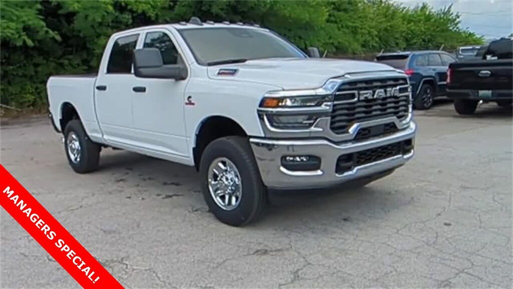 2500 Tradesman is nicely equipped with Bed Utility Group (DISC) (LED Bed Lighting, MOPAR Deployable Bed Step, and MOPAR Spray In Bedliner), Chrome Appearance Group (Bright Front Bumper, Bright Rear Bumper, Center Hub, Chrome Grille Surround, Matte Black Mesh Grille w/Chrome, and Wheels: 18 x 8.0 Steel Chrome Clad), Cold Weather Group (Engine Block Heater and MOPAR Winter Front Grille Cover), Quick Order Package 24A Tradesman, 2 Way Rear Headrest Seat, 4 Way Front Headrests, 4-Wheel Disc Brakes, 40/20/40 Split Bench Seat, 4G LTE Wi-Fi Hot Spot, 5th Wheel/Gooseneck Towing Prep Group, 6 Speakers, ABS brakes, Air Conditioning, AM/FM radio: SiriusXM, Apple CarPlay, Apple CarPlay/Android Auto, Black Exterior Mirrors, Black Wheel Center Hub, Brake assist, Clearance Lamps, Compass, Connectivity - US/Canada, Delay-off headlights, Driver door bin, Dual front impact airbags, Dual front side impact airbags, Electronic Stability Control, Front anti-roll bar, Front Armrest w/Cupholders, Front Center Armrest w/Storage, Front fog lights, Front reading lights, Fully automatic headlights, Global Telematics Box Module (TBM), Google Android Auto, GPS Antenna Input, Heavy Duty Vinyl 40/20/40 Split Bench Seat, Illuminated entry, Integrated Voice Command w/Bluetooth, Low tire pressure warning, Manual Adjust 4-Way Driver Seat, Manual Adjust 4-Way Front Passenger Seat, Manual Folding Exterior Mirrors, Manual Telescoping Mirrors, Occupant sensing airbag, Outside temperature display, Overhead airbag, Overhead console, Panic alarm, ParkView Rear Back-Up Camera, Passenger door bin, Passenger vanity mirror, Power steering, Power windows, Radio data system, Radio: Uconnect 5 w/8.4 Display, Rear anti-roll bar, Rear Folding Seat, Rear step bumper, Rear window defroster, Remote keyless entry, Remote USB Port - Charge Only, Selectable Tire Fill Alert, SiriusXM Radio Service, Speed control, Storage Tray, Tachometer, Tilt steering wheel, Traction control, Variably intermittent wipers, Voltmeter, and Wheels: 17 x 7.5 Black Steel Styled.
