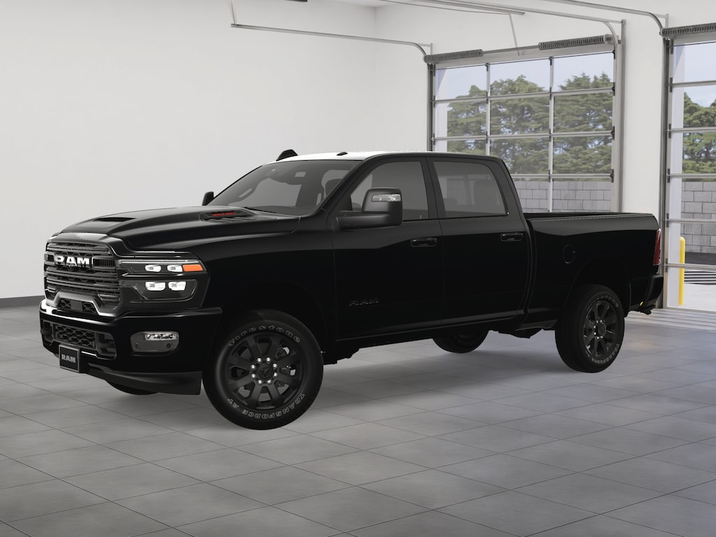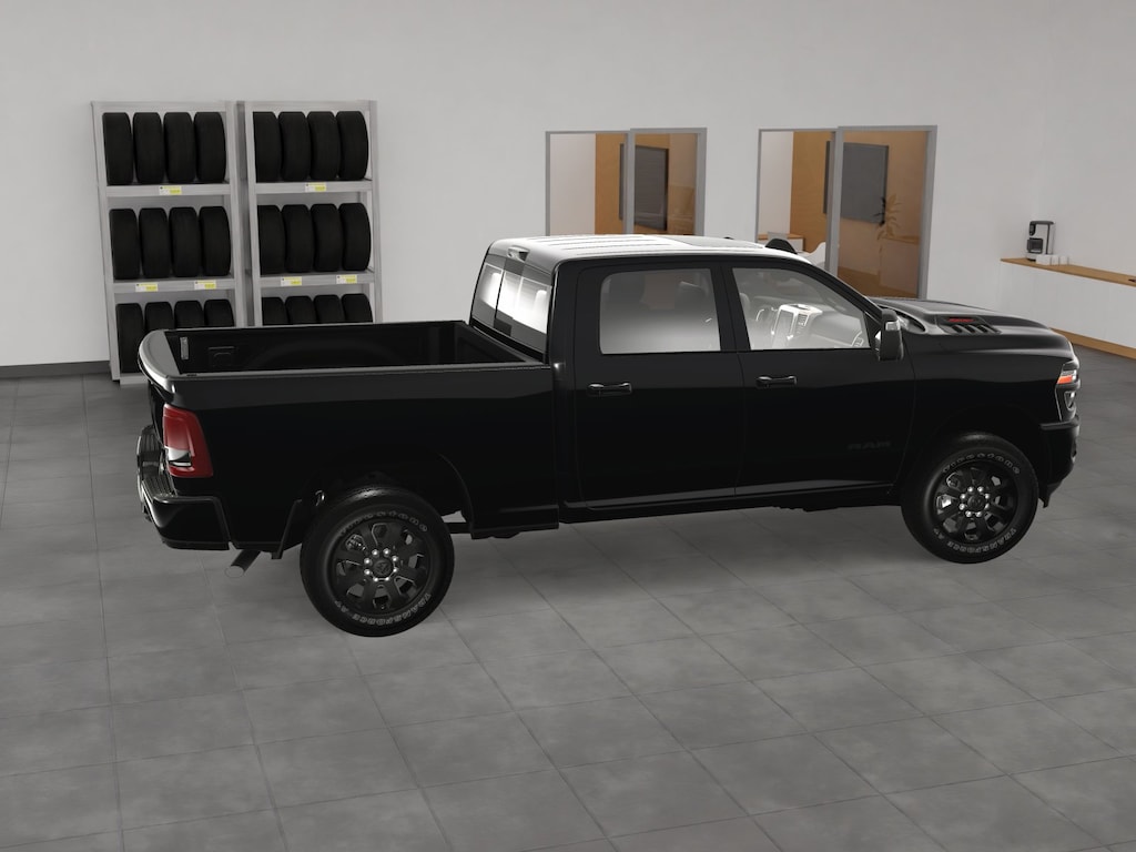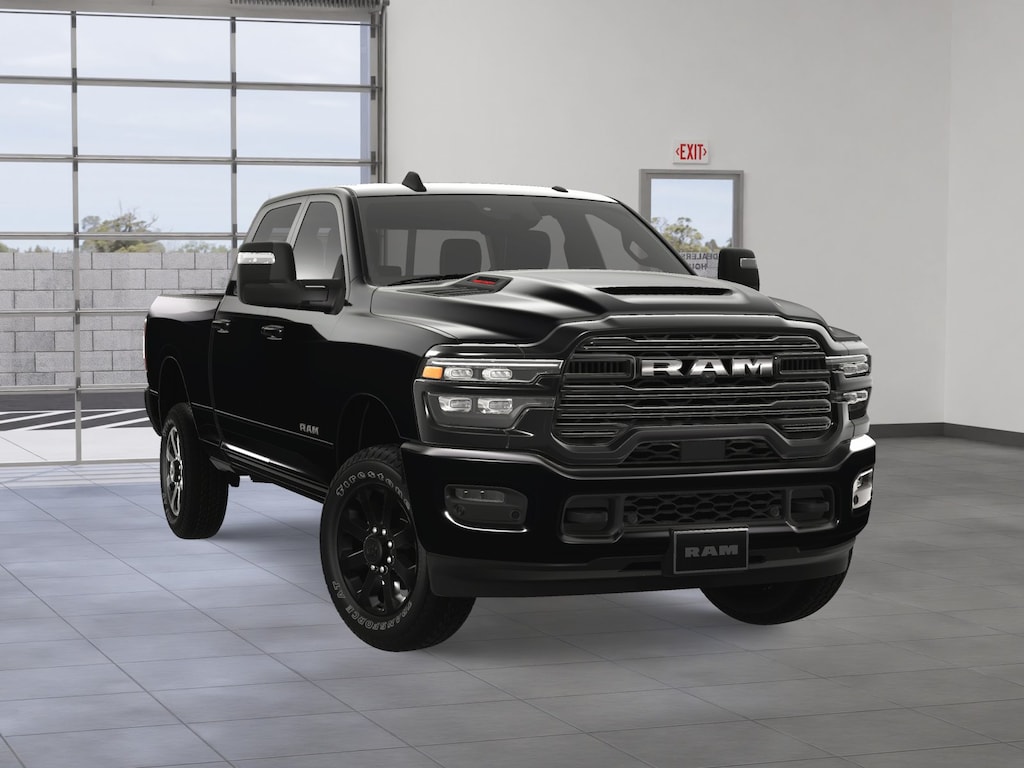 ENGINE: 6.7L I6 CUMMINS HO TURBO DIESEL Selective Catalytic Reduction (Urea), Dual 730 Amp Maintenance Free Batteries, GVWR: 11,800 lb, Cummins Turbo Diesel Badge, Heavy Duty Engine Cooling, Current Generation Engine Controller, Diesel Exhaust Brake, Supplemental Heater, 3.42 Axle Ratio, Front Bumper Sight Shields, Capless Fuel Fill w/o Discriminator, NIGHT EDITION Tires: LT285/60R20E OWL On/Off Road, Black Exterior Truck Badging, Wheels: 20 x 8.0 Black Painted Aluminum, Gloss Black Grille Billets/Accents, Body Color Grille Surround, Sport Performance Hood, Black Exterior Mirrors, LARAMIE LEVEL 1 PLUS EQUIPMENT GROUP CTR Stop Lamp w/Cargo View Camera, Rain Sensitive Windshield Wipers, Power Adjustable Pedals w/Memory, LED Bed Lighting, Traffic Sign Recognition, Adaptive Steering System, Auto Dimming Exterior Mirrors, Drowsy Driver Detection, MOPAR Deployable Bed Step, Foam Bottle Insert (Door Trim Panel), Active Lane Management System, Power Heat Fold Memory Telescopic Mirrors, Remote Tailgate Release, MOPAR Spray In Bedliner, #1 Seat Foam Cushion, Auto High Beam Headlamp Control, Exterior Mirrors w/Memory, 2nd Row In Floor Storage Bins, Auto Dimming Exterior Passenger Mirror, Auto Adjust In Reverse Exterior Mirrors, POWER SUNROOF, MOPAR FRONT & REAR RUBBER FLOOR MATS, TRANSMISSION: 8-SPEED TORQUEFLITE HD AUTOMATIC 12.0 Single Rear Wheel Axle, BLACK, LEATHER TRIMMED BUCKET SEATS Bucket Seats, Dual Wireless Charging Pad, Full Length Upgraded Floor Console. Ram Laramie with Diamond Black Crystal Pearlcoat exterior and Black interior features a Straight 6 Cylinder Engine with 430 HP at 2800 RPM*.
