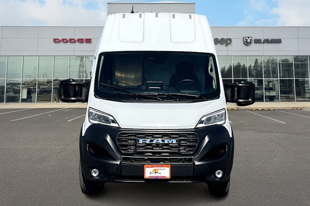 SAFETY/CONVENIENCE GROUP Adaptive Cruise Control w/Stop & Go, Surround View Camera System, Blind Spot & Cross Path Detection, ParkSense Front/Rear Park Assist w/Stop, Wireless Charging Pad, Heated Steering Wheel, White Noise Backup Alarm, Heated Windshield, Upfit Kit, walk-in partition w/door, non-skid cargo flooring, hard step (floor covering) and pocket door protection grab handles (pocket door), TRANSMISSION: FRONT OFFSET 1 SPEED GEARBOX (STD), ENGINE: 400V G1200 FRONT ELECTRIC DRIVE MOTOR (STD). Ram ProMaster Cargo Van EV with Bright White Clearcoat exterior and Black interior features a Electric Motor.