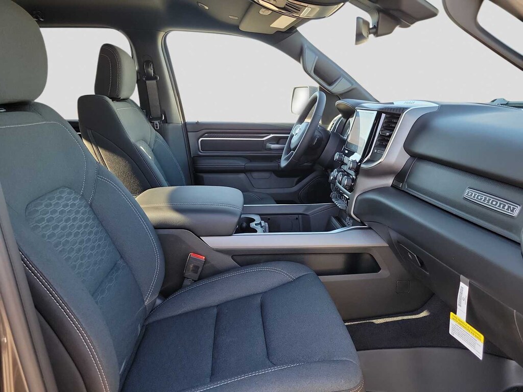 BIG HORN LEVEL 1 EQUIPMENT GROUP SiriusXM Radio Service, Rear Window Defroster, Rear View Auto Dim Mirror, Power Adjustable Pedals, Leather Wrapped Steering Wheel, Rear Power Sliding Window, Rear Dome w/On/Off Switch Lamp, Glove Box Lamp, Auto Power-Folding Mirrors, Auto Dim Exterior Driver Mirror, Heated Front Seats, Heated Steering Wheel, Black Premium Power Mirrors, SiriusXM Satellite Radio, 400W Inverter, Exterior Mirrors w/Supplemental Signals, Steering Wheel Mounted Audio Controls, Exterior Mirrors Courtesy Lamps, Body Color Fender Flares, 115V Auxiliary Power Outlet, Universal Garage Door Opener, 2nd Row In Floor Storage Bins, Sun Visors w/Illuminated Vanity Mirrors, ENGINE: 3.0L I6 HURRICANE SO TWIN TURBO ESS Aux Battery, 700 Amp Maintenance Free Battery, Active Noise Control System, Dual Rear Exhaust w/Bright Tips, Start-Stop Dual Battery System, 230 Amp Alternator, WHEELS: 20 X 9 ALUMINUM CHROME CLAD (WRK) Tires: 275/55R20 OWL All Season, Bridgestone Brand Tires, MOPAR FRONT & REAR RUBBER FLOOR MATS, TRANSMISSION: 8-SPEED AUTOMATIC (8HP75). Ram Big Horn with Granite Crystal Metallic Clearcoat exterior and Black interior features a Straight 6 Cylinder Engine with 305 HP at 6400 RPM*.