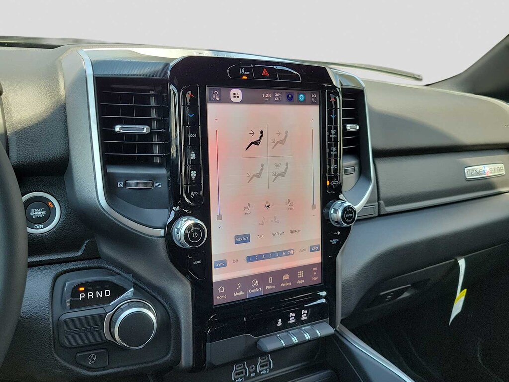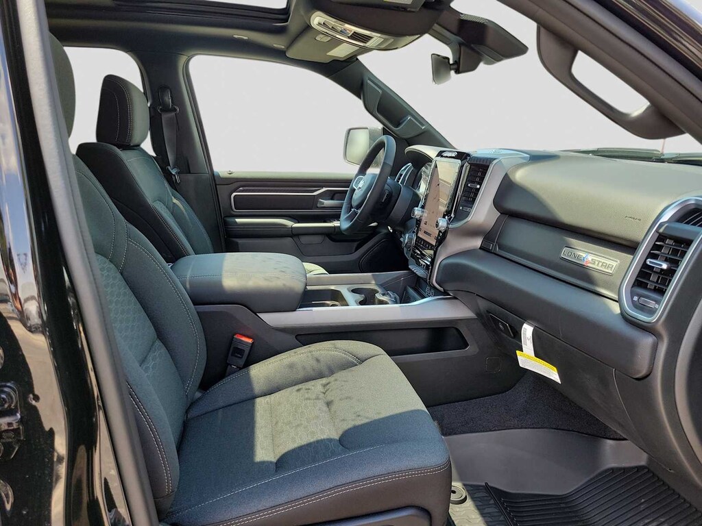 BIG HORN LEVEL 2 EQUIPMENT GROUP SiriusXM Radio Service, Power Adjustable Pedals, Leather Wrapped Steering Wheel, 12 Touchscreen Display, Glove Box Lamp, Auto Power-Folding Mirrors, 115V Auxiliary Rear Power Outlet, Media Hub w/2 Charge Only USBs, Heated Front Seats, Security Alarm, Black Premium Power Mirrors, Premium Overhead Console, 9 Amplified Speakers w/Subwoofer, Disassociated Touchscreen Display, Body Color Fender Flares, Remote Tailgate Release, 115V Auxiliary Power Outlet, LED Dome Lamp w/On/Off Switch, Universal Garage Door Opener, 2nd Row In Floor Storage Bins, Sun Visors w/Illuminated Vanity Mirrors, LED Footwell Lighting, Rear Window Defroster, Rear View Auto Dim Mirror, Rear Power Sliding Window, GPS Navigation, Overhead LED Lamps, Wheels: 20 x 9 Aluminum Chrome Clad, ENGINE: 3.0L I6 HURRICANE SO TWIN TURBO ESS Aux Battery, 700 Amp Maintenance Free Battery, Active Noise Control System, Dual Rear Exhaust w/Bright Tips, Start-Stop Dual Battery System, 230 Amp Alternator, DUAL-PANE PANORAMIC SUNROOF Dome Dual LED Reading Lamp, NIGHT EDITION Tires: 275/55R20 OWL All Season, Bridgestone Brand Tires, Accent Color Premium Power Mirrors, Exterior Mirrors w/Supplemental Signals, Black Headlamp Bezels, Exterior Mirrors Courtesy Lamps, Grille Black Surround Black Mesh, Auto Power-Folding Mirrors, Wheels: 20 x 9.0 Aluminum Painted Clad, Auto Dim Exterior Driver Mirror, Black Exterior Truck Badging, Anti-Spin Differential Rear Axle, Accent Color Door Handles, Accent Color Tailgate Handle, Black Interior Accents, Dual Exhaust w/Black Tips, Body Color Front Bumper, Body Color Rear Bumper w/Step Pads, Black Tail Lamp Bezels, RAM Grille Badge - Black, Black Painted Exterior Mirrors Caps, Rear Wheelhouse Liners, MOPAR FRONT & REAR RUBBER FLOOR MATS, TRANSMISSION: 8-SPEED AUTOMATIC (8HP75). Ram Lone Star with Forged Blue Metallic exterior and Black interior features a Straight 6 Cylinder Engine with 305 HP at 6400 RPM*.