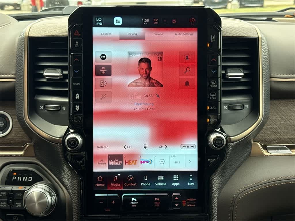 LIMITED LEVEL A EQUIPMENT GROUP Surround View Camera System, LED CHMSL Lamp, Tri-Fold Tonneau Cover, Traffic Sign Recognition, RamBox Cargo Management System, Hands-Free Active Driving Assist System, Head Up Display, Evasive Steer Assist, Drowsy Driver Detection, Exterior 115V AC Outlet, Intersection Collision Assist System, Smartphone As A Key Capable, 14.4 Touchscreen Display, Radio: Uconnect 5 Nav w/14.4 Display, 240 Amp Alternator, 12-Way/1-Way Trailer Connector, QUICK ORDER PACKAGE 22K LONGHORN Engine: 3.0L I6 Hurricane HO Twin Turbo ESS, Transmission: 8-Speed Automatic (8HP75), Grille Surround 4 Chrome Texture 5 Chrome, Warm Chrome Key Fob, Longhorn Instrument Cluster Theme 3, Premium Door Trim Panel, Longhorn Badge, TRANSMISSION: 8-SPEED AUTOMATIC (8HP75) (STD), ENGINE: 3.0L I6 HURRICANE HO TWIN TURBO ESS (STD), DUAL-PANE PANORAMIC SUNROOF LED Dome/Reading Lamp, Dome Dual LED Reading Lamp.