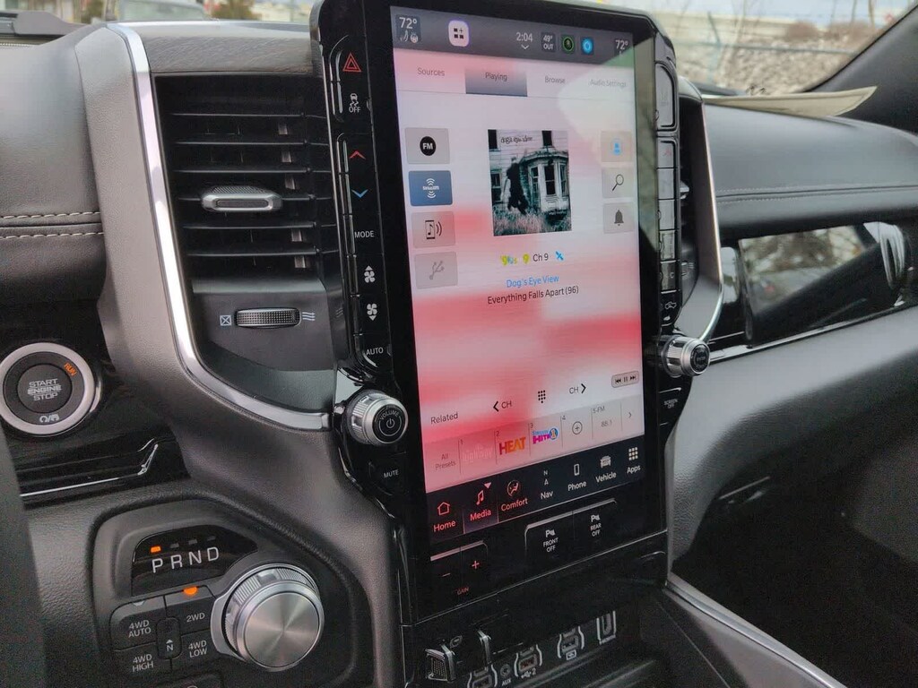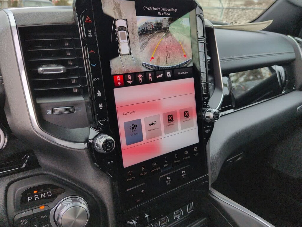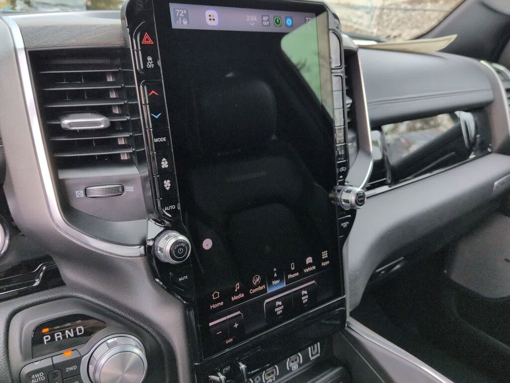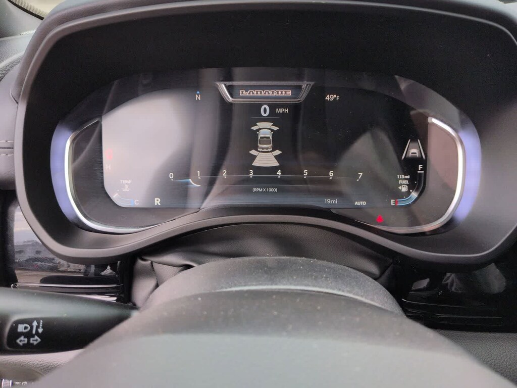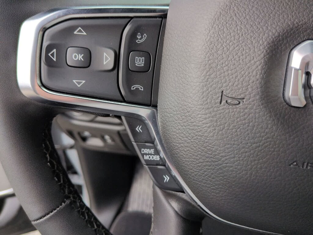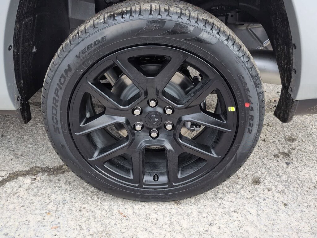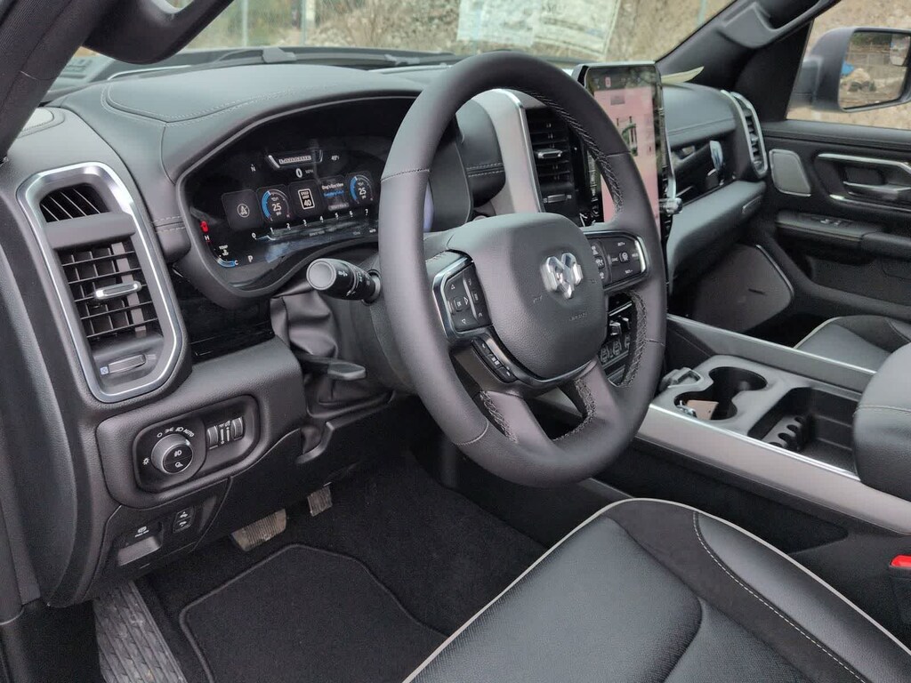 1500 Laramie is nicely equipped with Advanced Safety Group II (12-Way/1-Way Trailer Connector, Active Driving Assist System, Drowsy Driver Detection, Evasive Steer Assist, Exterior Mirrors Approach Lamps, Intersection Collision Assist System, Surround View Camera System, and Traffic Sign Recognition), Laramie Level 2 Equipment Group (14.4 Touchscreen Display, 4G LTE Wi-Fi Hot Spot, Cluster 12 TFT Color Display, Connected Travel and Traffic Services, Connectivity - US/Canada, Front Passenger Interactive Display, GPS Navigation, Harman/Kardon 19 Speaker Premium Sound, Integrated Center Stack Radio, Integrated Voice Command with Bluetooth, Power Tailgate, Radio: Uconnect 5 Nav with 14.4 Display, Rain Sensitive Windshield Wipers, SiriusXM Radio Service, SiriusXM with 360L, and USB Host Flip), Night Edition (Accent Color Door Handles, Accent Color Premium Power Mirrors, Accent Color Tailgate Handle, Anti-Spin Differential Rear Axle, Auto Power-Folding Mirrors, Auto-Dimming Exterior Driver Mirror, Black Exterior Truck Badging, Black Headlamp Bezels, Black Interior Accents, Black Painted Exterior Mirrors Caps, Black Tail Lamp Bezels, Body Color Front Bumper, Body Color Rear Bumper with Step Pads, Convex Wide-Angle Exterior Mirror Insert, Dual Exhaust with Black Tips, Exterior Mirrors Courtesy Lamps, Exterior Mirrors with Heating Element, Exterior Mirrors with Memory, Exterior Mirrors with Supplemental Signals, Grille Surround 3 Black Texture 2 Black, Pirelli Brand Tires, Proximity Approach/Departure Lamps, RAM Grille Badge - Black, Sport Performance Hood, and Wheels: 22 x 9 Forged Aluminum), Quick Order Package 21H Laramie, Technology Group (Heads-Up Display and LED CHMSL Lamp), 10 Speakers, 3.55 Rear Axle Ratio, 4-Wheel Disc Brakes, ABS brakes, Active Noise Control System, Adjustable pedals, Air Conditioning, Alloy wheels, AM/FM radio: SiriusXM with 360L, Apple CarPlay/Android Auto, Audio memory, Auto High-beam Headlights, Auto-dimming door mirrors, Auto-dimming Rear-View mirror, Automatic temperature control, Brake assist, Bumpers: chrome, Chrome Exterior Mirrors, Compass, Delay-off headlights, Dome Dual LED Reading Lamp, Driver door bin, Driver vanity mirror, Dual front impact airbags, Dual front side impact airbags, Dual-Pane Panoramic Sunroof, Electronic Stability Control, Front anti-roll bar, Front Bucket Seats, Front Center Armrest w/Storage, Front dual zone A/C, Front fog lights, Front reading lights, Front wheel independent suspension, Fully automatic headlights, Garage door transmitter, Heated door mirrors, Heated front seats, Heated rear seats, Heated steering wheel, Illuminated entry, Leather steering wheel, Leather Trimmed Bucket Seats, LED Dome/Reading Lamp, Low tire pressure warning, Memory seat, Navigation System, Occupant sensing airbag, Off-Road Information Pages, Outside temperature display, Overhead airbag, Overhead console, Panic alarm, ParkView Rear Back-Up Camera, Passenger door bin, Passenger vanity mirror, Pedal memory, Power Deployable Running Boards, Power door mirrors, Power driver seat, Power passenger seat, Power steering, Power windows, Radio data system, Radio: Uconnect 5 Navigation with 12.0 Display, RAM Grille Badge - Chrome, Rear anti-roll bar, Rear reading lights, Rear seat center armrest, Rear step bumper, Remote keyless entry, Security system, Speed control, Split folding rear seat, Steering