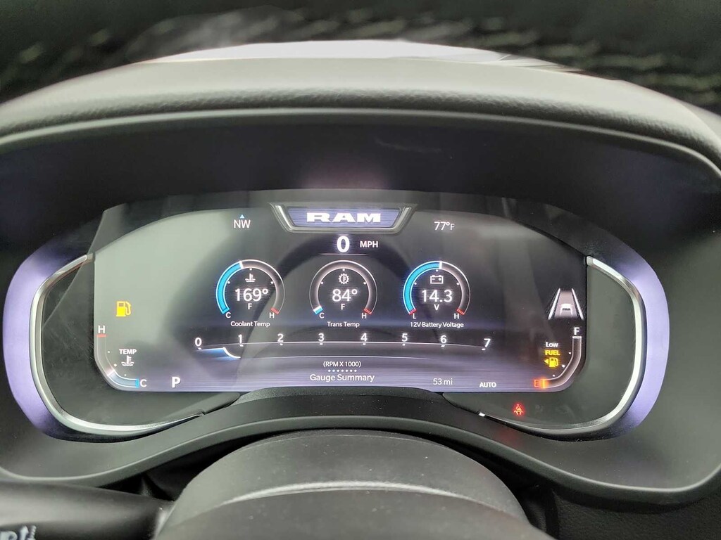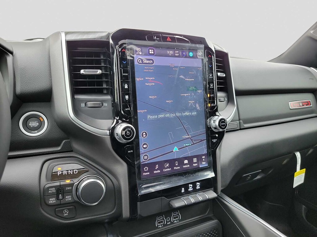 ENGINE: 5.7L V8 HEMI MDS VVT ETORQUE Active Noise Control System, Heavy Duty Engine Cooling, Passive Tuned Mass Damper, GVWR: 7,100 lbs, Dual Rear Exhaust w/Bright Tips, G/T Exhaust, 18 Aluminum Spare Wheel, BIG HORN LEVEL 2 EQUIPMENT GROUP SiriusXM Radio Service, Power Adjustable Pedals, Leather Wrapped Steering Wheel, 12 Touchscreen Display, Glove Box Lamp, Auto Power-Folding Mirrors, 115V Auxiliary Rear Power Outlet, Media Hub w/2 Charge Only USBs, Heated Front Seats, Security Alarm, Black Premium Power Mirrors, Premium Overhead Console, 9 Amplified Speakers w/Subwoofer, Disassociated Touchscreen Display, Body Color Fender Flares, Remote Tailgate Release, 115V Auxiliary Power Outlet, LED Dome Lamp w/On/Off Switch, Universal Garage Door Opener, 2nd Row In Floor Storage Bins, Sun Visors w/Illuminated Vanity Mirrors, LED Footwell Lighting, Rear Window Defroster, Rear View Auto Dim Mirror, Rear Power Sliding Window, GPS Navigation, Overhead LED Lamps, Wheels: 20 x 9 Aluminum Chrome Clad, DUAL-PANE PANORAMIC SUNROOF Dome Dual LED Reading Lamp, NIGHT EDITION Tires: 275/55R20 OWL All Season, Bridgestone Brand Tires, Accent Color Premium Power Mirrors, Exterior Mirrors w/Supplemental Signals, Black Headlamp Bezels, Exterior Mirrors Courtesy Lamps, Grille Black Surround Black Mesh, Auto Power-Folding Mirrors, Wheels: 20 x 9.0 Aluminum Painted Clad, Auto Dim Exterior Driver Mirror, Black Exterior Truck Badging, Anti-Spin Differential Rear Axle, Accent Color Door Handles, Accent Color Tailgate Handle, Black Interior Accents, Dual Exhaust w/Black Tips, Body Color Front Bumper, Body Color Rear Bumper w/Step Pads, Black Tail Lamp Bezels, RAM Grille Badge - Black, Black Painted Exterior Mirrors Caps, BED UTILITY GROUP MOPAR Spray In Bedliner, MOPAR 4 Adjustable Cargo Tie-Down Hooks, Pick-Up Box Lighting, Exterior 115V AC Outlet, TRI-FOLD TONNEAU COVER, TRANSMISSION: 8-SPEED AUTOMATIC (8HP75). Ram Big Horn with Granite Crystal Metallic Clearcoat exterior and Black interior features a 8 Cylinder Engine with 395 HP at 5600 RPM*.