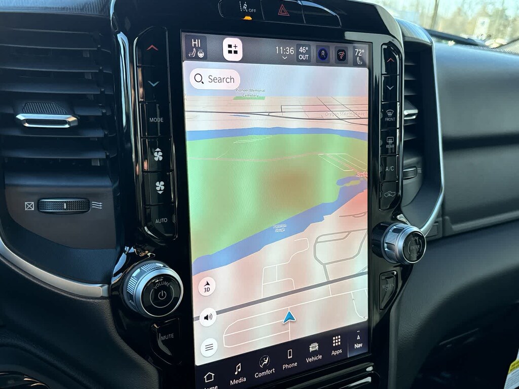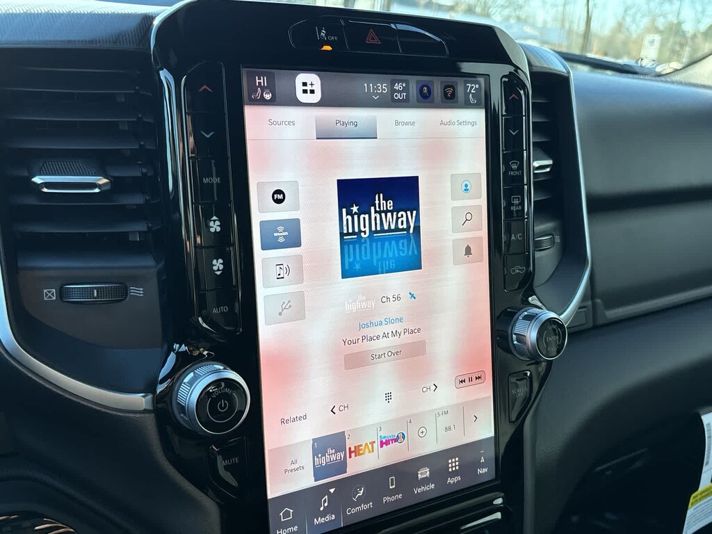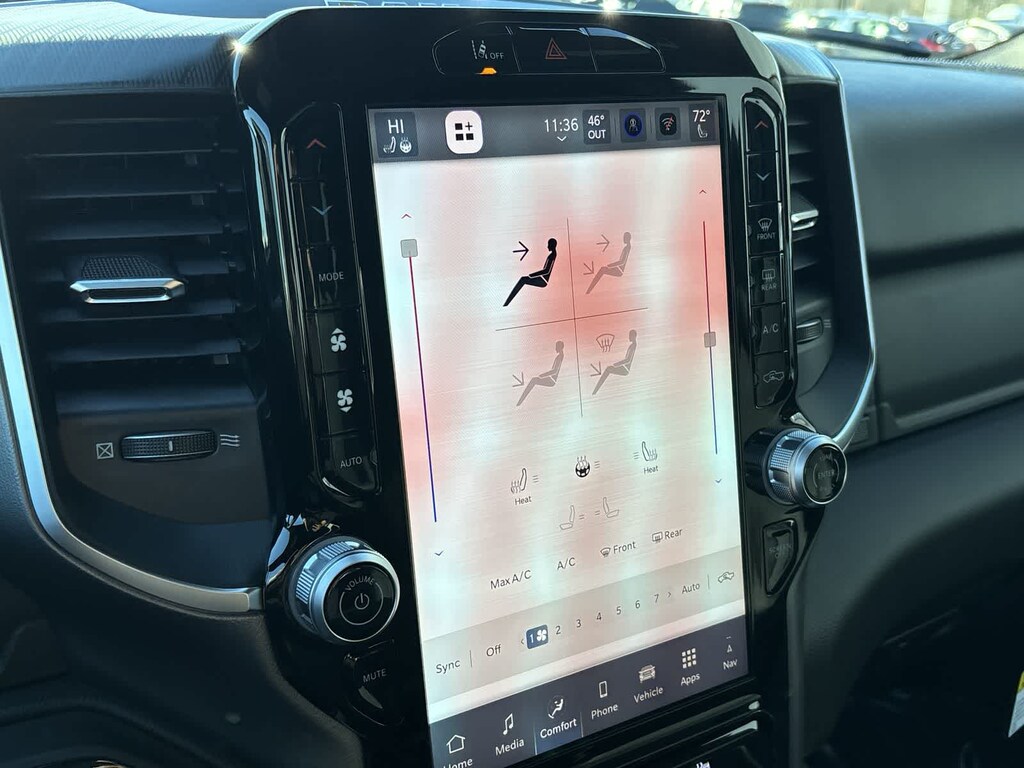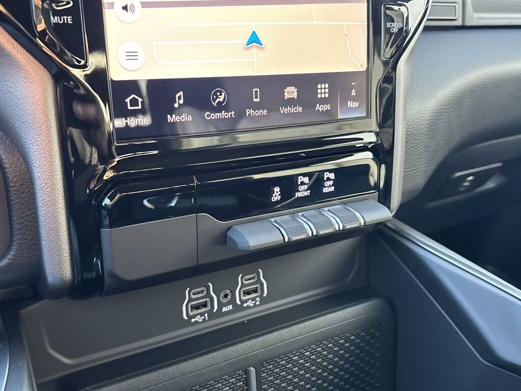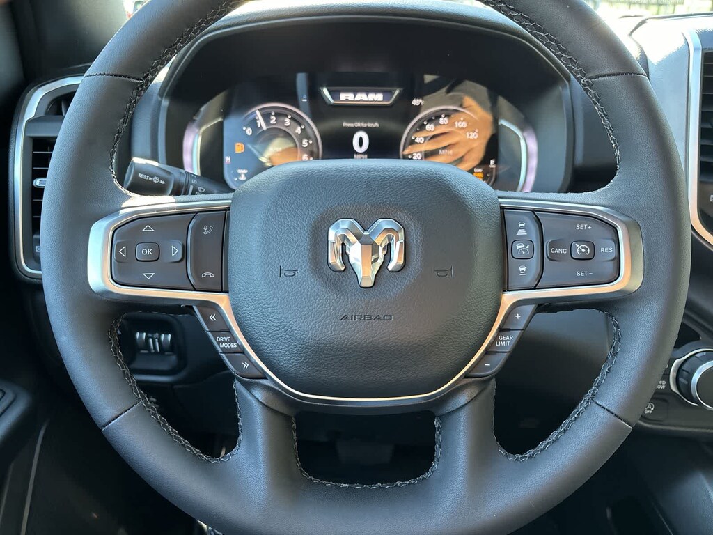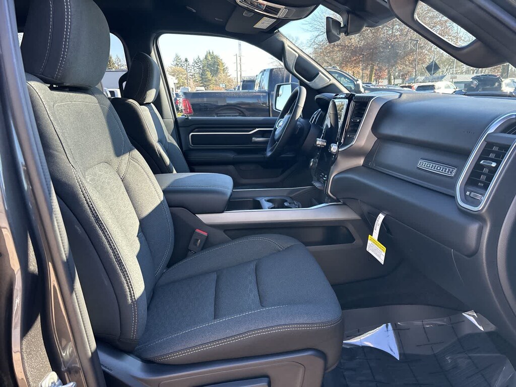 ENGINE: 5.7L V8 HEMI MDS VVT ETORQUE Active Noise Control System, Heavy Duty Engine Cooling, Passive Tuned Mass Damper, GVWR: 7,100 lbs, Dual Rear Exhaust w/Bright Tips, G/T Exhaust, 18 Aluminum Spare Wheel, BIG HORN LEVEL 2 EQUIPMENT GROUP SiriusXM Radio Service, Power Adjustable Pedals, Leather Wrapped Steering Wheel, 12 Touchscreen Display, Glove Box Lamp, Auto Power-Folding Mirrors, 115V Auxiliary Rear Power Outlet, Media Hub w/2 Charge Only USBs, Heated Front Seats, Security Alarm, Black Premium Power Mirrors, Premium Overhead Console, 9 Amplified Speakers w/Subwoofer, Disassociated Touchscreen Display, Body Color Fender Flares, Remote Tailgate Release, 115V Auxiliary Power Outlet, LED Dome Lamp w/On/Off Switch, Universal Garage Door Opener, 2nd Row In Floor Storage Bins, Sun Visors w/Illuminated Vanity Mirrors, LED Footwell Lighting, Rear Window Defroster, Rear View Auto Dim Mirror, Rear Power Sliding Window, GPS Navigation, Overhead LED Lamps, Wheels: 20 x 9 Aluminum Chrome Clad, NIGHT EDITION Tires: 275/55R20 OWL All Season, Bridgestone Brand Tires, Accent Color Premium Power Mirrors, Exterior Mirrors w/Supplemental Signals, Black Headlamp Bezels, Exterior Mirrors Courtesy Lamps, Grille Black Surround Black Mesh, Auto Power-Folding Mirrors, Wheels: 20 x 9.0 Aluminum Painted Clad, Auto Dim Exterior Driver Mirror, Black Exterior Truck Badging, Anti-Spin Differential Rear Axle, Accent Color Door Handles, Accent Color Tailgate Handle, Black Interior Accents, Dual Exhaust w/Black Tips, Body Color Front Bumper, Body Color Rear Bumper w/Step Pads, Black Tail Lamp Bezels, RAM Grille Badge - Black, Black Painted Exterior Mirrors Caps, PROTECTION GROUP Transfer Case Skid Plate, Steering Gear Skid Plate, Fuel Tank Skid Plate, Tow Hooks, MOPAR FRONT & REAR RUBBER FLOOR MATS, TRANSMISSION: 8-SPEED AUTOMATIC (8HP75). Ram Big Horn with Granite Crystal Metallic Clearcoat exterior and Black interior features a 8 Cylinder Engine with 395 HP at 5600 RPM*.