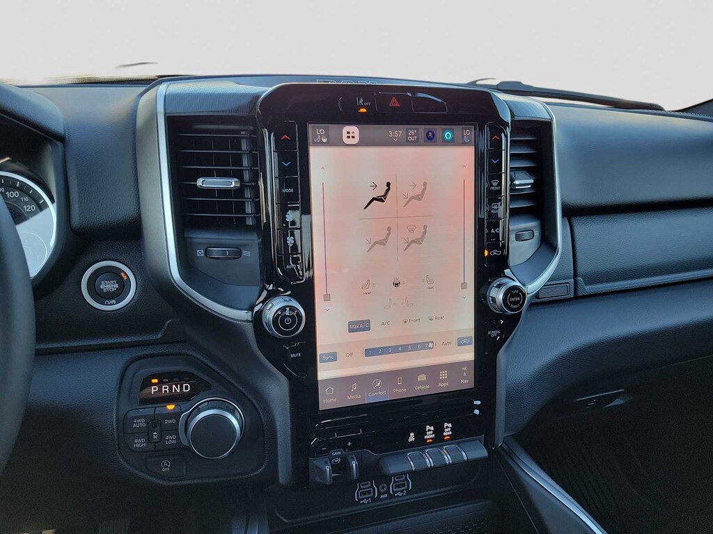 ENGINE: 5.7L V8 HEMI MDS VVT ETORQUE Active Noise Control System, Heavy Duty Engine Cooling, Passive Tuned Mass Damper, GVWR: 7,100 lbs, Dual Rear Exhaust w/Bright Tips, G/T Exhaust, 18 Aluminum Spare Wheel, BIG HORN LEVEL 2 EQUIPMENT GROUP SiriusXM Radio Service, Power Adjustable Pedals, Leather Wrapped Steering Wheel, 12 Touchscreen Display, Glove Box Lamp, Auto Power-Folding Mirrors, 115V Auxiliary Rear Power Outlet, Media Hub w/2 Charge Only USBs, Heated Front Seats, Security Alarm, Black Premium Power Mirrors, Premium Overhead Console, 9 Amplified Speakers w/Subwoofer, Disassociated Touchscreen Display, Body Color Fender Flares, Remote Tailgate Release, 115V Auxiliary Power Outlet, LED Dome Lamp w/On/Off Switch, Universal Garage Door Opener, 2nd Row In Floor Storage Bins, Sun Visors w/Illuminated Vanity Mirrors, LED Footwell Lighting, Rear Window Defroster, Rear View Auto Dim Mirror, Rear Power Sliding Window, GPS Navigation, Overhead LED Lamps, Wheels: 20 x 9 Aluminum Chrome Clad, NIGHT EDITION Tires: 275/55R20 OWL All Season, Bridgestone Brand Tires, Accent Color Premium Power Mirrors, Exterior Mirrors w/Supplemental Signals, Black Headlamp Bezels, Exterior Mirrors Courtesy Lamps, Grille Black Surround Black Mesh, Auto Power-Folding Mirrors, Wheels: 20 x 9.0 Aluminum Painted Clad, Auto Dim Exterior Driver Mirror, Black Exterior Truck Badging, Anti-Spin Differential Rear Axle, Accent Color Door Handles, Accent Color Tailgate Handle, Black Interior Accents, Dual Exhaust w/Black Tips, Body Color Front Bumper, Body Color Rear Bumper w/Step Pads, Black Tail Lamp Bezels, RAM Grille Badge - Black, Black Painted Exterior Mirrors Caps, SURROUND VIEW CAMERA SYSTEM 12-Way/1-Way Trailer Connector, MOPAR FRONT & REAR RUBBER FLOOR MATS, TRANSMISSION: 8-SPEED AUTOMATIC (8HP75). Ram Lone Star with Hydro Blue Pearlcoat exterior and Black interior features a 8 Cylinder Engine with 395 HP at 5600 RPM*.