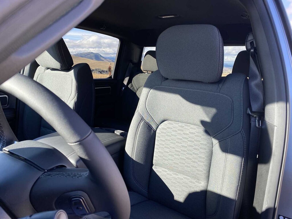 BIG HORN LEVEL 2 EQUIPMENT GROUP SiriusXM Radio Service, Power Adjustable Pedals, Leather Wrapped Steering Wheel, 12 Touchscreen Display, Glove Box Lamp, Auto Power-Folding Mirrors, 115V Auxiliary Rear Power Outlet, Media Hub w/2 Charge Only USBs, Heated Front Seats, Security Alarm, Black Premium Power Mirrors, Premium Overhead Console, 9 Amplified Speakers w/Subwoofer, Disassociated Touchscreen Display, Body Color Fender Flares, Remote Tailgate Release, 115V Auxiliary Power Outlet, LED Dome Lamp w/On/Off Switch, Universal Garage Door Opener, 2nd Row In Floor Storage Bins, Sun Visors w/Illuminated Vanity Mirrors, LED Footwell Lighting, Rear Window Defroster, Rear View Auto Dim Mirror, Rear Power Sliding Window, GPS Navigation, Overhead LED Lamps, Wheels: 20 x 9 Aluminum Chrome Clad, MOPAR FRONT & REAR RUBBER FLOOR MATS, TRANSMISSION: 8-SPEED AUTOMATIC (8HP75) (STD), ENGINE: 3.0L I6 HURRICANE SO TWIN TURBO ESS (STD). Ram Big Horn with Billet Silver Metallic Clearcoat exterior and Black interior features a Straight 6 Cylinder Engine with 420 HP at 5200 RPM*.