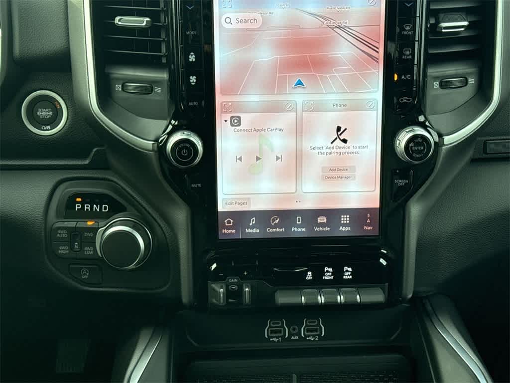 BIG HORN LEVEL 2 EQUIPMENT GROUP SiriusXM Radio Service, Power Adjustable Pedals, Leather Wrapped Steering Wheel, 12 Touchscreen Display, Glove Box Lamp, Auto Power-Folding Mirrors, 115V Auxiliary Rear Power Outlet, Media Hub w/2 Charge Only USBs, Heated Front Seats, Security Alarm, Black Premium Power Mirrors, Premium Overhead Console, 9 Amplified Speakers w/Subwoofer, Disassociated Touchscreen Display, Body Color Fender Flares, Remote Tailgate Release, 115V Auxiliary Power Outlet, LED Dome Lamp w/On/Off Switch, Universal Garage Door Opener, 2nd Row In Floor Storage Bins, Sun Visors w/Illuminated Vanity Mirrors, LED Footwell Lighting, Rear Window Defroster, Rear View Auto Dim Mirror, Rear Power Sliding Window, GPS Navigation, Overhead LED Lamps, Wheels: 20 x 9 Aluminum Chrome Clad, ENGINE: 3.0L I6 HURRICANE SO TWIN TURBO ESS Aux Battery, 700 Amp Maintenance Free Battery, Active Noise Control System, GVWR: 7,100 lbs, 3.55 Rear Axle Ratio, Dual Rear Exhaust w/Bright Tips, Start-Stop Dual Battery System, 230 Amp Alternator, NIGHT EDITION Tires: 275/55R20 OWL All Season, Bridgestone Brand Tires, Accent Color Premium Power Mirrors, Exterior Mirrors w/Supplemental Signals, Black Headlamp Bezels, Exterior Mirrors Courtesy Lamps, Grille Black Surround Black Mesh, Auto Power-Folding Mirrors, Wheels: 20 x 9.0 Aluminum Painted Clad, Auto Dim Exterior Driver Mirror, Black Exterior Truck Badging, Anti-Spin Differential Rear Axle, Accent Color Door Handles, Accent Color Tailgate Handle, Black Interior Accents, Dual Exhaust w/Black Tips, Body Color Front Bumper, Body Color Rear Bumper w/Step Pads, Black Tail Lamp Bezels, RAM Grille Badge - Black, Black Painted Exterior Mirrors Caps, MOPAR BLACK TUBULAR SIDE STEPS, TRANSMISSION: 8-SPEED AUTOMATIC (8HP75).
