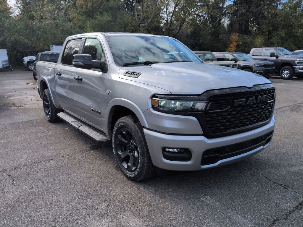 1500 Big Horn/Lone Star is nicely equipped with Bed Utility Group (Exterior 115V AC Outlet, MOPAR 4 Adjustable Cargo Tie-Down Hooks, MOPAR Spray In Bedliner, and Pick-Up Box Lighting), Big Horn Level 2 Equipment Group (115V Auxiliary Power Outlet, 115V Auxiliary Rear Power Outlet, 12 Touchscreen Display, 2nd Row In Floor Storage Bins, 3 Rear Seat Head Restraints, 4 Way Front Headrests, 400W Inverter, 4G LTE Wi-Fi Hot Spot, 9 Amplified Speakers w/Subwoofer, Air Conditioning ATC w/Dual Zone Control, Apple CarPlay, Auto Power-Folding Mirrors, Auto-Dimming Exterior Driver Mirror, Auto-Dimming Rear-View Mirror, Black Exterior Mirrors, Black Premium Power Mirrors, Body Color Fender Flares, Bucket Seats, Center Console Parts Module, Cluster 7.0 TFT Color Display, Configurable Drive Mode, Connected Travel & Traffic Services, Connectivity - US/Canada, Convex Wide-Angle Exterior Mirror Insert, Deluxe Cloth Bucket Seats, Disassociated Touchscreen Display, Exterior Mirrors Courtesy Lamps, Exterior Mirrors w/Heating Element, Exterior Mirrors w/Supplemental Signals, Front Seat Back Map Pockets, Full Length Floor Console, Global Telematics Box Module (TBM), Glove Box Lamp, Google Android Auto, GPS Antenna Input, GPS Navigation, HD Radio, Heated Front Seats, Heated Steering Wheel, Integrated Center Stack Radio, Integrated Voice Command w/Bluetooth, Leather Wrapped Steering Wheel, LED Dome Lamp w/On/Off Switch, LED Footwell Lighting, Manual Adjust 4-Way Front Passenger Seat, Media Hub w/2 Charge Only USBs, Overhead LED Lamps, Power 2-Way Driver Lumbar Adjust, Power Adjust 8-Way Driver Seat, Power Adjustable Pedals, Premium Overhead Console, Radio: Uconnect 5 Nav w/12.0 Display, Rear 60/40 Folding Seat, Rear Center Armrest, Rear Power Sliding Window, Rear Window Defroster, Remote Tailgate Release, Security Alarm, SiriusXM Radio Service, SiriusXM w/360L, Steering Wheel Mounted Audio Controls, Sun Visors w/Illuminated Vanity Mirrors, Universal Garage Door Opener, USB Host Flip, and Wheels: 20 x 9 Aluminum Chrome Clad (WRK)), Night Edition (Accent Color Door Handles, Accent Color Premium Power Mirrors, Accent Color Tailgate Handle, Anti-Spin Differential Rear Axle, Black Exterior Truck Badging, Black Headlamp Bezels, Black Interior Accents, Black Painted Exterior Mirrors Caps, Black Tail Lamp Bezels, Body Color Front Bumper, Body Color Rear Bumper w/Step Pads, Dual Exhaust w/Black Tips, Grille Black Surround Black Mesh, RAM Grille Badge - Black, and Wheels: 20 x 9.0 Aluminum Painted Clad), Quick Order Package 27Z Big Horn, 33 Gallon Fuel Tank, 4-Wheel Disc Brakes, 48V Belt Starter Generator, 6 Speakers, ABS brakes, Air Conditioning, Alloy wheels, AM/FM radio, Apple CarPlay/Android Auto, Auto High-beam Headlights, Brake assist, Bumpers: chrome, Cloth Bucket Seats, Cluster 12 TFT Color Display, Compass, Delay-off headlights, Driver door bin, Dual front impact airbags, Dual front side impact airbags, Electronic Stability Control, Front anti-roll bar, Front Bucket Seats, Front Center Armrest w/Storage, Front fog lights, Front reading lights, Front wheel independent suspension, Fully automatic headlights, Heated door mirrors, Illuminated entry, Low tire pressure warning, Manual Adjust 4-Way Driver Seat, Manual Folding Exterior Mirrors, Mopar Black Tubular Side Steps, MOPAR Front & Rear Rubber Floor Mats, Occupant sensing airbag, Outside te