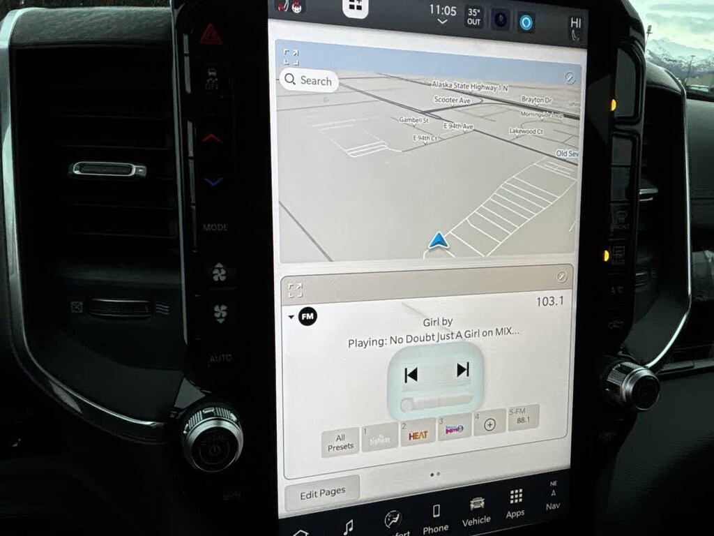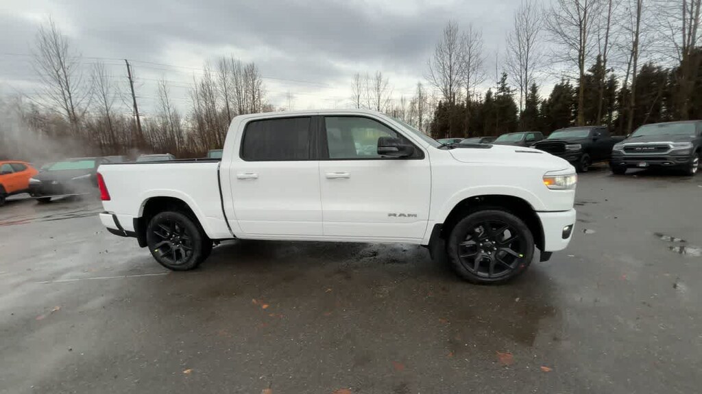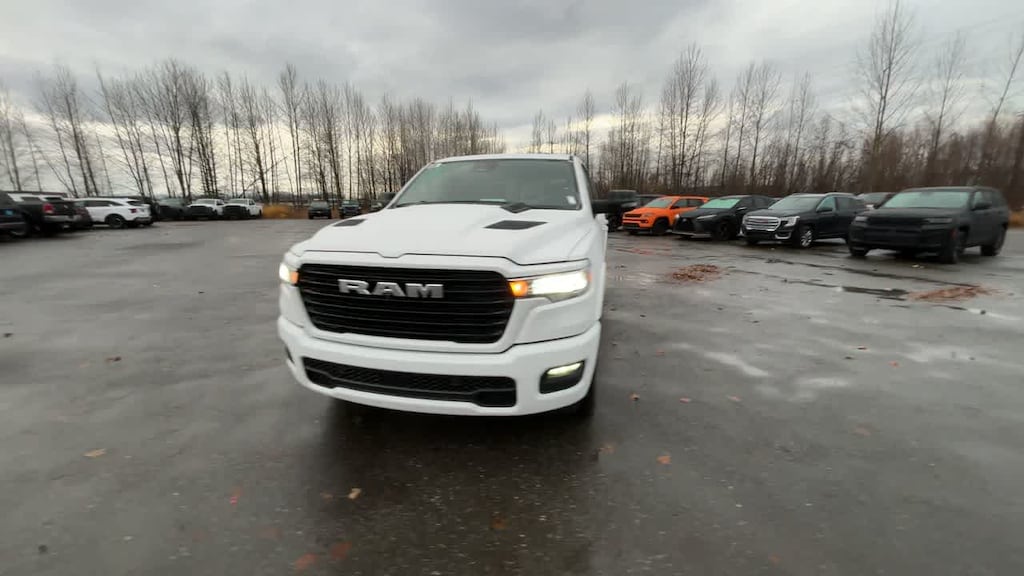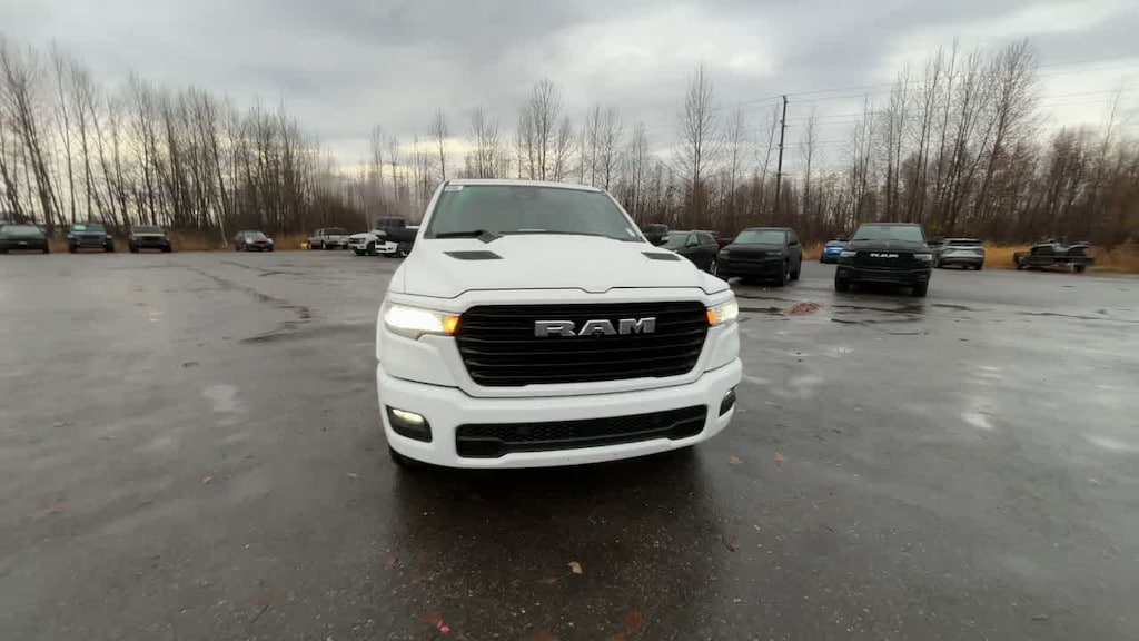 ADVANCED SAFETY GROUP II Exterior Mirrors Approach Lamps, Active Driving Assist System, Surround View Camera System, Evasive Steer Assist, Drowsy Driver Detection, Intersection Collision Assist System, Traffic Sign Recognition, 12-Way/1-Way Trailer Connector, LARAMIE LEVEL 2 EQUIPMENT GROUP Rain Sensitive Windshield Wipers, Front Passenger Interactive Display, Secondary Active Grille Shutters, Smartphone As A Key Capable, 14.4 Touchscreen Display, Dual Wireless Charging Pad, Radio: Uconnect 5 Nav w/14.4 Display, harman/kardon® 19 Speaker Premium Sound, Cluster 12 TFT Color Display, Power Tailgate, SPORT APPEARANCE PACKAGE Tires: 275/55R20 OWL All Season, Accent Color Premium Power Mirrors, Sport Performance Hood, Black Interior Accents, Body Color Front Bumper, Body Color Rear Bumper w/Step Pads, Bridgestone Brand Tires, Grille Surround 3 Body Color Tex 2 Black, Black Painted Exterior Mirrors Caps, WHEELS: 22 X 9 FORGED ALUMINUM Tires: 285/45R22XL BSW All Season, Pirelli Brand Tires, TECHNOLOGY GROUP Head Up Display, LED CHMSL Lamp, 12-Way/1-Way Trailer Connector, BED UTILITY GROUP MOPAR Spray In Bedliner, MOPAR 4 Adjustable Cargo Tie-Down Hooks, Exterior 115V AC Outlet, E-LOCKER REAR AXLE, MOPAR FRONT & REAR RUBBER FLOOR MATS, TRANSMISSION: 8-SPEED AUTOMATIC (8HP75) (STD), ENGINE: 3.0L I6 HURRICANE SO TWIN TURBO ESS (STD), DUAL-PANE PANORAMIC SUNROOF LED Dome/Reading Lamp, Dome Dual LED Reading Lamp. Ram Laramie with Bright White Clearcoat exterior and Black interior features a Straight 6 Cylinder Engine with 420 HP at 5200 RPM*.