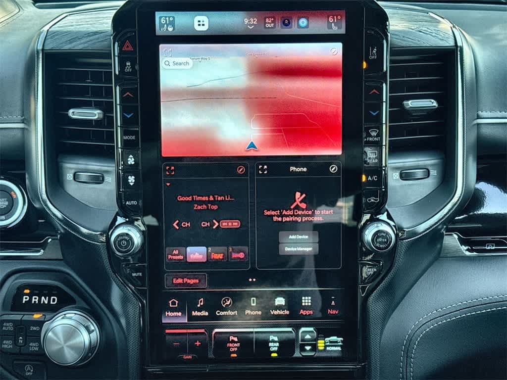 LIMITED LEVEL A EQUIPMENT GROUP Surround View Camera System, LED CHMSL Lamp, Tri-Fold Tonneau Cover, Traffic Sign Recognition, RamBox Cargo Management System, Hands-Free Active Driving Assist System, Head Up Display, Evasive Steer Assist, Drowsy Driver Detection, Exterior 115V AC Outlet, Intersection Collision Assist System, Smartphone As A Key Capable, 14.4 Touchscreen Display, Radio: Uconnect 5 Nav w/14.4 Display, 240 Amp Alternator, 12-Way/1-Way Trailer Connector, NIGHT EDITION Tires: 285/45R22XL BSW All Season, Black Headlamp Bezels, Wheels: 22 x 9 Premium Black Aluminum, Pirelli Brand Tires, Accent Color Door Handles, Body Color Front Bumper, Body Color Rear Bumper w/Step Pads, RAM Grille Badge - Black, Black Painted Exterior Mirrors Caps, Accent Color Premium Power Mirrors, Sport Performance Hood, Black Exterior Truck Badging, Black Day Light Opening Moldings, Accent Color Tailgate Handle, Dual Exhaust w/Black Tips, Black Grille Surround Texture 7 Black, Black Tail Lamp Bezels, TRANSMISSION: 8-SPEED AUTOMATIC (8HP75) (STD), ENGINE: 3.0L I6 HURRICANE HO TWIN TURBO ESS (STD), DUAL-PANE PANORAMIC SUNROOF LED Dome/Reading Lamp, Dome Dual LED Reading Lamp.