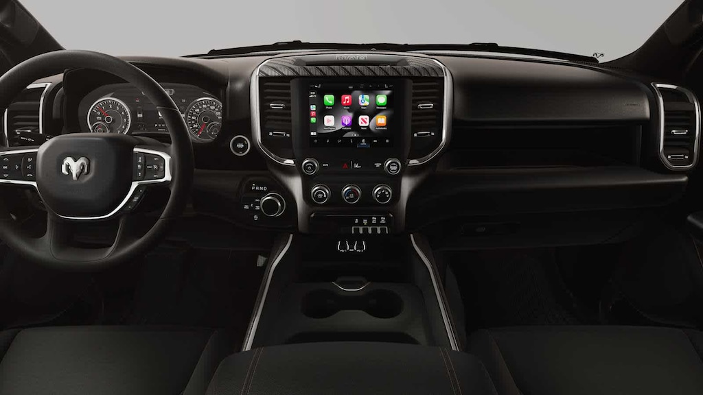 Our Tradesman cabin is designed for comfort and convenience, helping you work smarter, not harder. Highlights include supportive heavy-duty seats, a tilt/telescoping steering wheel, air conditioning with rear-seat climate ducts, power accessories, keyless access/ignition, a 3.5-inch driver display, remote start, and a high-tech, high-function infotainment system. It boasts an 8.4-inch touchscreen, Apple CarPlay, Android Auto, Bluetooth, voice control, and a six-speaker sound system.