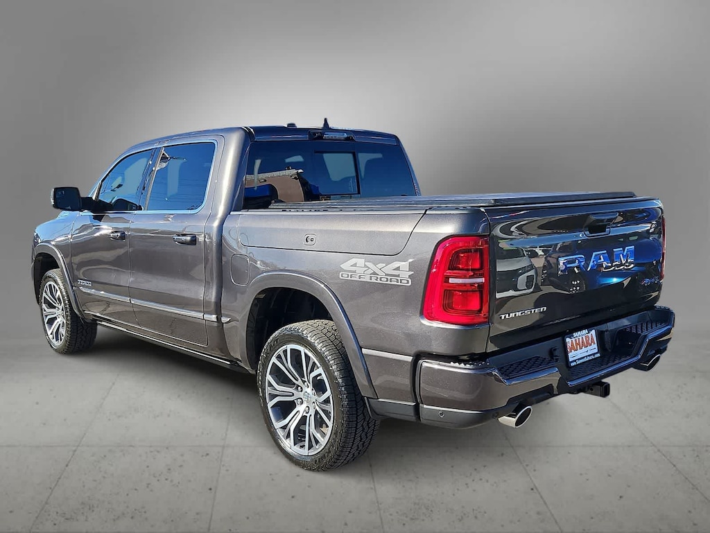 Blending bold style with serious muscle, our 2026 RAM 1500 Tungsten Crew Cab 4X4 with the Off-Road Package in Granite Crystal Metallic raises the bar for strength and capability. Powered by a Twin-TurboCharged 3.0 Liter High Output Hurricane 6 Cylinder providing 540hp to an 8 Speed Automatic transmission. This Four Wheel Drive truck commands tough terrain and smooth pavement alike with a sophisticated suspension, and it returns nearly 21mpg on the highway. Our ultra-premium RAM radiates excellence with the Off-Road Packs skid plates, extra-heavy-duty shock absorbers, electronic locking rear axle, raised ride height, dual-pane sunroof, LED lighting, Mopar chrome molding, a Mopar spray-on bedliner, RamBox storage, a power tailgate, power running boards, and 20-inch wheels.