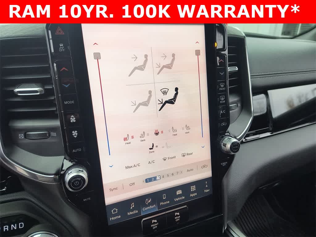 Leather Seats, 4x4, Heated Driver Seat, Heated Rear Seat, Cooled Driver Seat. Ram Laramie with Granite Crystal Metallic Clearcoat exterior and Black interior features a 8 Cylinder Engine with 395 HP at 5600 RPM*.
