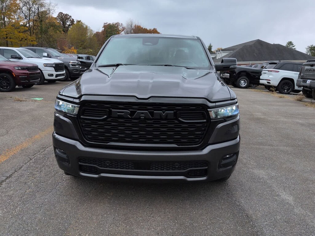1500 Big Horn/Lone Star is nicely equipped with Bed Utility Group (Exterior 115V AC Outlet, MOPAR 4 Adjustable Cargo Tie-Down Hooks, MOPAR Spray In Bedliner, and Pick-Up Box Lighting), Big Horn Level 2 Equipment Group (115V Auxiliary Power Outlet, 115V Auxiliary Rear Power Outlet, 12 Touchscreen Display, 2nd Row In Floor Storage Bins, 3 Rear Seat Head Restraints, 4 Way Front Headrests, 400W Inverter, 4G LTE Wi-Fi Hot Spot, 9 Amplified Speakers w/Subwoofer, Air Conditioning ATC w/Dual Zone Control, Apple CarPlay, Auto Power-Folding Mirrors, Auto-Dimming Exterior Driver Mirror, Auto-Dimming Rear-View Mirror, Black Exterior Mirrors, Black Premium Power Mirrors, Body Color Fender Flares, Bucket Seats, Center Console Parts Module, Cluster 7.0 TFT Color Display, Configurable Drive Mode, Connected Travel & Traffic Services, Connectivity - US/Canada, Convex Wide-Angle Exterior Mirror Insert, Deluxe Cloth Bucket Seats, Disassociated Touchscreen Display, Exterior Mirrors Courtesy Lamps, Exterior Mirrors w/Heating Element, Exterior Mirrors w/Supplemental Signals, Front Seat Back Map Pockets, Full Length Floor Console, Global Telematics Box Module (TBM), Glove Box Lamp, Google Android Auto, GPS Antenna Input, GPS Navigation, HD Radio, Heated Front Seats, Heated Steering Wheel, Integrated Center Stack Radio, Integrated Voice Command w/Bluetooth, Leather Wrapped Steering Wheel, LED Dome Lamp w/On/Off Switch, LED Footwell Lighting, Manual Adjust 4-Way Front Passenger Seat, Media Hub w/2 Charge Only USBs, Overhead LED Lamps, Power 2-Way Driver Lumbar Adjust, Power Adjust 8-Way Driver Seat, Power Adjustable Pedals, Premium Overhead Console, Radio: Uconnect 5 Nav w/12.0 Display, Rear 60/40 Folding Seat, Rear Center Armrest, Rear Power Sliding Window, Rear Window Defroster, Remote Tailgate Release, Security Alarm, SiriusXM Radio Service, SiriusXM w/360L, Steering Wheel Mounted Audio Controls, Sun Visors w/Illuminated Vanity Mirrors, Universal Garage Door Opener, USB Host Flip, and Wheels: 20 x 9 Aluminum Chrome Clad (WRK)), Night Edition (Accent Color Door Handles, Accent Color Premium Power Mirrors, Accent Color Tailgate Handle, Anti-Spin Differential Rear Axle, Black Exterior Truck Badging, Black Headlamp Bezels, Black Interior Accents, Black Painted Exterior Mirrors Caps, Black Tail Lamp Bezels, Body Color Front Bumper, Body Color Rear Bumper w/Step Pads, Dual Exhaust w/Black Tips, Grille Black Surround Black Mesh, RAM Grille Badge - Black, and Wheels: 20 x 9.0 Aluminum Painted Clad), Quick Order Package 27Z Big Horn, 33 Gallon Fuel Tank, 4-Wheel Disc Brakes, 48V Belt Starter Generator, 6 Speakers, ABS brakes, Air Conditioning, Alloy wheels, AM/FM radio, Apple CarPlay/Android Auto, Auto High-beam Headlights, Brake assist, Bumpers: chrome, Cloth Bucket Seats, Cluster 12 TFT Color Display, Compass, Delay-off headlights, Driver door bin, Dual front impact airbags, Dual front side impact airbags, Electronic Stability Control, Front anti-roll bar, Front Bucket Seats, Front Center Armrest w/Storage, Front fog lights, Front reading lights, Front wheel independent suspension, Fully automatic headlights, Heated door mirrors, Illuminated entry, Low tire pressure warning, Manual Adjust 4-Way Driver Seat, Manual Folding Exterior Mirrors, Mopar Black Tubular Side Steps, MOPAR Front & Rear Rubber Floor Mats, Occupant sensing airbag, Outside