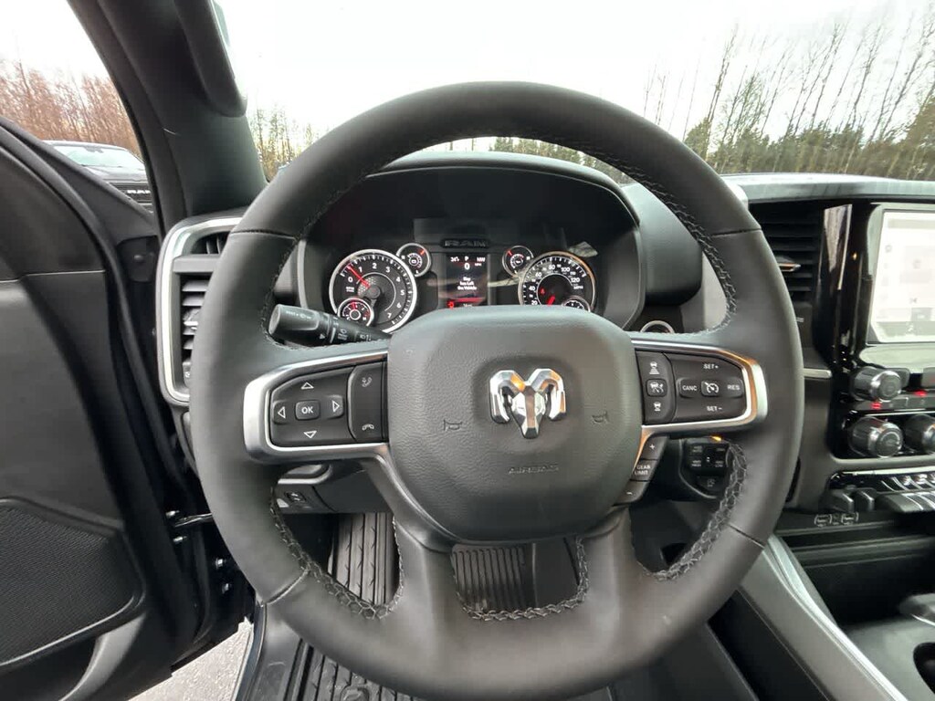 BIG HORN LEVEL 1 EQUIPMENT GROUP SiriusXM Radio Service, Rear Window Defroster, Rear View Auto Dim Mirror, Power Adjustable Pedals, Leather Wrapped Steering Wheel, Rear Power Sliding Window, Rear Dome w/On/Off Switch Lamp, Glove Box Lamp, Auto Power-Folding Mirrors, Auto Dim Exterior Driver Mirror, Heated Front Seats, Heated Steering Wheel, Black Premium Power Mirrors, SiriusXM Satellite Radio, 400W Inverter, Secondary Active Grille Shutters, Exterior Mirrors w/Supplemental Signals, Steering Wheel Mounted Audio Controls, Exterior Mirrors Courtesy Lamps, Body Color Fender Flares, 115V Auxiliary Power Outlet, Universal Garage Door Opener, 2nd Row In Floor Storage Bins, Sun Visors w/Illuminated Vanity Mirrors, WHEELS: 20 X 9 ALUMINUM CHROME CLAD (WRK) Tires: 275/55R20 OWL All Season, Bridgestone Brand Tires, OFF ROAD GROUP Front Extra HD Shock Absorbers, Off Road Decals, Rear Extra HD Shock Absorbers, Steering Gear Skid Plate, Tow Hooks, E-Locker Rear Axle, Transfer Case Skid Plate, Fuel Tank Skid Plate, Raised Ride Height, Selec-Speed Control, BED UTILITY GROUP MOPAR Spray In Bedliner, MOPAR 4 Adjustable Cargo Tie-Down Hooks, Pick-Up Box Lighting, Exterior 115V AC Outlet, 9 AMPLIFIED SPEAKERS W/SUBWOOFER, MOPAR FRONT & REAR RUBBER FLOOR MATS, TRANSMISSION: 8-SPEED AUTOMATIC (8HP75), ENGINE: 5.7L V8 HEMI MDS VVT ETORQUE Active Noise Control System, Heavy Duty Engine Cooling, Passive Tuned Mass Damper, GVWR: 7,100 lbs, Dual Rear Exhaust w/Bright Tips, G/T Exhaust, 18 Aluminum Spare Wheel, 33 Gallon Fuel Tank. Ram Big Horn with Forged Blue Metallic exterior and Black interior features a 8 Cylinder Engine with 305 HP at 6400 RPM*.