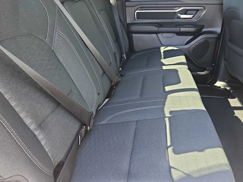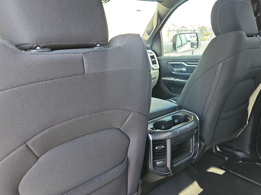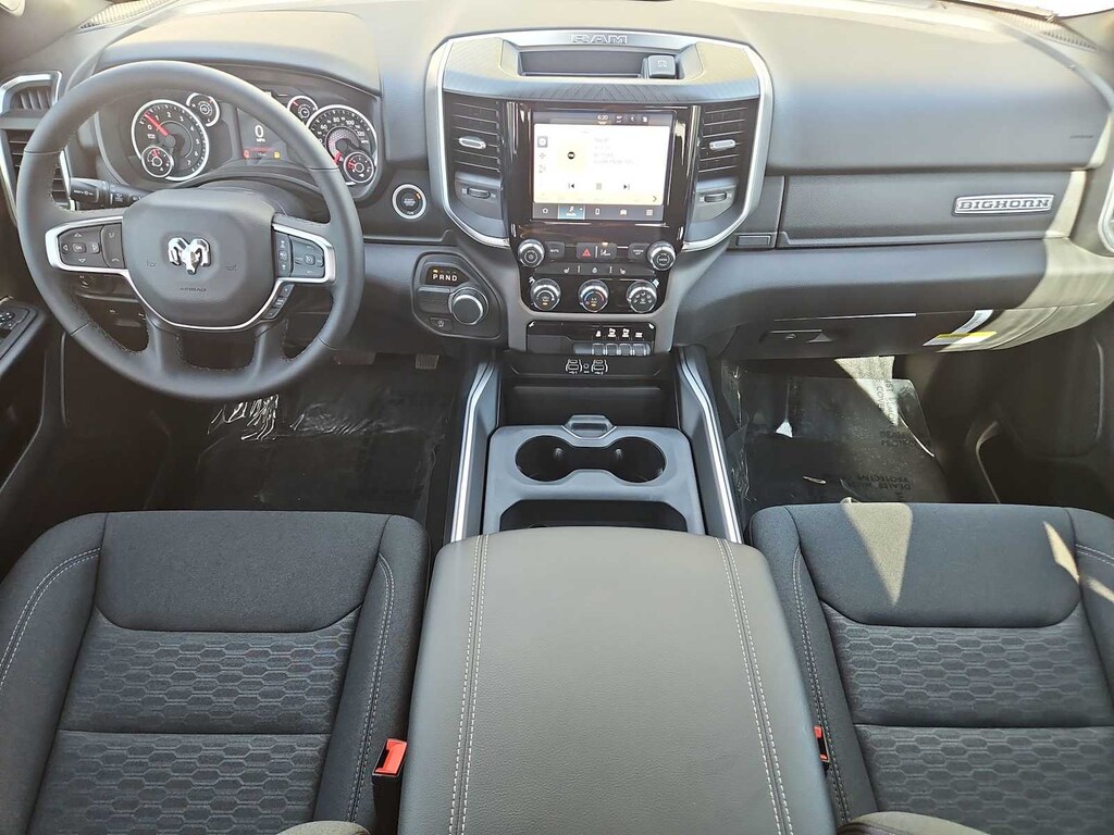 Many rewarding details are standard in our Big Horn cabin, starting with our Level 1 Equipment Packages universal garage door opener, power adjustable pedals, power sliding rear window, comfortable heated cloth seats, a heated leather-wrapped steering wheel, air conditioning, a RAM Clean-Air System, keyless access, push-button ignition, cruise control, door-sill scuff plates, and clever cargo space. The 8.4-inch touchscreen features voice control, Bluetooth, and a six-speaker sound system for intelligent infotainment.