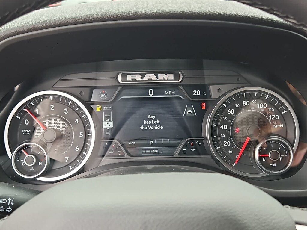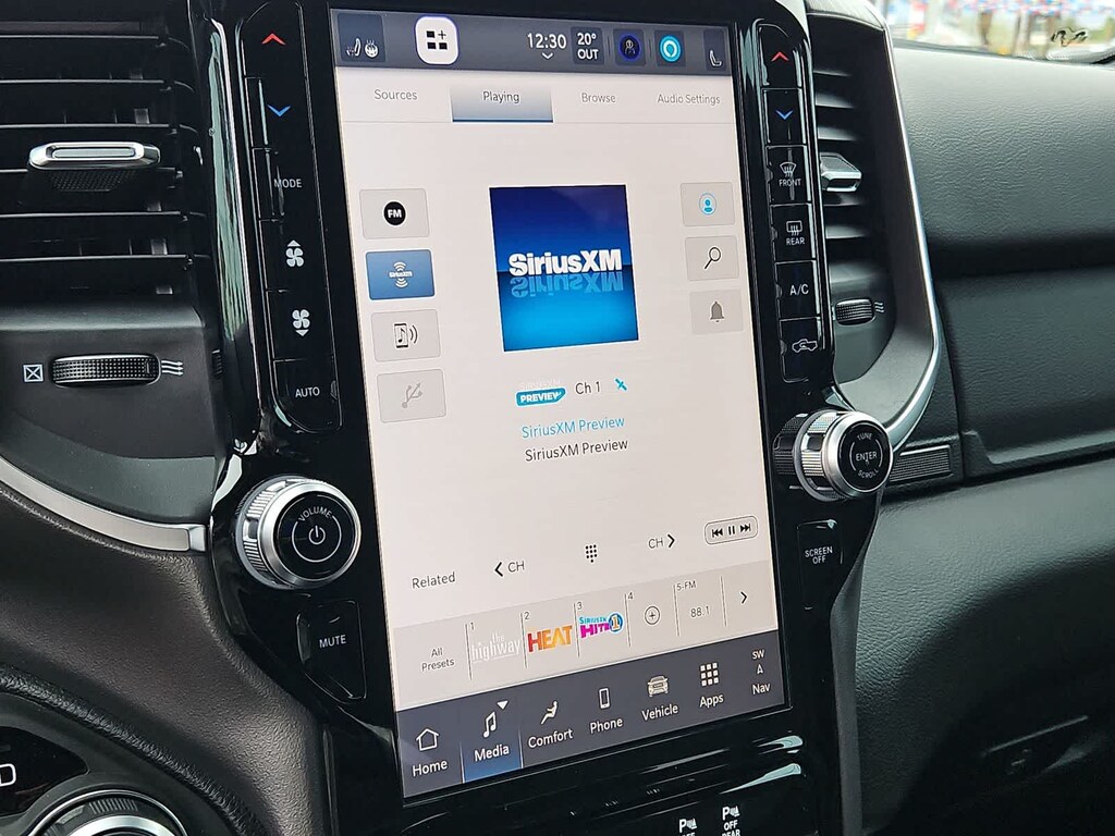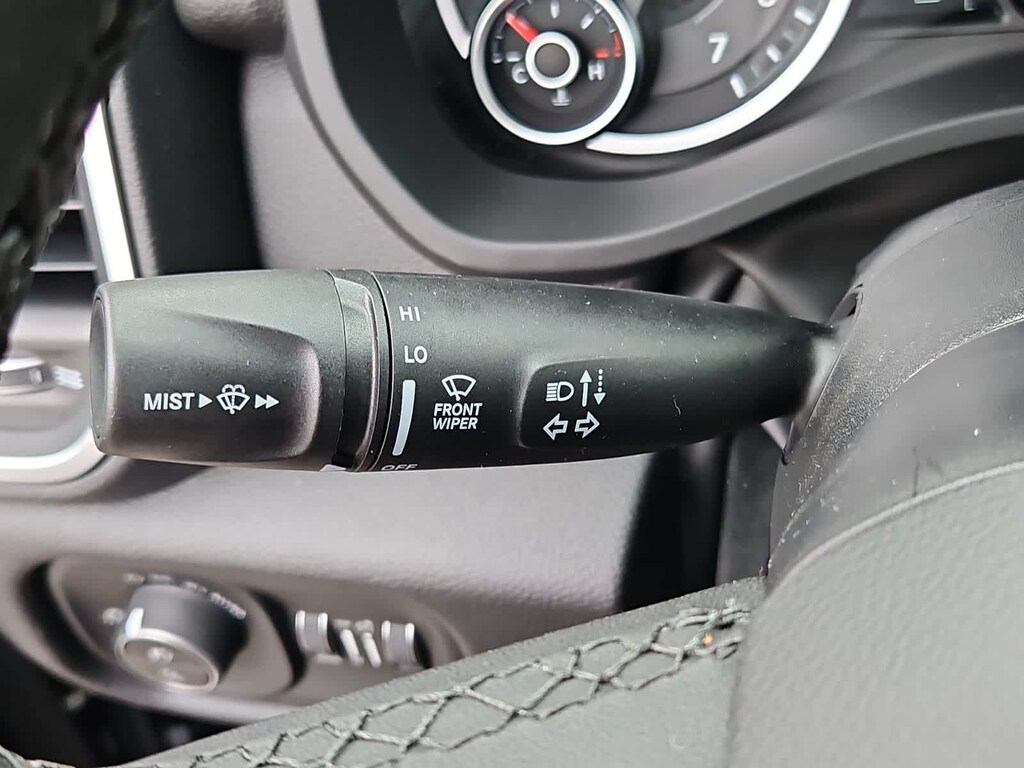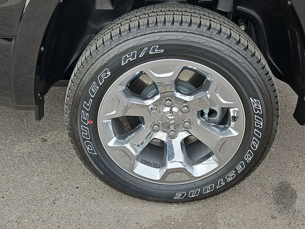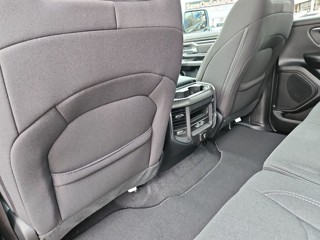 Our Big Horn cabin has been tailored to fit your needs, with the Level 2 Equipment Packages heated deluxe cloth seats, a heated leather-wrapped steering wheel, universal home remote, power adjustable pedals, power sliding rear window, dual climate control, a RAM Clean-Air System, keyless access, push-button ignition, cruise control, door-sill scuff plates, and clever cargo space, and a Uconnect 5 with 12.0-inch touchscreen features voice control, Bluetooth, and a nine-speaker sound system for intelligent infotainment.
