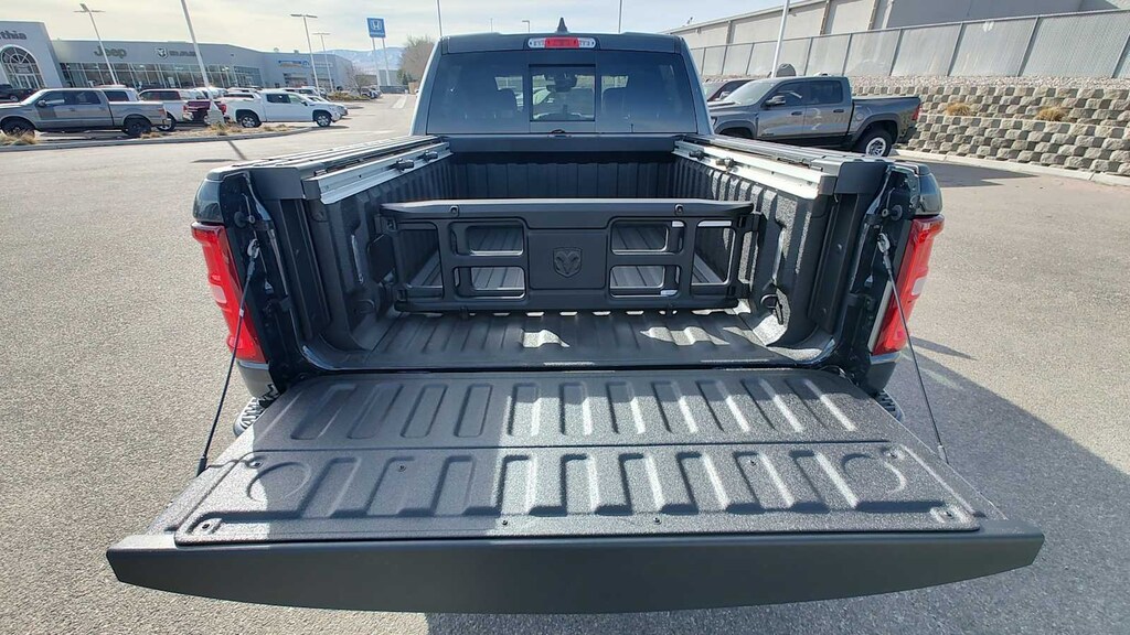 LARAMIE PREFERRED PACKAGE Accent Color Premium Power Mirrors, Power Deployable Running Boards, Grille Surround 3 Body Color Tex 4 Chrome, Trailer Brake Control, Tow Hooks, Body Color Front Bumper, Dual-Pane Panoramic Sunroof, LED Dome/Reading Lamp, Dome Dual LED Reading Lamp, Body Color Rear Bumper w/Step Pads, Black Painted Exterior Mirrors Caps, OFF ROAD GROUP Off Road Decals, Steering Gear Skid Plate, Falken Brand Tires, Raised Ride Height, Front Extra HD Shock Absorbers, Rear Extra HD Shock Absorbers, Full Size Spare Tire, Tow Hooks, E-Locker Rear Axle, Transfer Case Skid Plate, Fuel Tank Skid Plate, Selec-Speed Control, ENGINE: 5.7L V8 HEMI MDS VVT ETORQUE 48V Belt Starter Generator, Heavy Duty Engine Cooling, Passive Tuned Mass Damper, Delete Alternator, Passive Cold End Exhaust, 18 Aluminum Spare Wheel, BED UTILITY GROUP MOPAR Spray In Bedliner, MOPAR 4 Adjustable Cargo Tie-Down Hooks, Exterior 115V AC Outlet, LARAMIE LEVEL 1 EQUIPMENT GROUP Remote Tailgate Release, Rain Sensitive Windshield Wipers, MOPAR FRONT & REAR RUBBER FLOOR MATS, TRANSMISSION: 8-SPEED AUTOMATIC (8HP75) (STD). Ram Laramie with Forged Blue Metallic exterior and Black interior features a 8 Cylinder Engine with 395 HP at 5600 RPM*. Approx. Original Base Sticker Price: $75,400*.