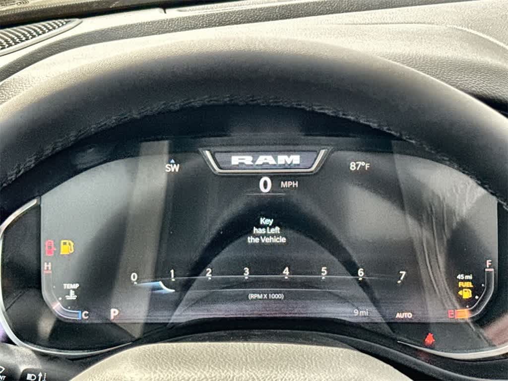 ENGINE: 5.7L V8 HEMI MDS VVT ETORQUE Active Noise Control System, Heavy Duty Engine Cooling, Passive Tuned Mass Damper, GVWR: 7,100 lbs, Dual Rear Exhaust w/Bright Tips, G/T Exhaust, 18 Aluminum Spare Wheel, BIG HORN LEVEL 2 EQUIPMENT GROUP SiriusXM Radio Service, Power Adjustable Pedals, Leather Wrapped Steering Wheel, 12 Touchscreen Display, Glove Box Lamp, Auto Power-Folding Mirrors, 115V Auxiliary Rear Power Outlet, Media Hub w/2 Charge Only USBs, Heated Front Seats, Security Alarm, Black Premium Power Mirrors, Premium Overhead Console, 9 Amplified Speakers w/Subwoofer, Disassociated Touchscreen Display, Body Color Fender Flares, Remote Tailgate Release, 115V Auxiliary Power Outlet, LED Dome Lamp w/On/Off Switch, Universal Garage Door Opener, 2nd Row In Floor Storage Bins, Sun Visors w/Illuminated Vanity Mirrors, LED Footwell Lighting, Rear Window Defroster, Rear View Auto Dim Mirror, Rear Power Sliding Window, GPS Navigation, Overhead LED Lamps, Wheels: 20 x 9 Aluminum Chrome Clad, DUAL-PANE PANORAMIC SUNROOF Dome Dual LED Reading Lamp, NIGHT EDITION Tires: 275/55R20 OWL All Season, Bridgestone Brand Tires, Accent Color Premium Power Mirrors, Exterior Mirrors w/Supplemental Signals, Black Headlamp Bezels, Exterior Mirrors Courtesy Lamps, Grille Black Surround Black Mesh, Auto Power-Folding Mirrors, Wheels: 20 x 9.0 Aluminum Painted Clad, Auto Dim Exterior Driver Mirror, Black Exterior Truck Badging, Anti-Spin Differential Rear Axle, Accent Color Door Handles, Accent Color Tailgate Handle, Black Interior Accents, Dual Exhaust w/Black Tips, Body Color Front Bumper, Body Color Rear Bumper w/Step Pads, Black Tail Lamp Bezels, RAM Grille Badge - Black, Black Painted Exterior Mirrors Caps, MOPAR BLACK TUBULAR SIDE STEPS, TRANSMISSION: 8-SPEED AUTOMATIC (8HP75).