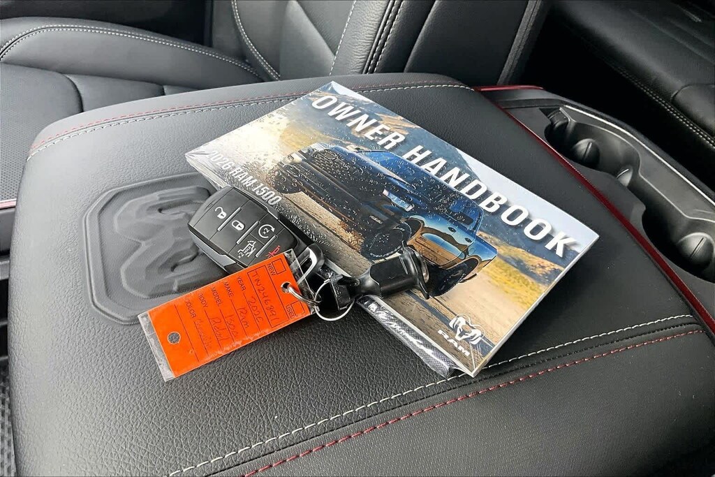 Granite Crystal Metallic Clearcoat 2026 Ram 1500 Rebel 4WD 8-Speed Automatic 3.0L I6 FRESH OIL CHANGE, 10 Speakers, 115V Auxiliary Rear Power Outlet, 12-Way/1-Way Trailer Connector, 14.4 Touchscreen Display, 2-Door Passive Entry, Front Door Locks, 3.92 Rear Axle Ratio, 4 Way Front Headrests, 4-Wheel Disc Brakes, 4G LTE Wi-Fi Hot Spot, ABS brakes, Accent Color Door Handles, Accent Color Premium Power Mirrors, Accent Color Tailgate Handle, Active Driving Assist System, Active Noise Control System, Advanced Safety Group II, Air Conditioning, Alloy wheels, AM/FM radio: SiriusXM with 360L, Apple CarPlay, Apple CarPlay/Android Auto, Auto High-beam Headlights, Auto Power-Folding Mirrors, Auto-Dimming Exterior Driver Mirror, Auto-Dimming Exterior Passenger Mirror, Auto-dimming Rear-View mirror, Automatic temperature control, Bed Utility Group, Black Exterior Mirrors, Black Painted Exterior Mirrors Caps, Black Power-Fold Trailer Tow Mirrors, Brake assist, Bucket Seats, Cloth/Vinyl Bucket Seats, Compass, Connected Travel and Traffic Services, Connectivity - US/Canada, Convex Wide-Angle Exterior Mirror Insert, Delay-off headlights, Disassociated Touchscreen Display, Driver door bin, Driver Seat Memory, Driver vanity mirror, Drowsy Driver Detection, Dual front impact airbags, Dual front side impact airbags, Dual Wireless Charging Pad, Electronic Stability Control, Evasive Steer Assist, Exterior 115V AC Outlet, Exterior Mirrors Approach Lamps, Exterior Mirrors Courtesy Lamps, Exterior Mirrors with Heating Element, Exterior Mirrors with Memory, Exterior Mirrors with Supplemental Signals, Forward and Reverse Utility Lights, Front anti-roll bar, Front Bucket Seats, Front Center Armrest w/Storage, Front dual zone A/C, Front fog lights, Front License Plate Bracket, Front Passenger Interactive Display, Front reading lights, Front Seat Back Map Pockets, Front wheel independent suspension, Full Length Upgraded Floor Console, Fully automatic headlights, Garage door transmitter, Global Telematics Box Module, Google Android Auto, GPS Antenna Input, GPS Navigation, Harman/Kardon 19 Speaker Premium Sound, HD Radio, Heads-Up Display, Heated door mirrors, Heated Front Seats, Heated front seats, Heated Second Row Seats, Heated Steering Wheel, Heated steering wheel, Illuminated entry, Integrated Center Stack Radio, Integrated Voice Command with Bluetooth, Intersection Collision Assist System, Leather steering wheel, LED CHMSL Lamp, Low tire pressure warning, Manual Folding Exterior Mirrors, Manufacturers Statement of Origin, Media Hub with 2 Charge Only USBs, Mirror Clearance/Running Lights, MOPAR 4 Adjustable Cargo Tie-Down Hooks, MOPAR Spray in Bedliner, Navigation System, Occupant sensing airbag, Off-Road Information Pages, Outside temperature display, Overhead airbag, Overhead console, Panic alarm, ParkView Rear Back-Up Camera, Passenger door bin, Passenger vanity mirror, Power 2-Way Driver Lumbar Adjust, Power 2-Way Passenger Lumbar Adjust, Power Adjust 8-Way Driver Seat, Power Adjust 8-Way Front Passenger Seat, Power Adjustable Pedals with Memory, Power door mirrors, Power driver seat, Power steering, Power Tailgate, Power Telescoping Mirrors, Power windows, Power-Adjustable Convex Aux Mirrors, Proximity Approach/Departure Lamps, Quick Order Package 21W Rebel, Radio data system, Radio: Uconnect 5 Nav with 14.4 Display, Radio: Uconnect 5 Navigation with 12.0 Display, Radio/Driver Seat/Mirrors/Pedals Memory, Rain Sensitive Windshield Wipers, Rear 60/40 Folding Seat, Rear anti-roll bar, Rear seat center armrest, Rear step bumper, Rear Window Defroster, Rebel Level 2 Equipment Group, Remote keyless entry, Security Alarm, SiriusXM Radio Service, SiriusXM with 360L, Smartphone as a Key Capable, Speed control, Split folding rear seat, Steering whe Price includes: $1000 - 2026 National Bonus Cash . Exp. 03/31/2026 $1000 - 2026 Southwest BC State of Texas Regional Bonus Cash . Exp. 03/31/2026 $3500 - 2026 National Retail Consumer Cash . Exp. 03/31/2026