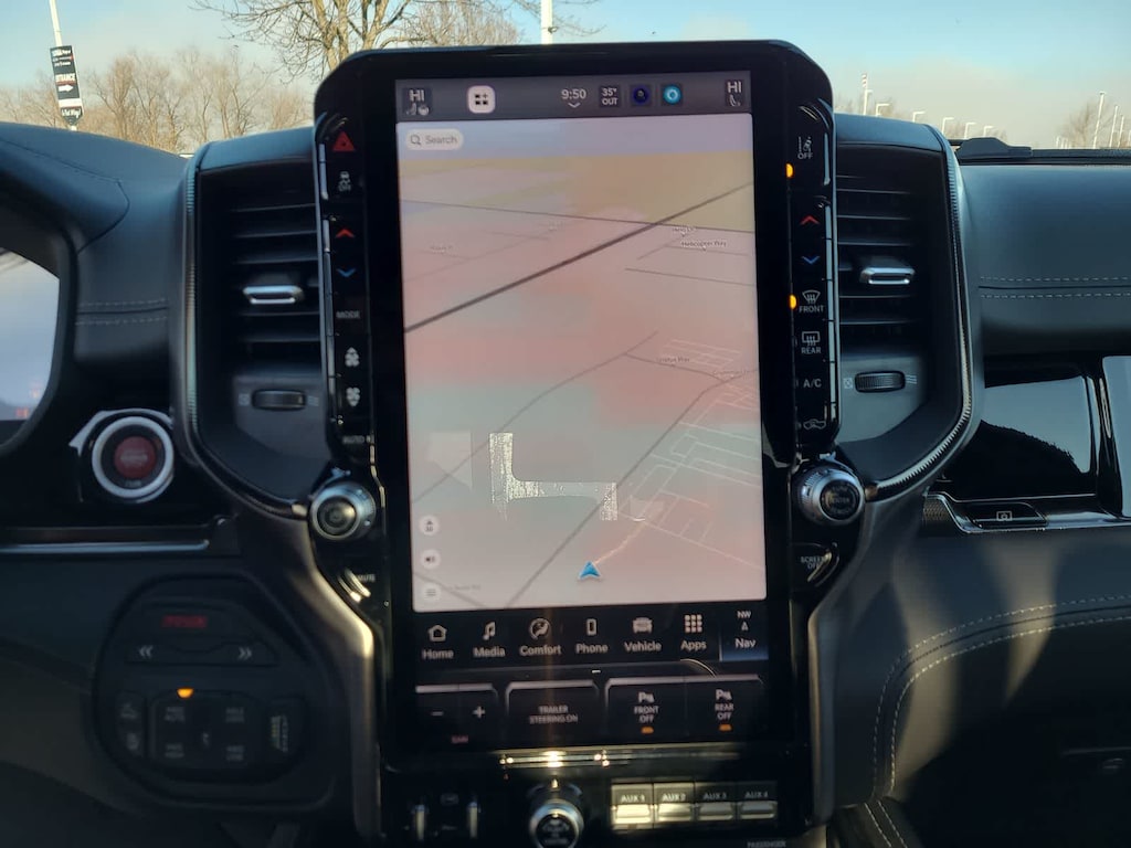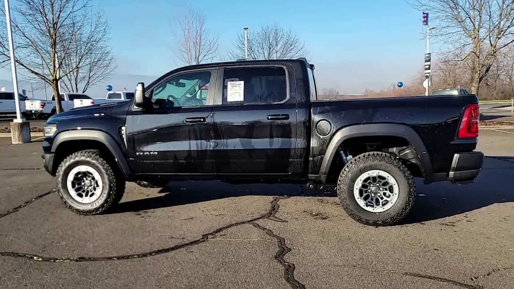 RHO LEVEL 1 EQUIPMENT GROUP Full Length Premium Upgraded Floor Console, Surround View Camera System, Rain Sensitive Windshield Wipers, LED CHMSL Lamp, Power Adjustable Pedals w/Memory, Front Passenger Interactive Display, Traffic Sign Recognition, Hands-Free Active Driving Assist System, Front Passenger Power Seat Back Massage, Head Up Display, Evasive Steer Assist, Heated Second Row Seats, Drowsy Driver Detection, Driver Power Seat Back Massage, Intersection Collision Assist System, Leather/Carbon Flat-Bottom Steering Wheel, Smartphone As A Key Capable, 14.4 Touchscreen Display, Driver/Passenger Wrapped Assist Handles, Dual Wireless Charging Pad, Radio: Uconnect 5 Nav w/14.4 Display, Ventilated Rear Seats, Rear 60/40 Folding Split Recline Seat, 240 Amp Alternator, Ventilated Front, WHEELS: 18 X 9 BEAD-LOCK ALUMINUM, DUAL-PANE PANORAMIC SUNROOF Dome Dual LED Reading Lamp, BLACK POWER-FOLD TRAILER TOW MIRRORS Forward & Reverse Utility Lights, Trailer Tow Mirrors, Exterior Mirrors w/Memory, Mirror Clearance/Running Lights, Black Exterior Mirrors, Power Telescoping Mirrors, Auto Dim Exterior Passenger Mirror, Power-Adjustable Convex Aux Mirrors, TRANSMISSION: 8-SPEED AUTOMATIC (8HP75) (STD), ENGINE: 3.0L I6 HURRICANE HO TWIN TURBO ESS (STD). Ram RHO with Diamond Black Crystal Pearlcoat exterior and Black interior features a Straight 6 Cylinder Engine.